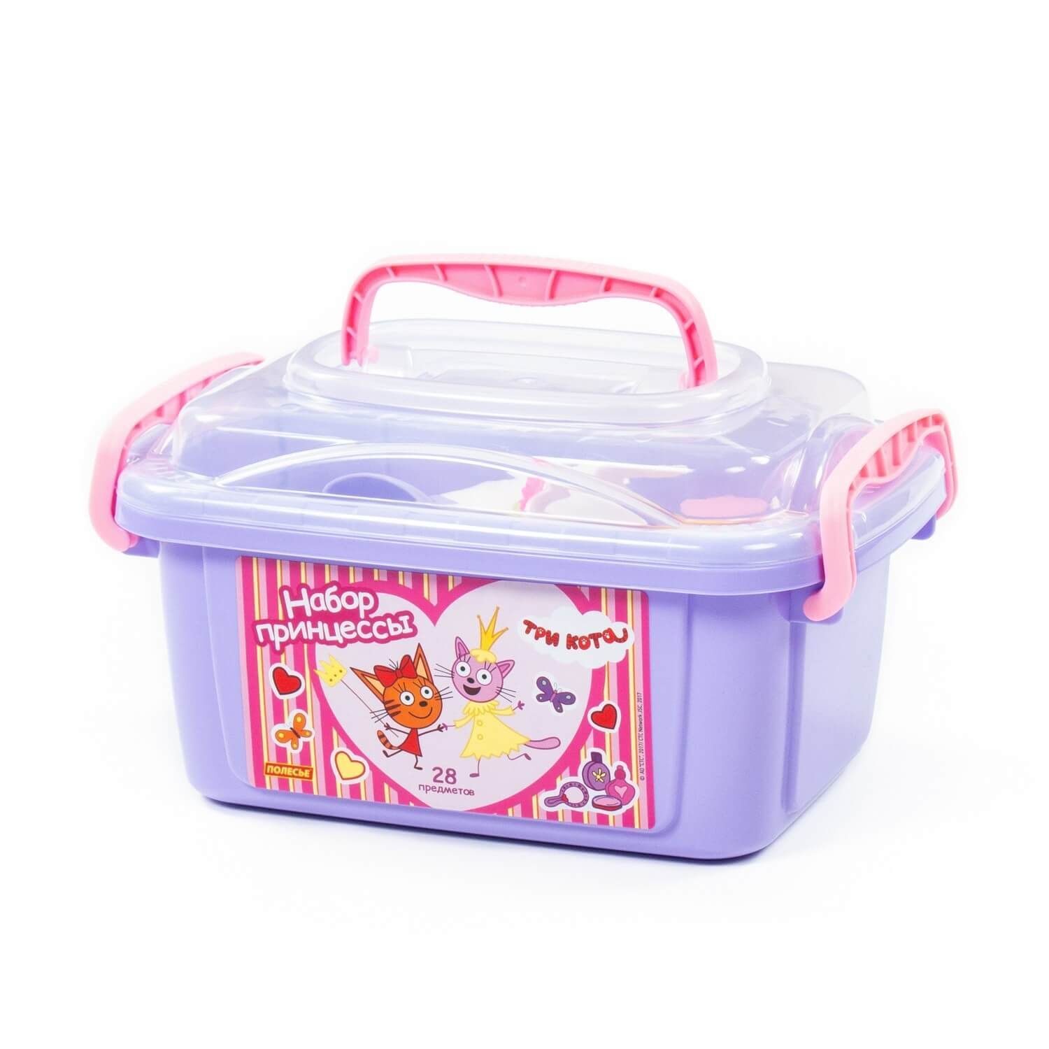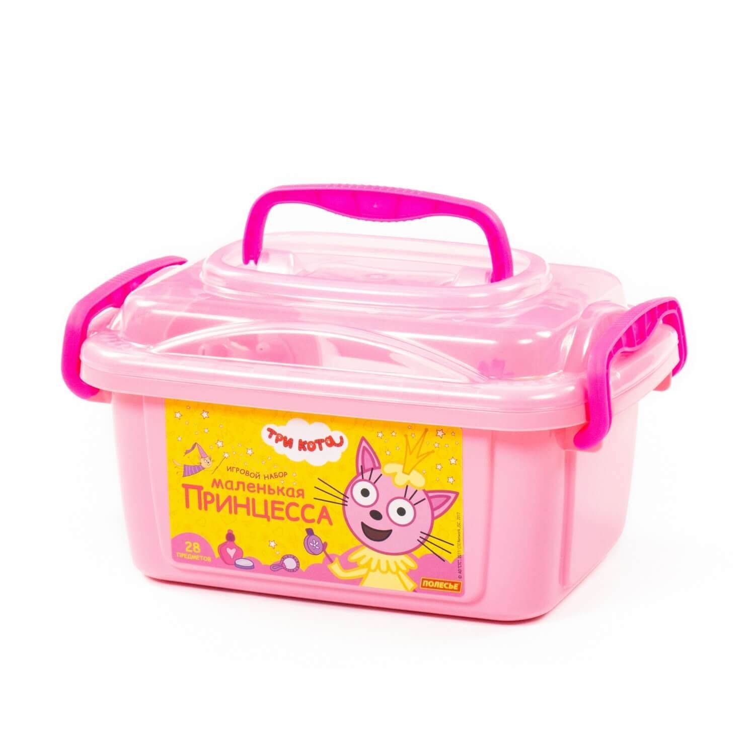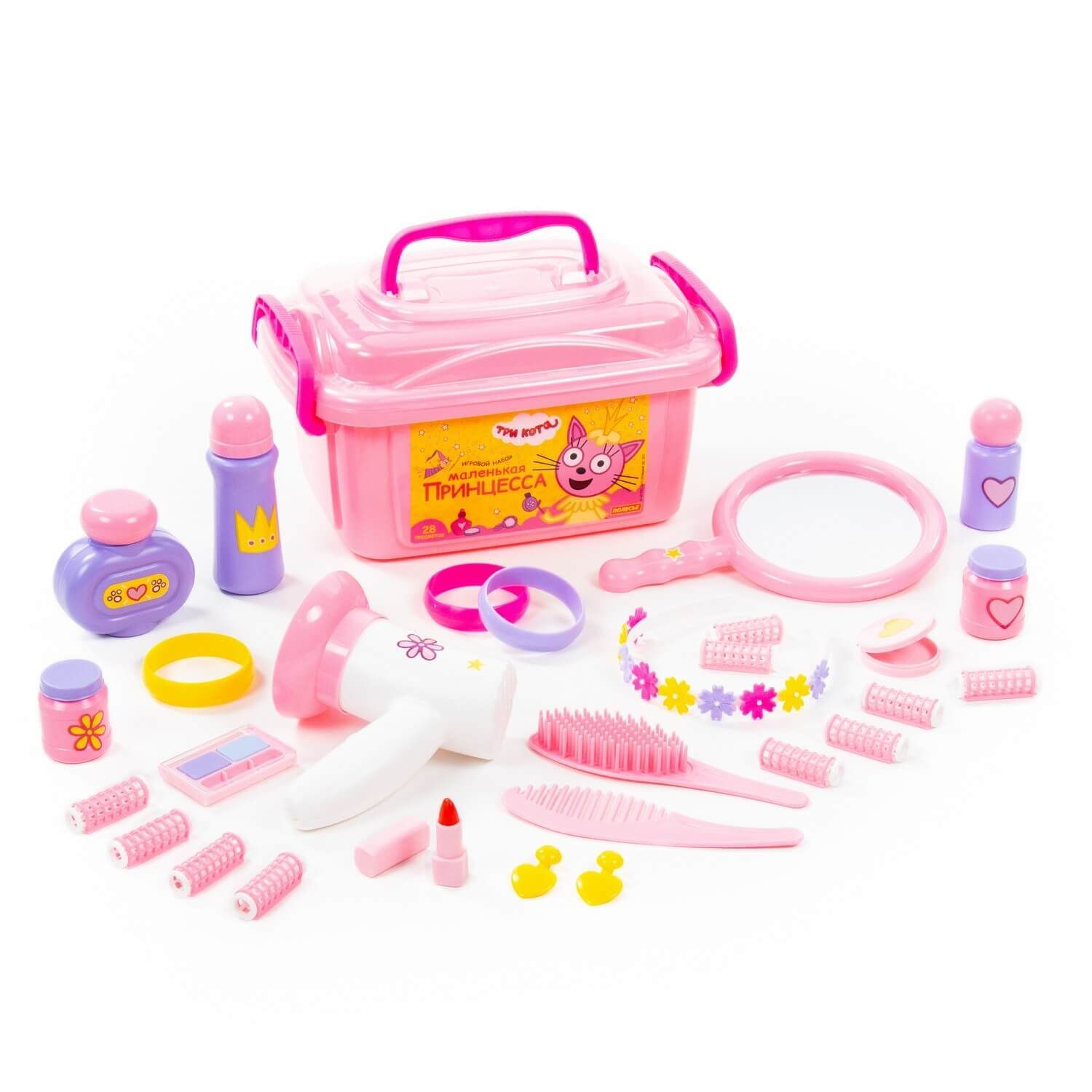 Игрушки упакованы в контейнер, куда юная модница может поместить и другие свои аксессуары для волос. С набором "Три Кота" "Принцессы" девочки могут организовать свой салон красоты или парикмахерскую, тем самым развивать воображение и фантазию.