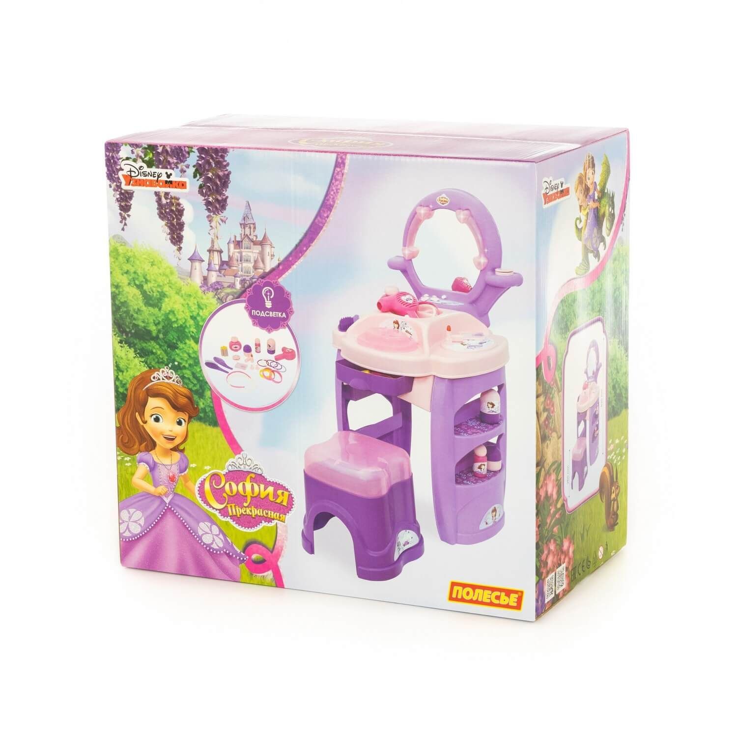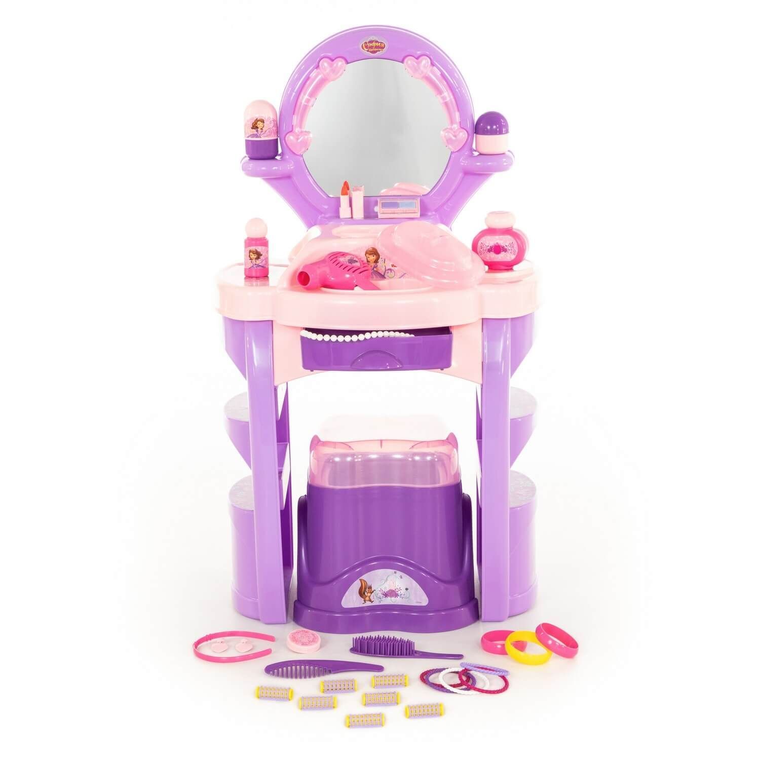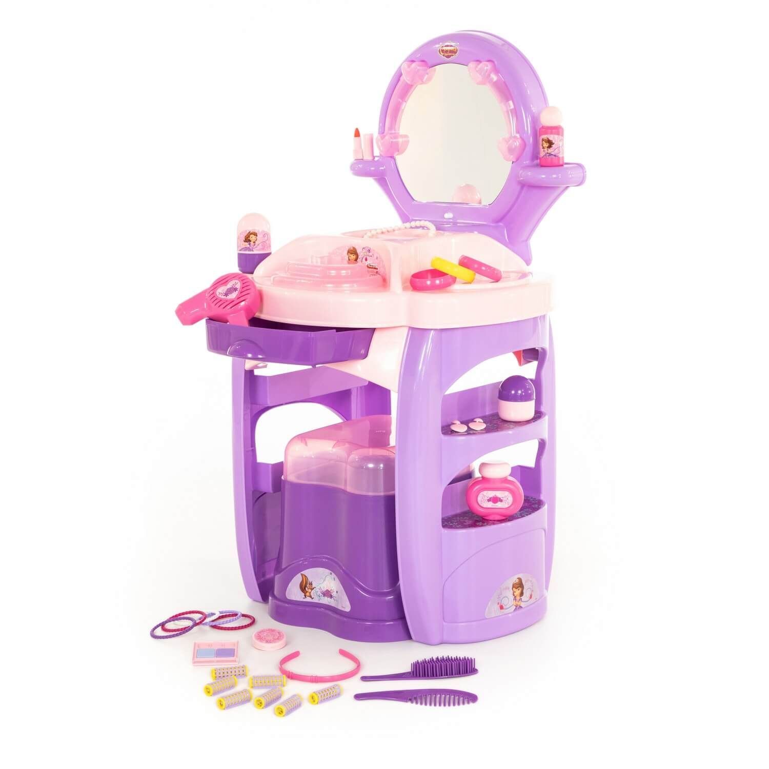 Почувствуй себя самой настоящей принцессой Disney вместе с новым набором от фабрики «Полесье»! Набор « Салон красоты Disney «София Прекрасная» состоит из столика с зеркалом и стульчика. Зеркало оснащено подсветкой, благодаря которой отлично видно отражение. Парикмахерские принадлежности и украшения удобно хранить в шкатулке и выдвижном ящике столика, а также на специальных полочках. В набор входят: фен, бигуди (7 шт.), расчески (2 шт.), флакончики (4 шт.), браслетики двух видов (8 шт.), клипсы, бусы, обруч, а также игрушечные тени для век, губная помада и пудра. Набор «Салон красоты Disney «София Прекрасная» станет отличным подарком для маленькой поклонницы анимационного сериала «София Прекрасная».