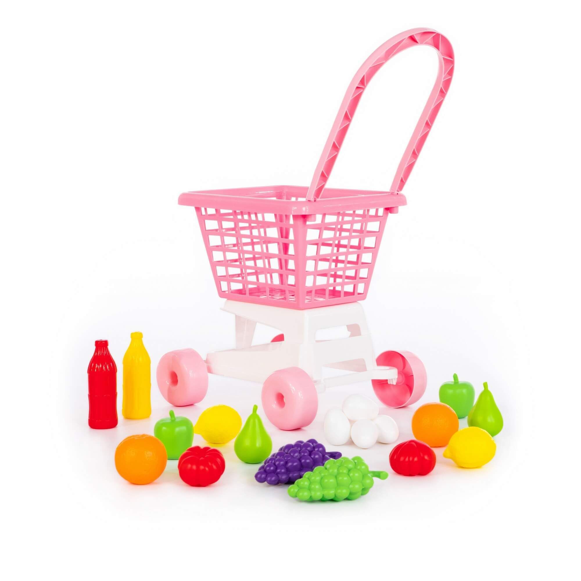 Тележка «Supermarket» является универсальной игрушкой, которая подойдёт как мальчикам, так и девочкам. Мальчики с удовольствием загрузят в тележку автомобили, пистолеты, песочные принадлежности. А девочки посадят кукол, мягкие игрушки, положат посудку и формочки. С тележкой «Supermarket"можно играть в магазин и складывать в неё свои покупки. Для малышей толкание тележки перед собой при ходьбе полезно для совершенствования координации движений, чувства равновесия. В комплекте с тележкой также идёт набор продуктов: имитация бутылки с газировкой, имитация винограда, груши, яблока, лимона, апельсина, помидора, яиц (5 шт.).