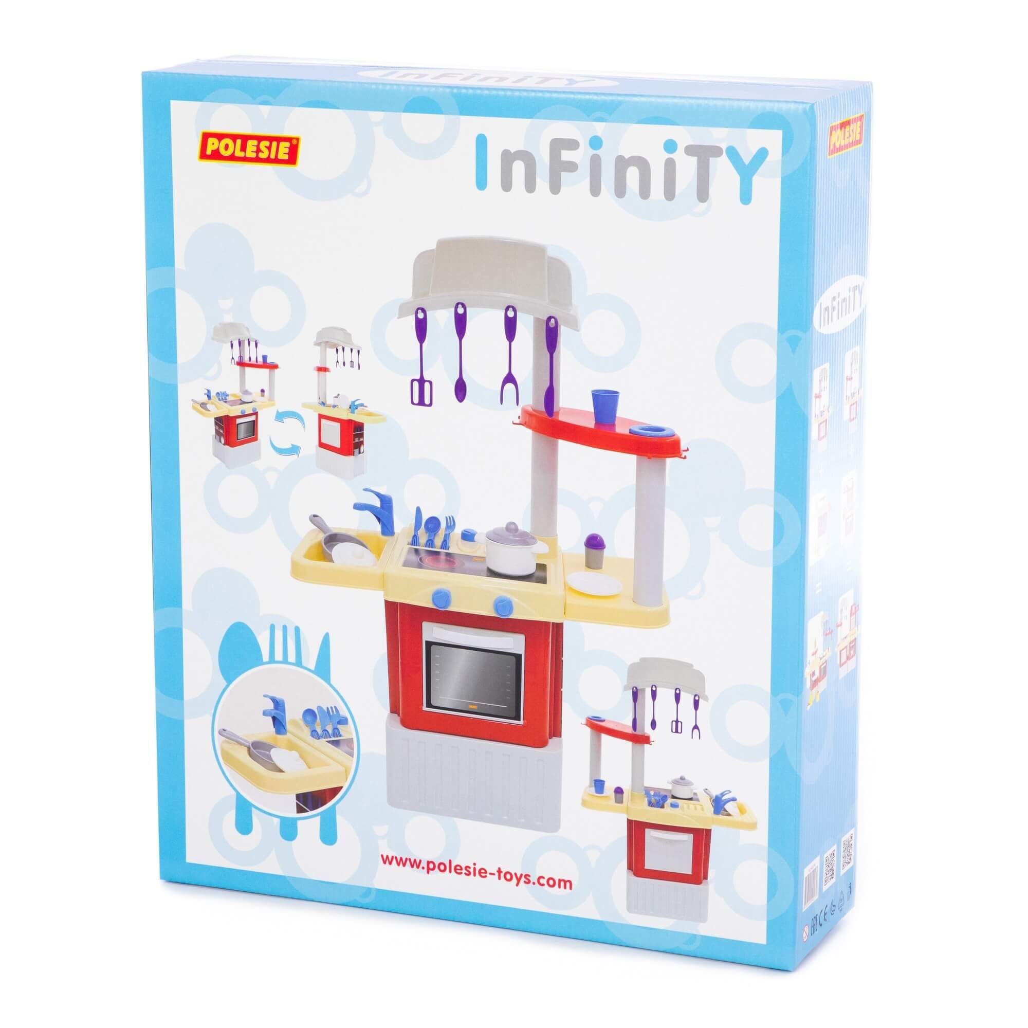 Кухня модульной серии "INFINITY" может быть дополнена другими наборами из этой серии. Все наборы серии "INFINITY" соединяются друг с другом с боковых сторон. Набор №1 - это кухня, которая оснащена плитой, духовкой, мойкой, вытяжкой, сушилкой для посуды, шкафчиком. В комплекте также идут:
