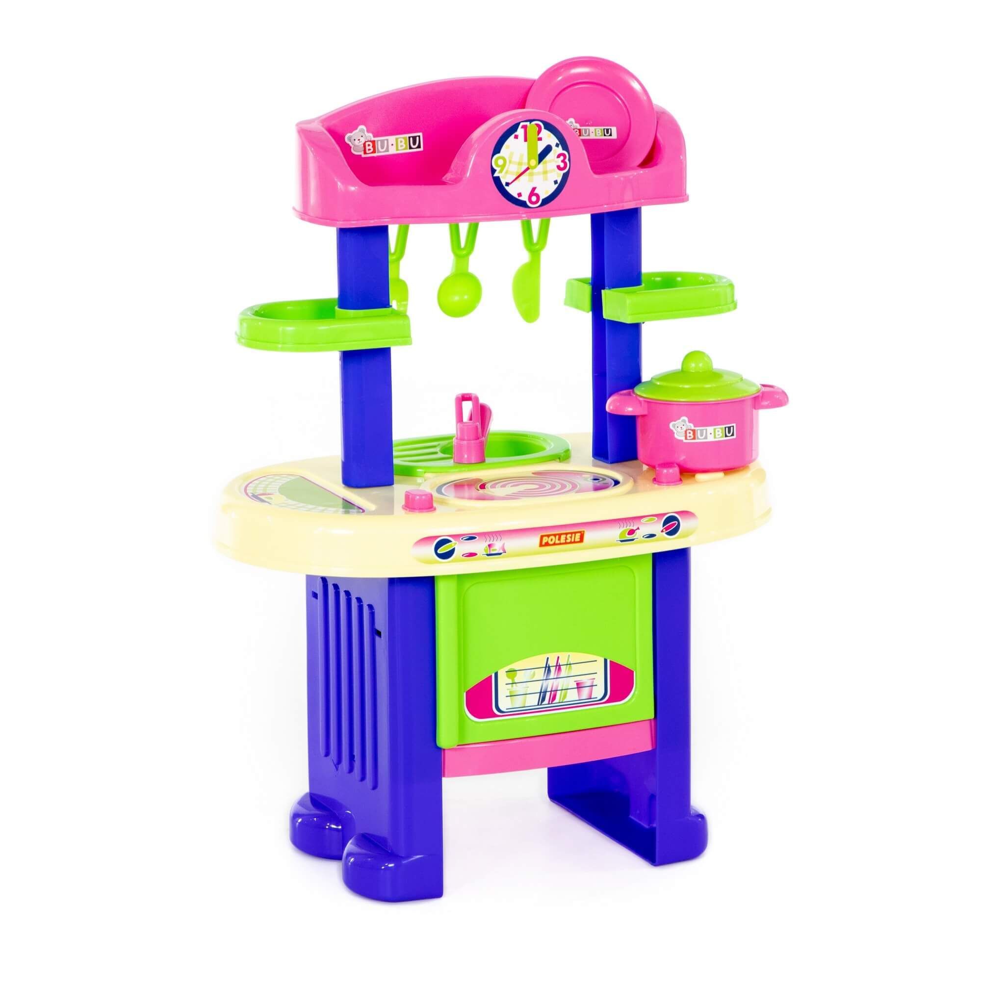 Игровой комплекс "BU-BU" №5 представляет собой маленькую кухню с плитой, мойкой и духовым шкафом. Также имеются две полочки, на которых могут храниться игрушечные продукты. Набор дополнен игрушечной посудой: