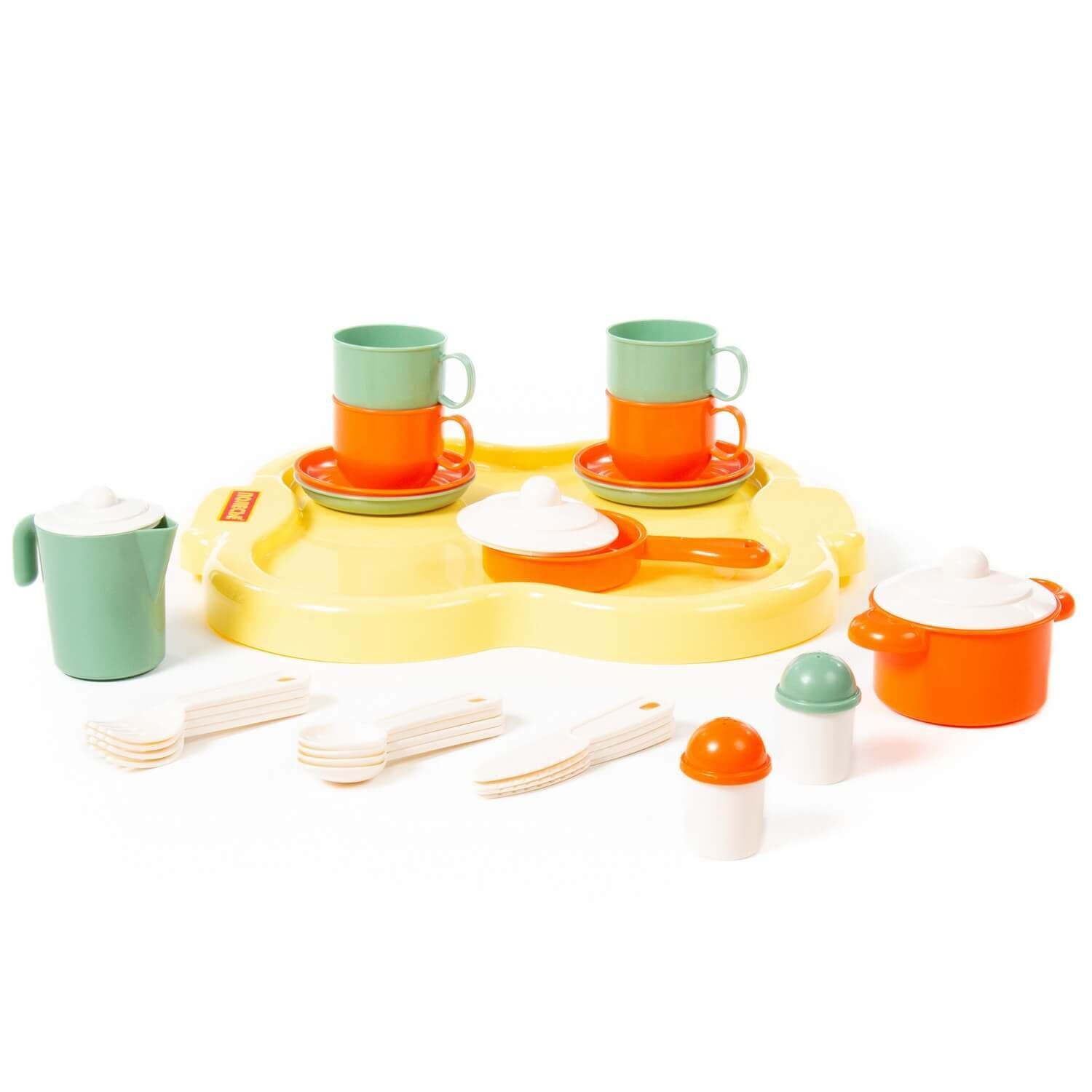 Накрыть красочный стол для любимых кукол сможет любая обладательница набора детской посуды "Хозяюшка". Позвать на обед можно от двух до шести гостей, в зависимости от количества предметов в наборе. С помощью набора девочка приобретает навыки юной хозяйки, идентифицирует себя с образом Мамы.
