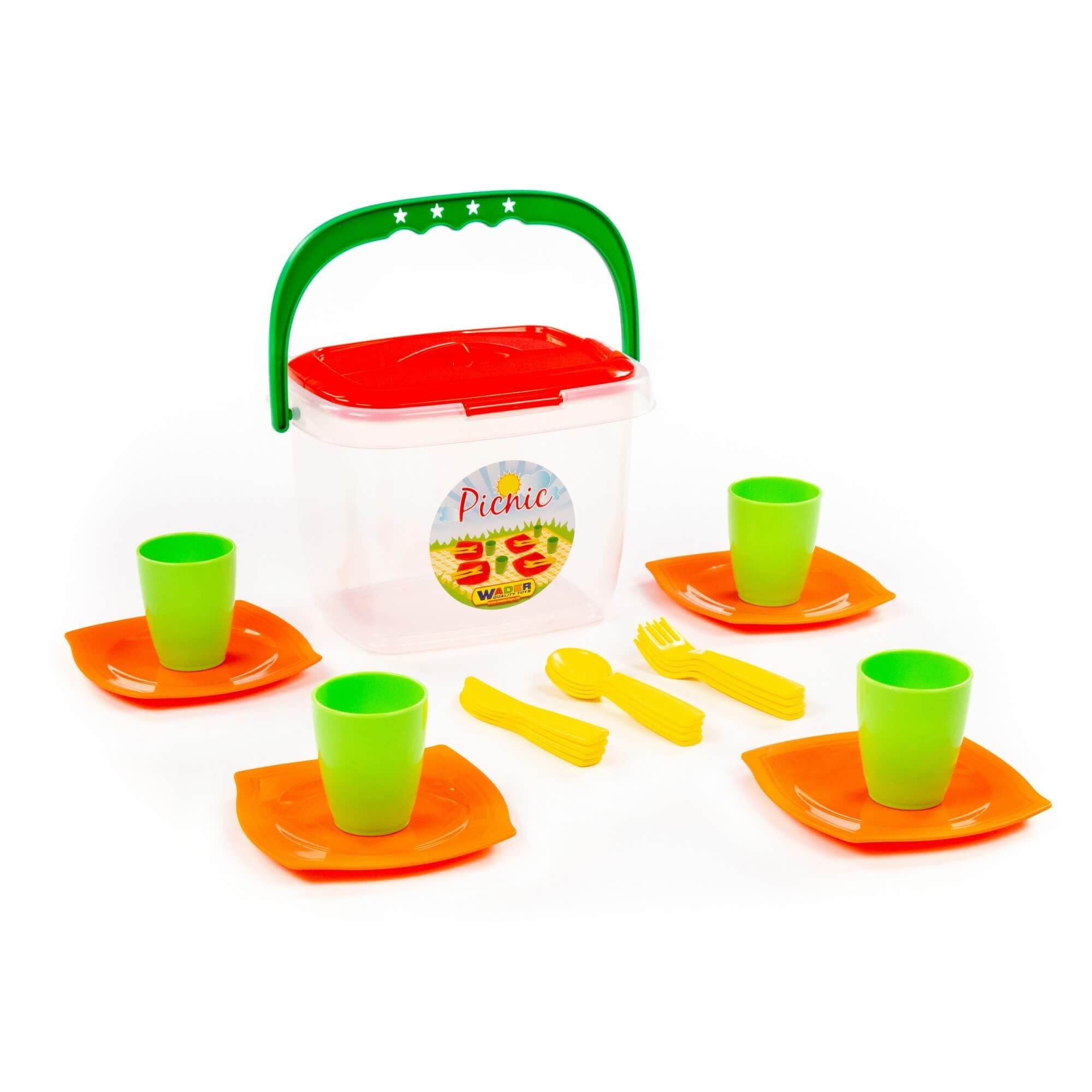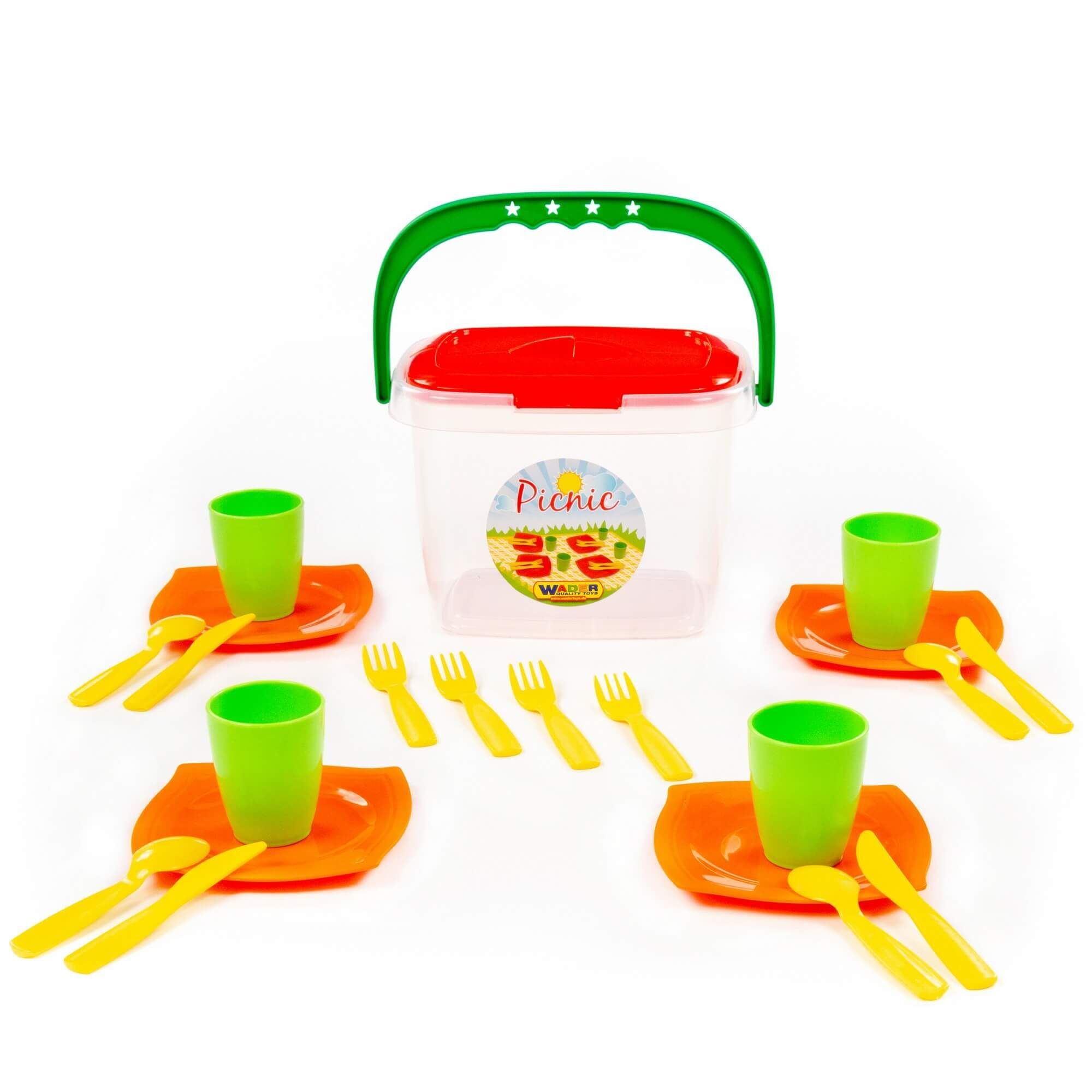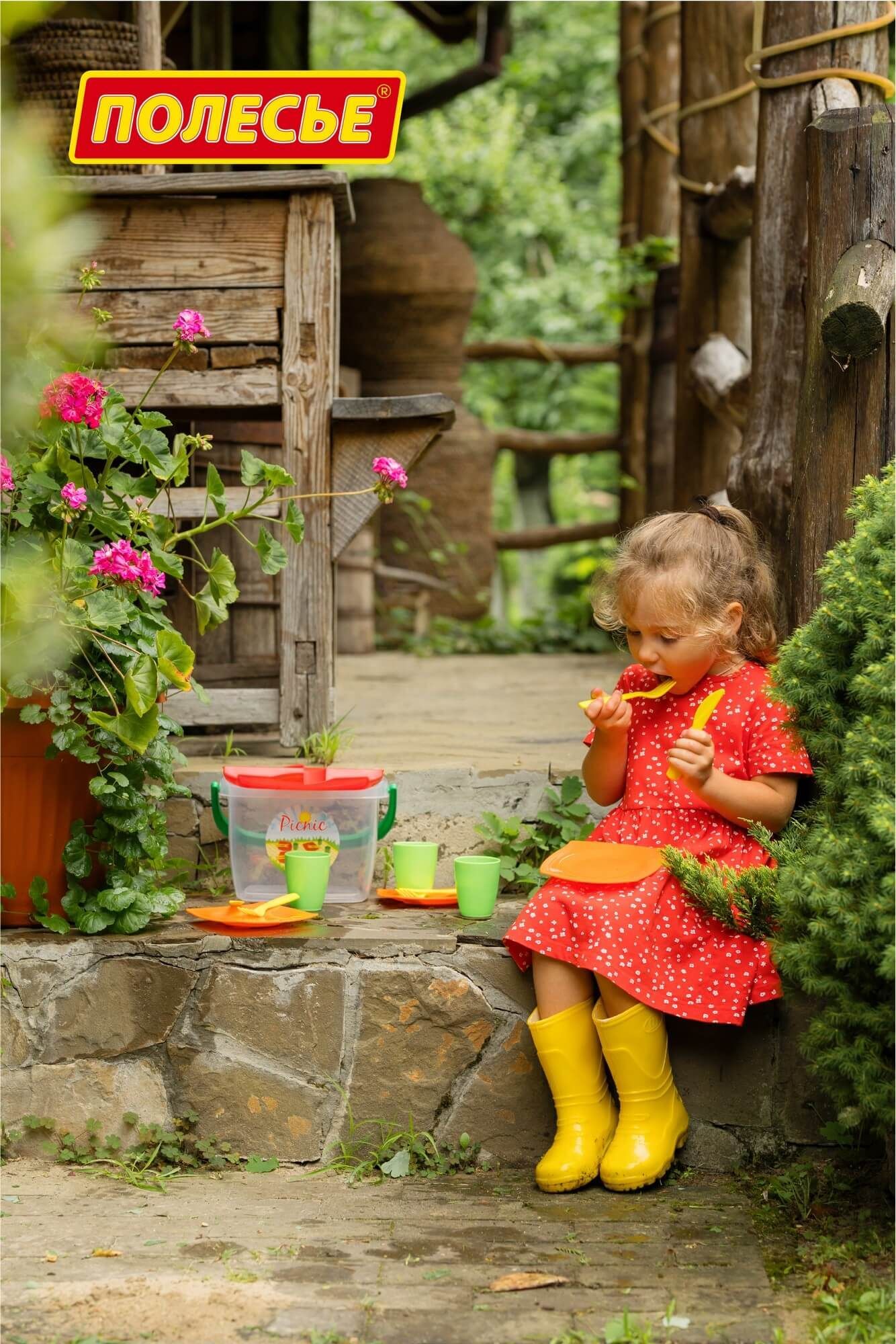 Серия «Алиса» способствует раскрытию потенциала маленькой хозяйки. Умение готовить, содержать быт и заботиться о чистоте очень помогут ей в будущем. Данный комплект упакован в прозрачный контейнер с ручкой, что удобно для перемещения и хранения игрушки. С ним ребёнок с удовольствием будет играть на свежем воздухе и устраивать импровизированные пикники. В набор входят: