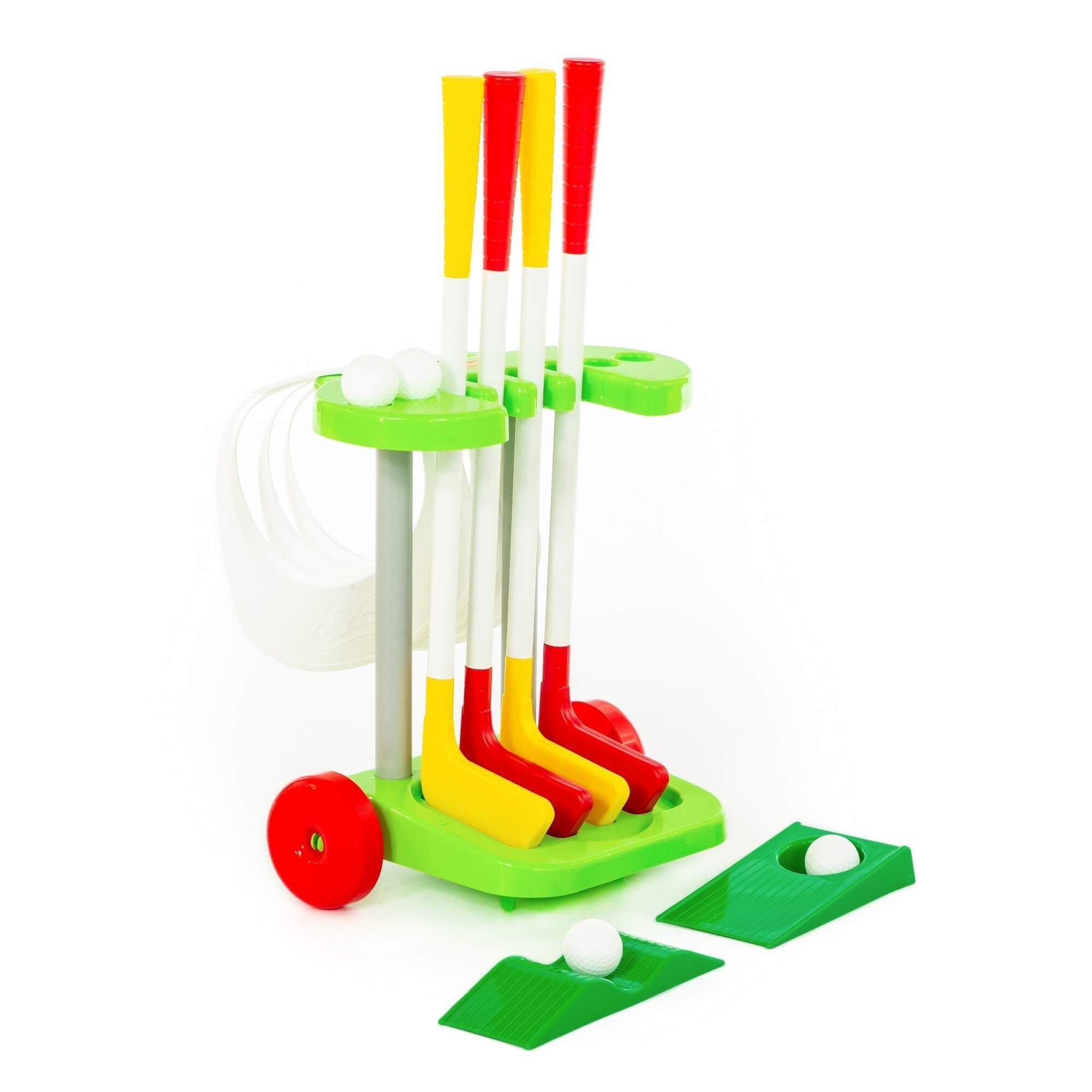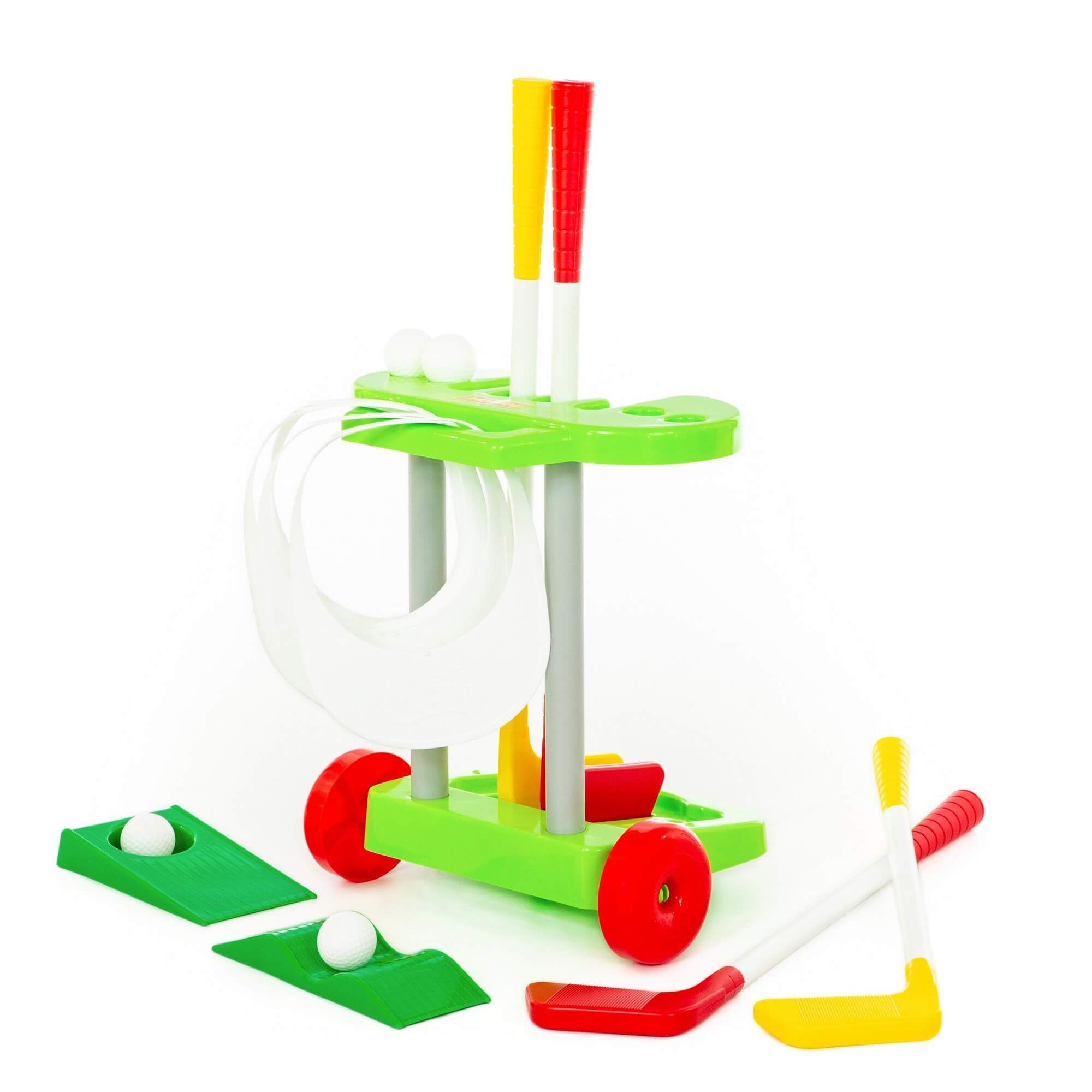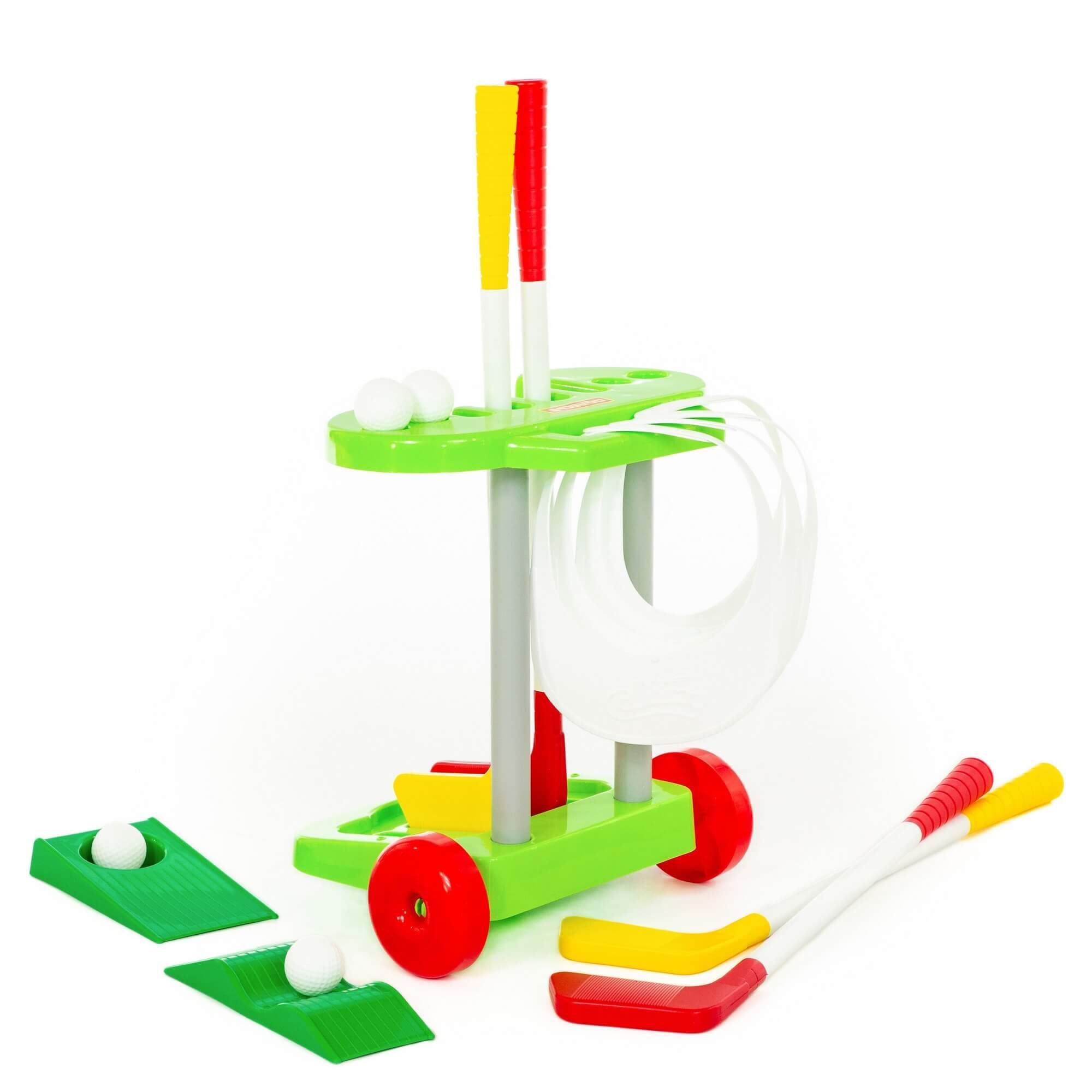 Набор игровой «Гольф-2» от фабрики «Полесье» прививает детям любовь к активному отдыху. В комплект входит 14 элементов: 4 клюшки, имитация лунки, барьер, 4 мяча для гольфа, а также 4 козырька для всех игроков. Все элементы располагаются на удобной тележке с ручкой и колёсиками, благодаря чему набор легко перемещать. Изготовлена игрушка из высококачественных материалов, имеет яркую расцветку. Набор игровой «Гольф-2» разнообразит домашние игры, а также станет незаменимым реквизитом для времяпрепровождения на свежем воздухе!