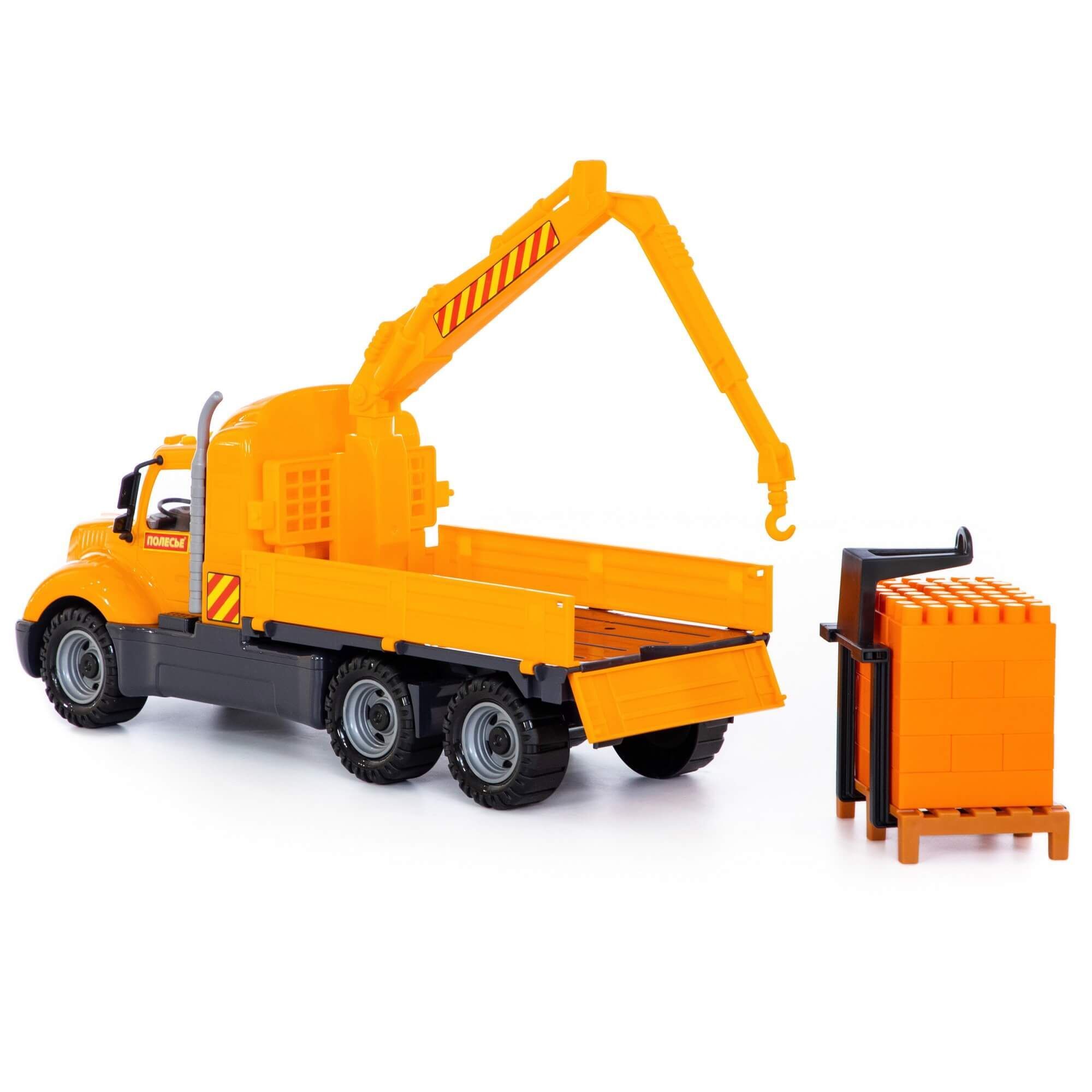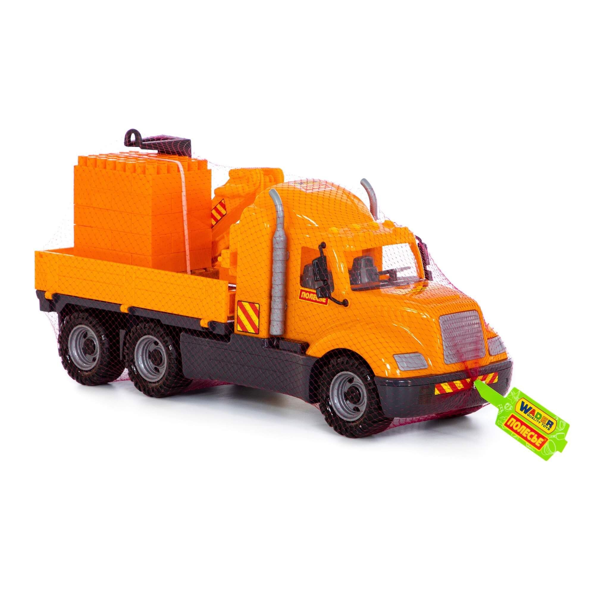 "Майк" – это подарочный автомобиль, он оснащен краном с манипулятором, которым можно загружать и разгружать кузов бортового автомобиля. В набор входит 30 элементов конструктора на поддоне, который также можно подцепить краном. Играя с конструктором и автомобилем, малыш развивает логику, воображение и фантазию, пространственное мышление.