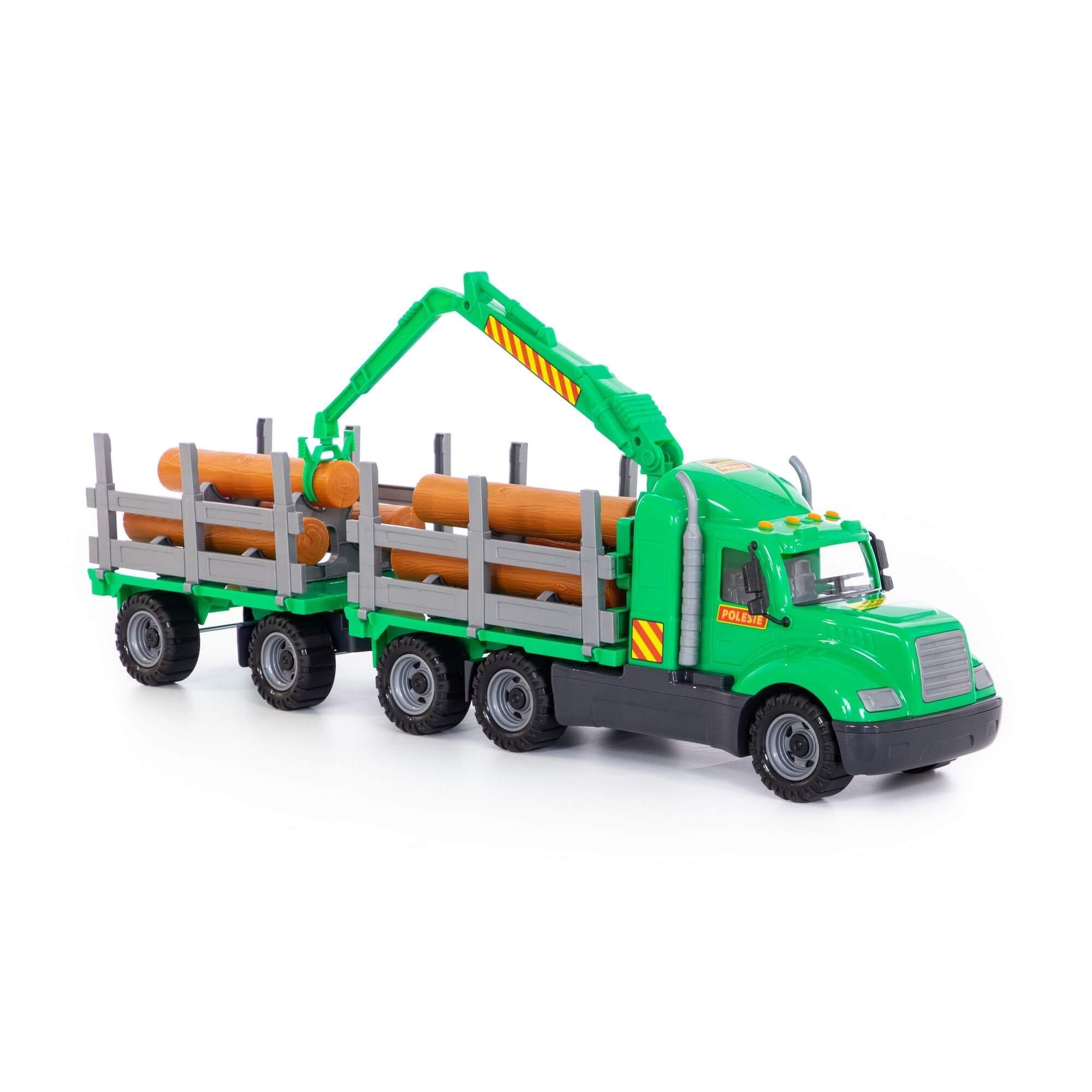 "Майк", автомобиль-лесовоз с прицепом (в коробке) – это замечательный подарочный вариант лесовоза. Ребёнку будет интересно разгружать и загружать брёвна манипулятором. Если снять борта автомобиля, крепления для брёвен, то лесовоз превращается в автомобиль-платформу.