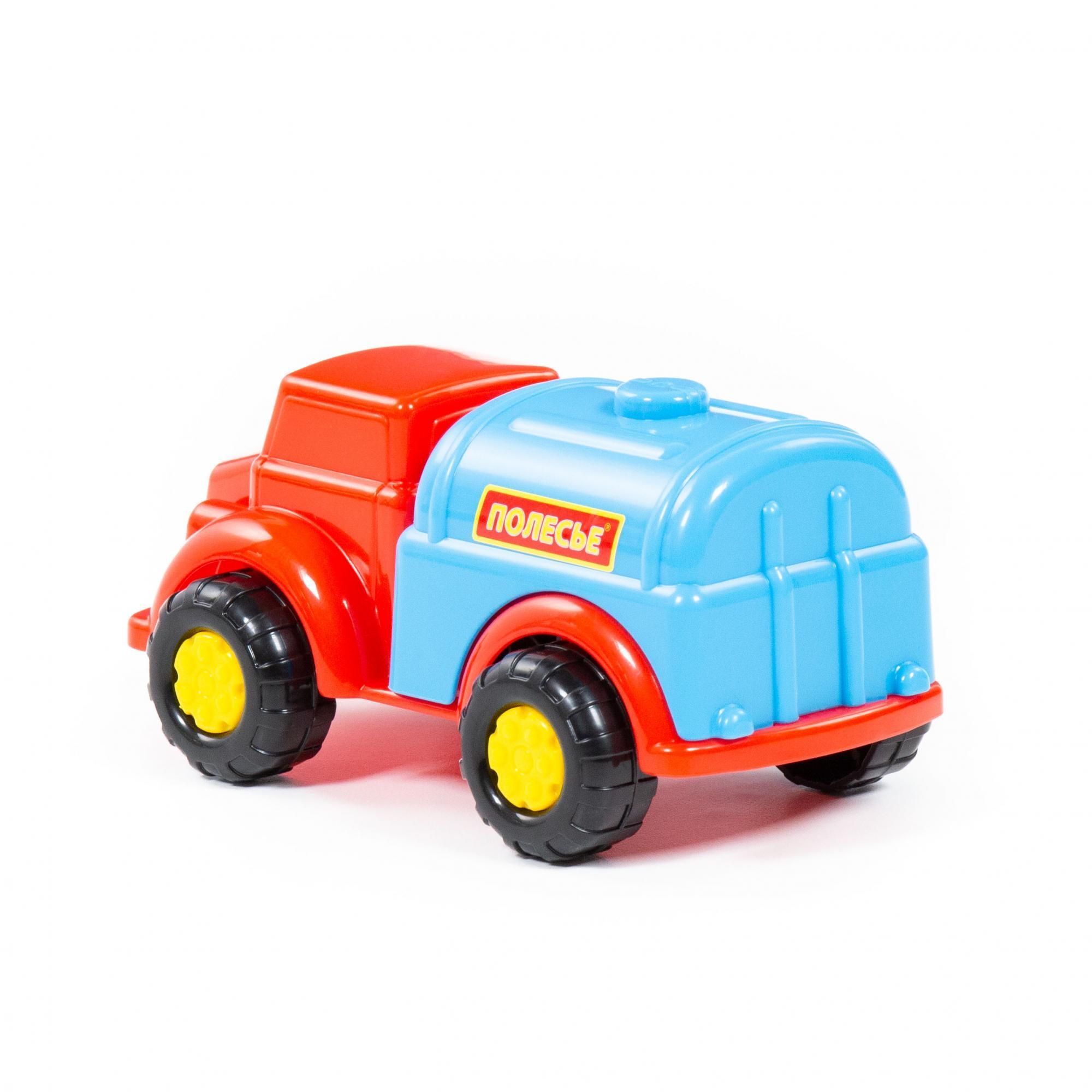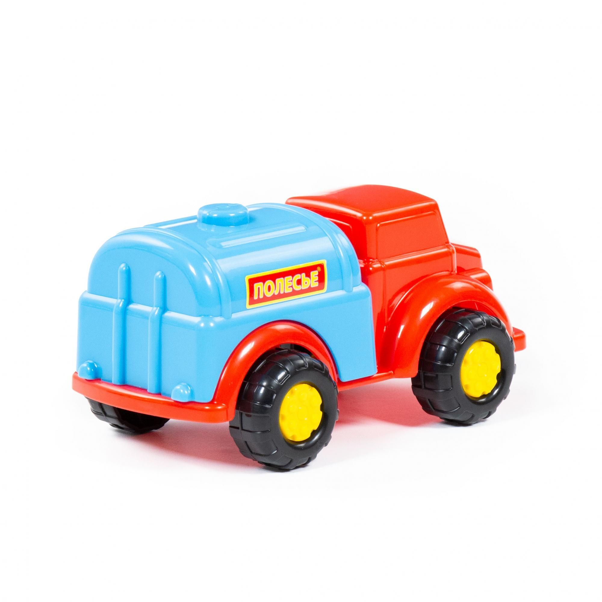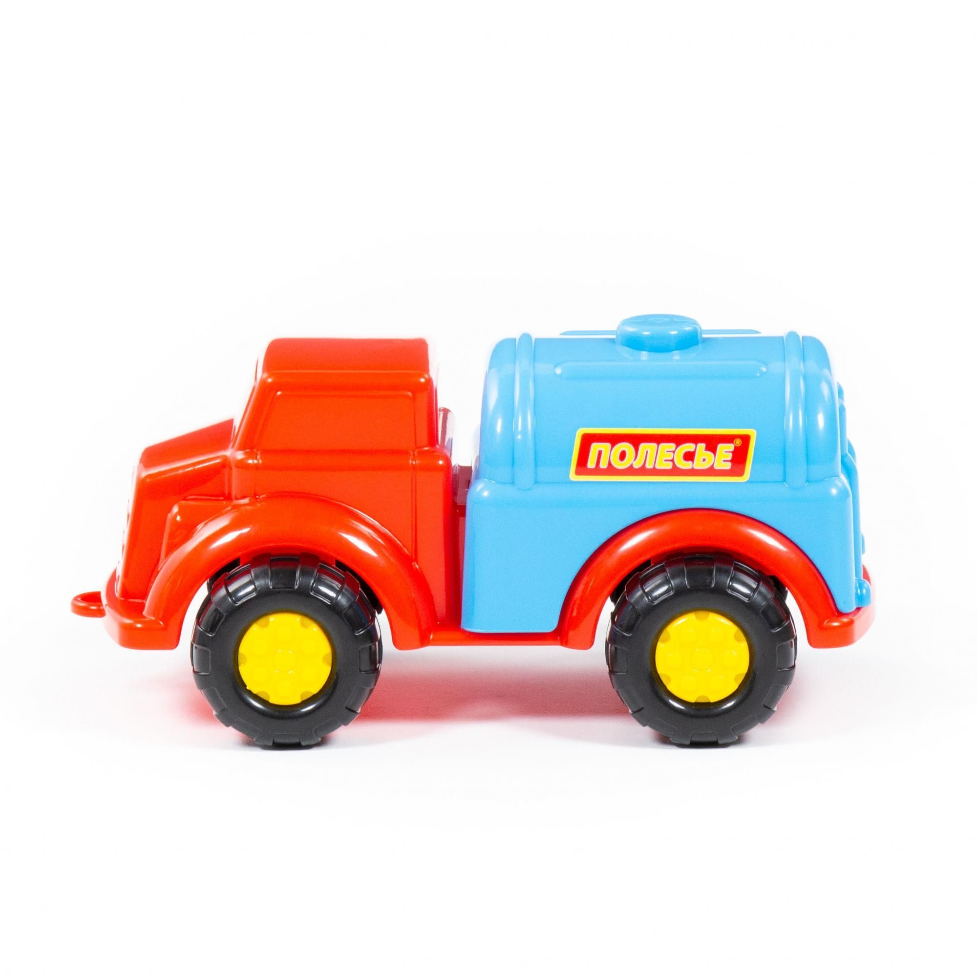 Машинки серии «Антошка» от фабрики «Полесье» небольшие по размеру. Дизайн автомобиля-водовоза разработан с учётом безопасной игры с ним: округлость форм, яркие цвета деталей, простота и надежность. Автомобиль знакомит ребёнка с таким видом транспорта, как водовоз. Машинка относится к серии простых, а её всегда можно взять с собой на прогулку. С такой игрушкой ребёнок изучает основные цвета, развивает мелкую моторику, координацию движений и воображение.