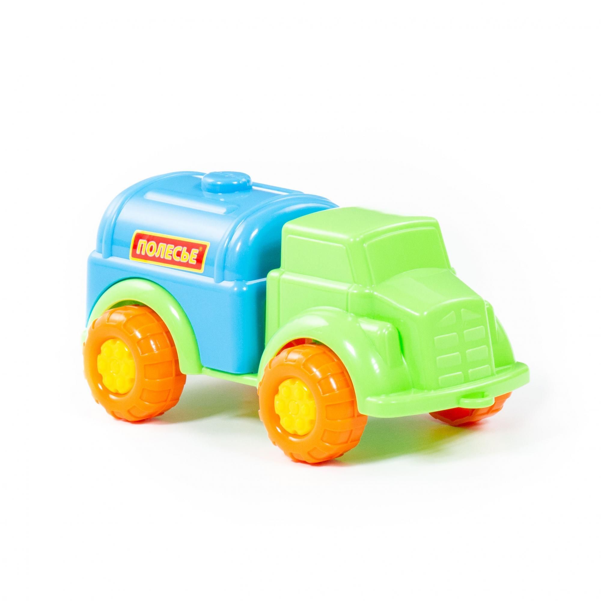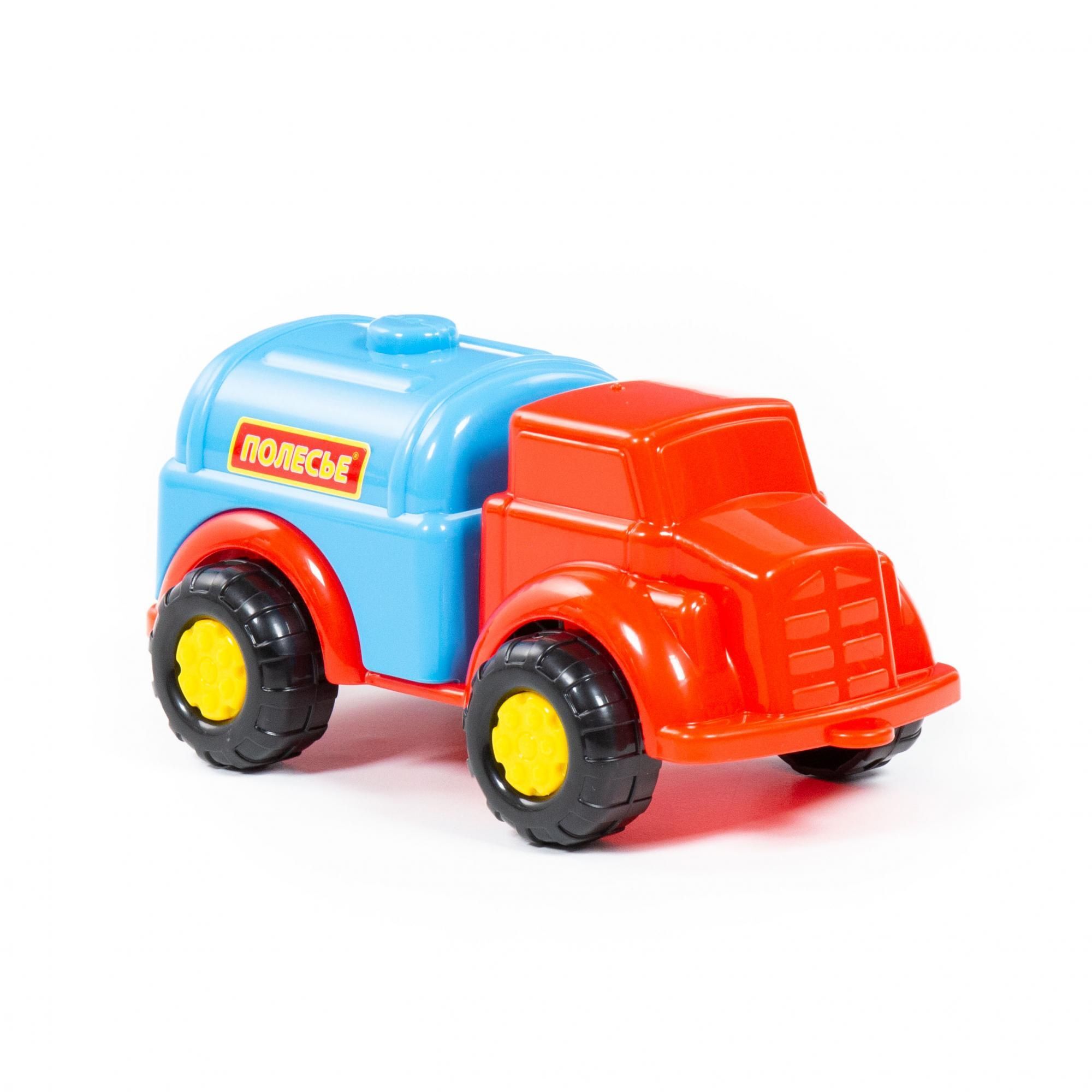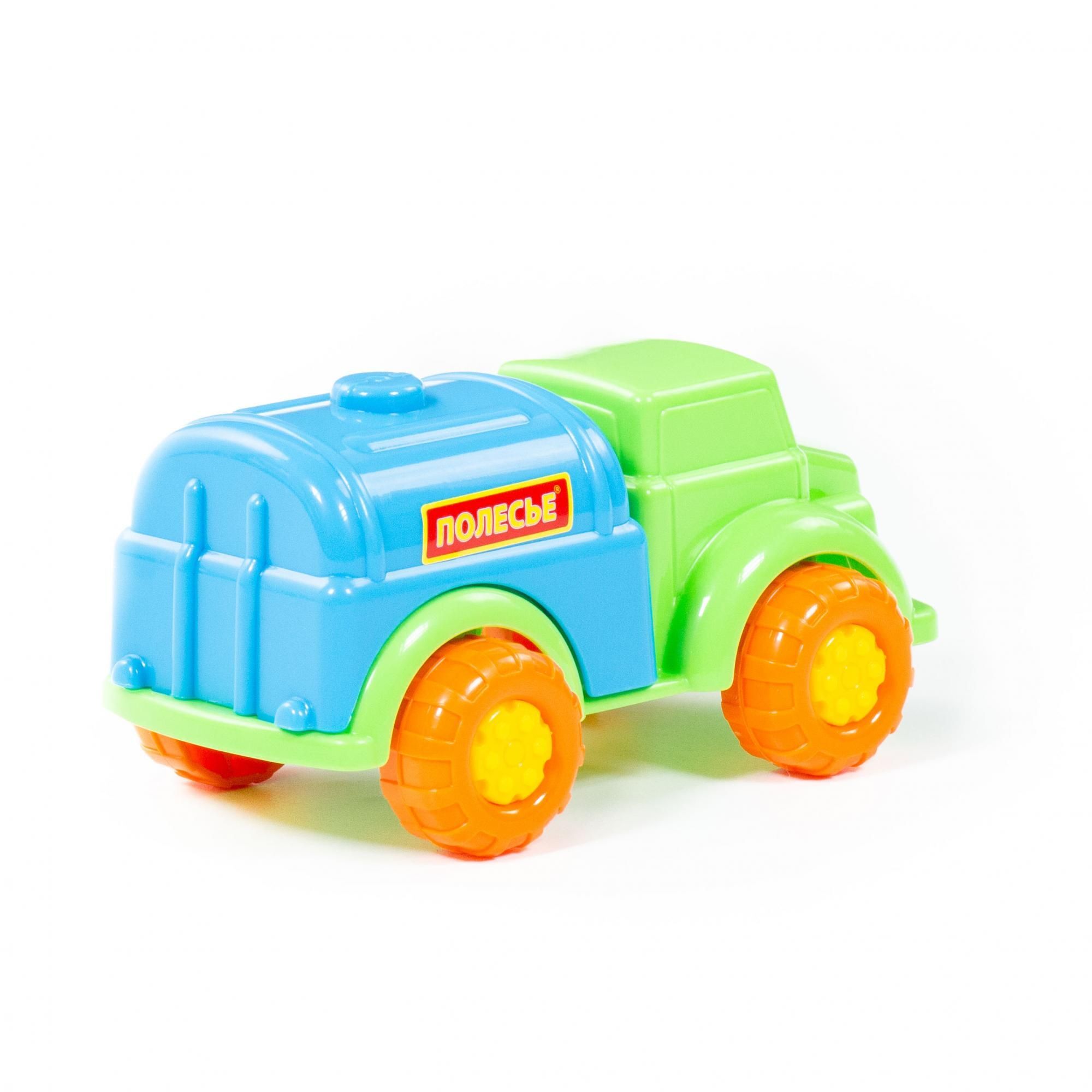 Машинки серии «Антошка» от фабрики «Полесье» небольшие по размеру. Дизайн автомобиля-водовоза разработан с учётом безопасной игры с ним: округлость форм, яркие цвета деталей, простота и надежность. Автомобиль знакомит ребёнка с таким видом транспорта, как водовоз. Машинка относится к серии простых, а её всегда можно взять с собой на прогулку. С такой игрушкой ребёнок изучает основные цвета, развивает мелкую моторику, координацию движений и воображение.