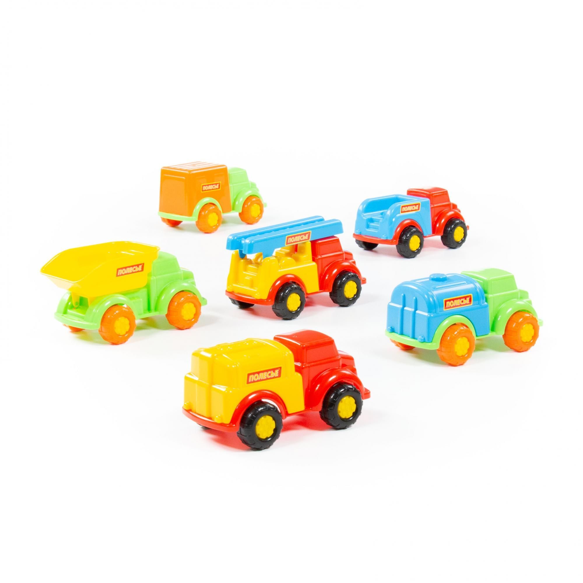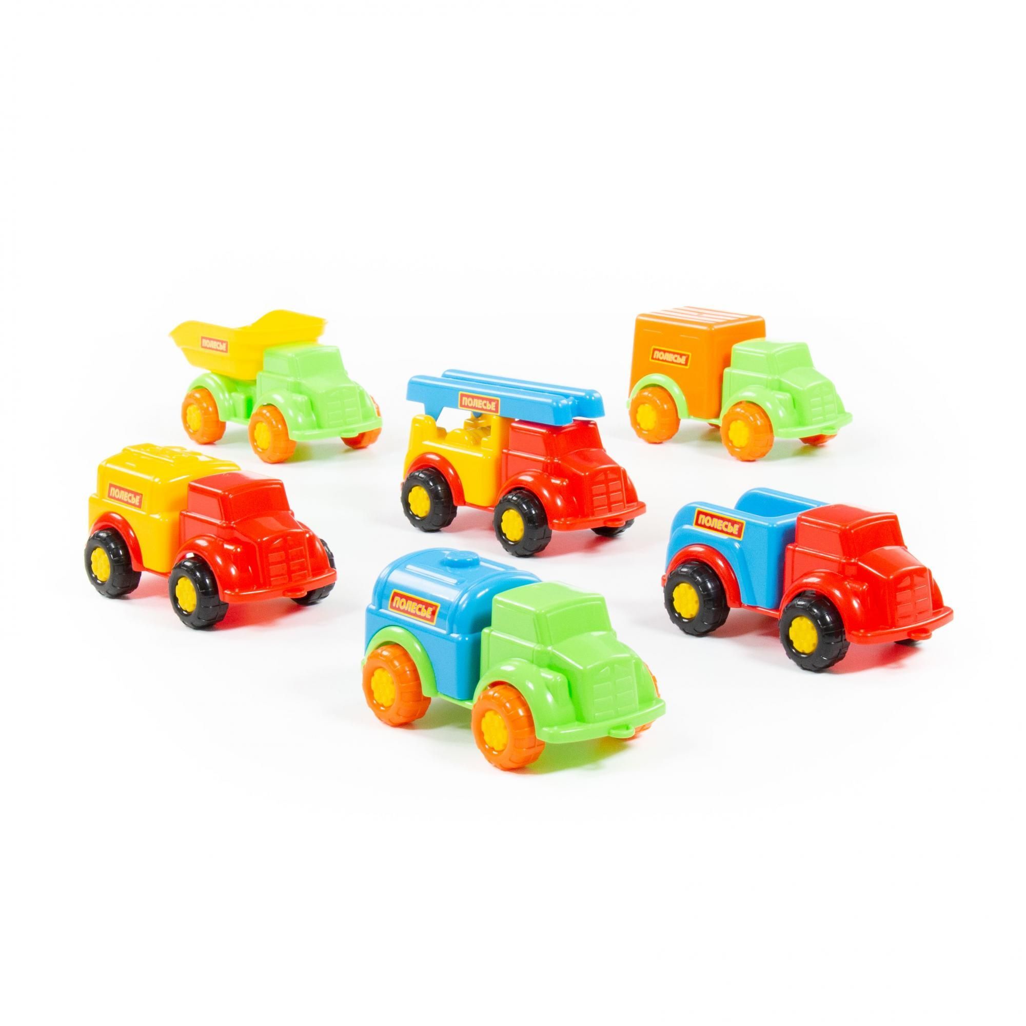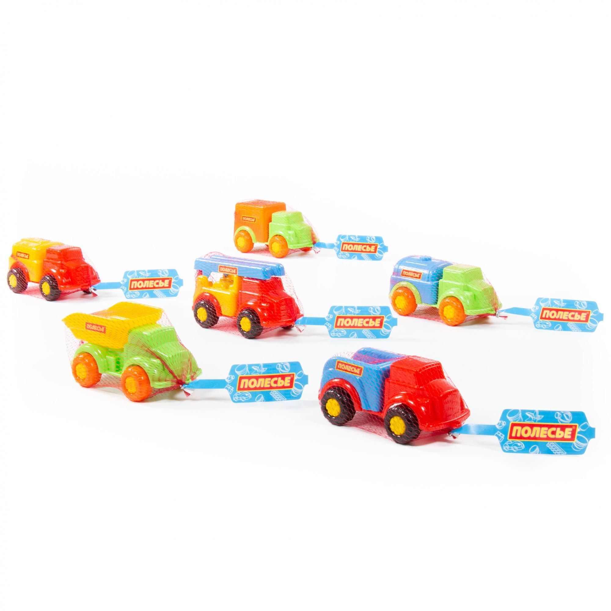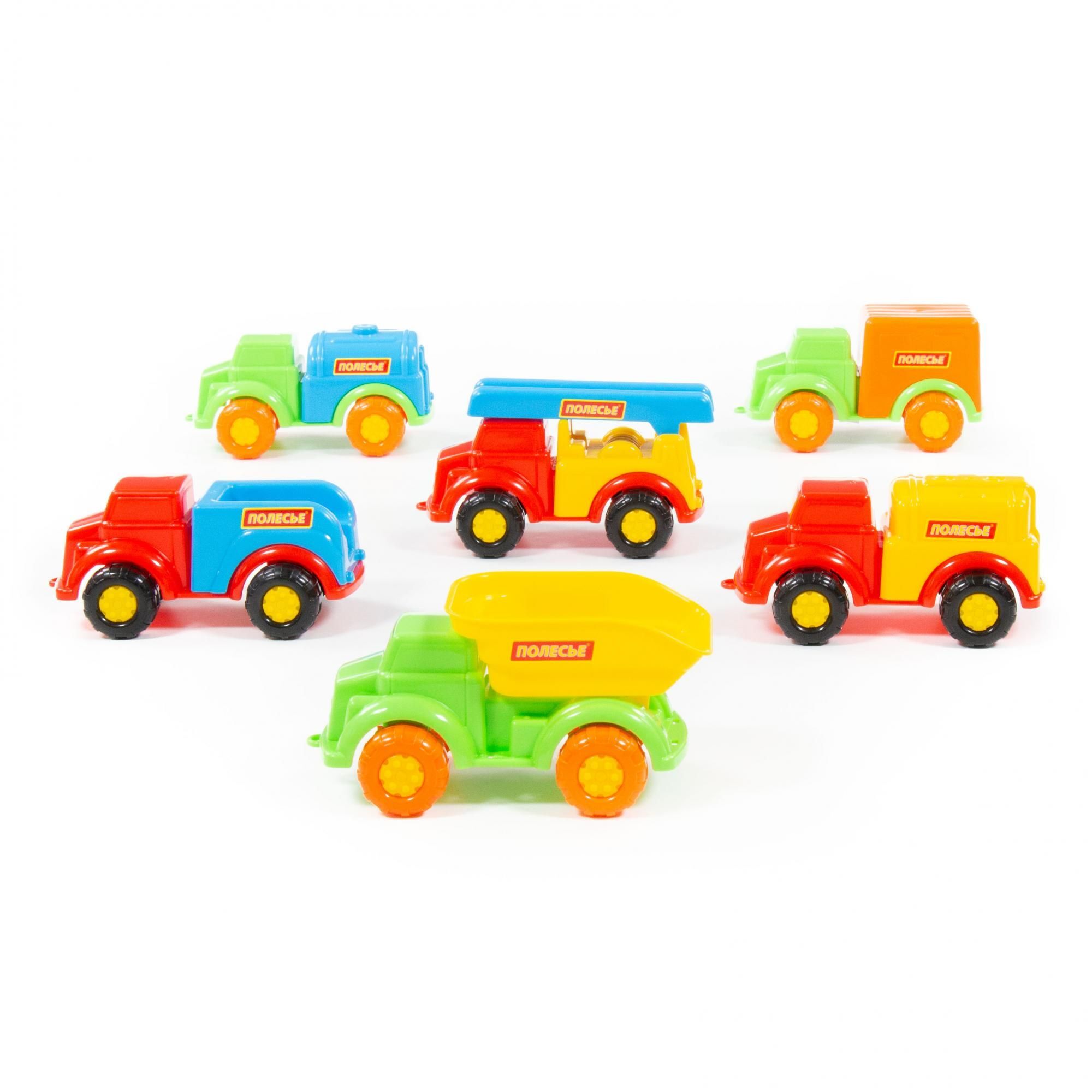 В 1 упаковке содержится: 5 самосвалов; 2 пожарных автомобиля; 3 молоковоза; 3 водовоза; 2 бортовых автомобиля; 2 фургона (Итого 17 шт.)