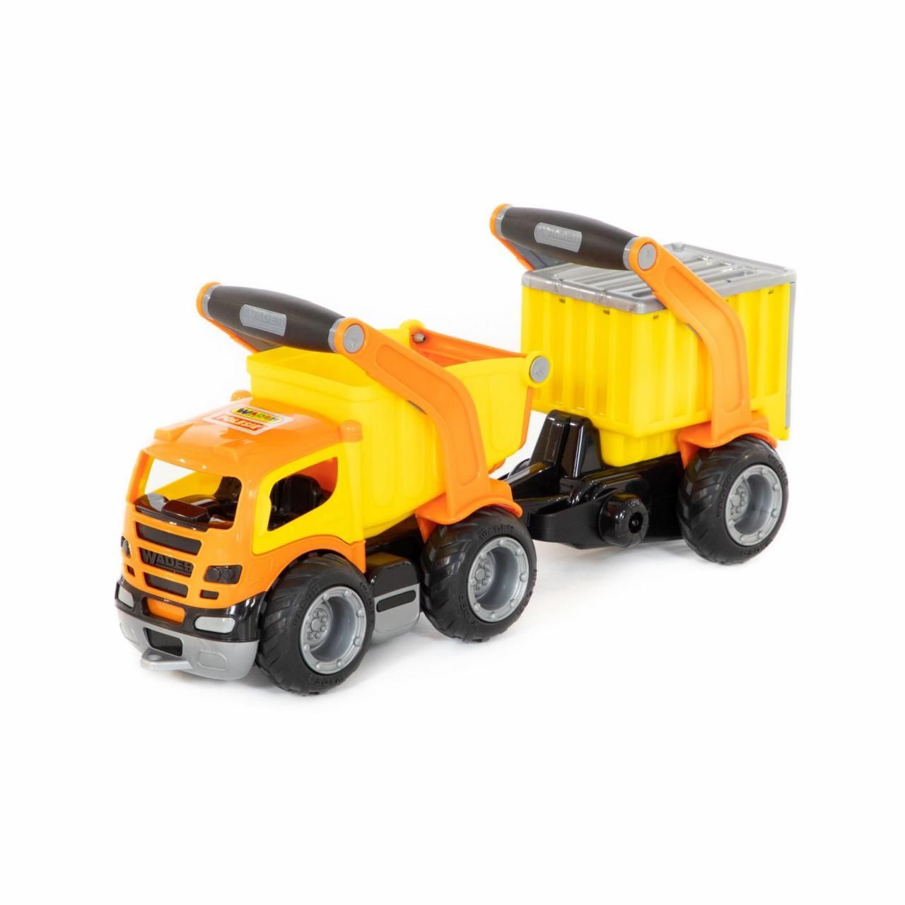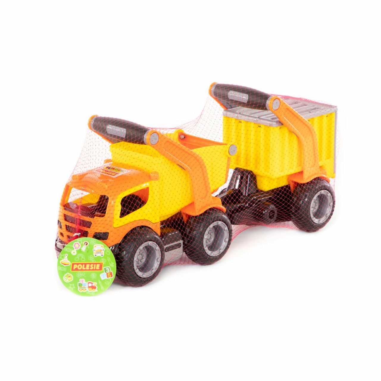 Самосвал серии «ГрипТрак» выделяется своим дизайном и функциональностью. У автомобиля открываются дверки кабины. Кузов самосвала снимается с помощью прорезиненной ручки, таким же образом ставится обратно. Для удобства разгрузки открывается задний борт. По такой же системе сделан полуприцеп, который идёт в комплекте. Кроме того, у самосвала и прицепа резиновые колёса с крупным протектором, что улучшает сцепление с любым покрытием и выглядит более реалистично. Самосвал «ГрипТрак» с полуприцепом небольшой, но очень занимательный автомобиль, который обязательно понравится малышу и сделает игру ещё интереснее.