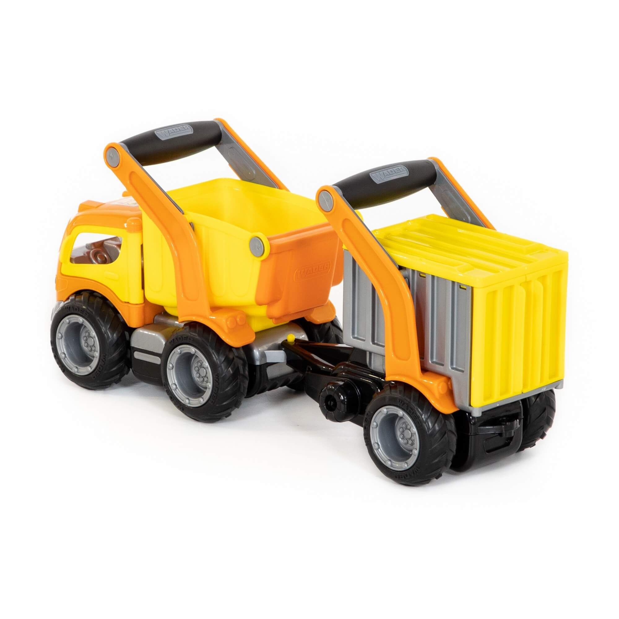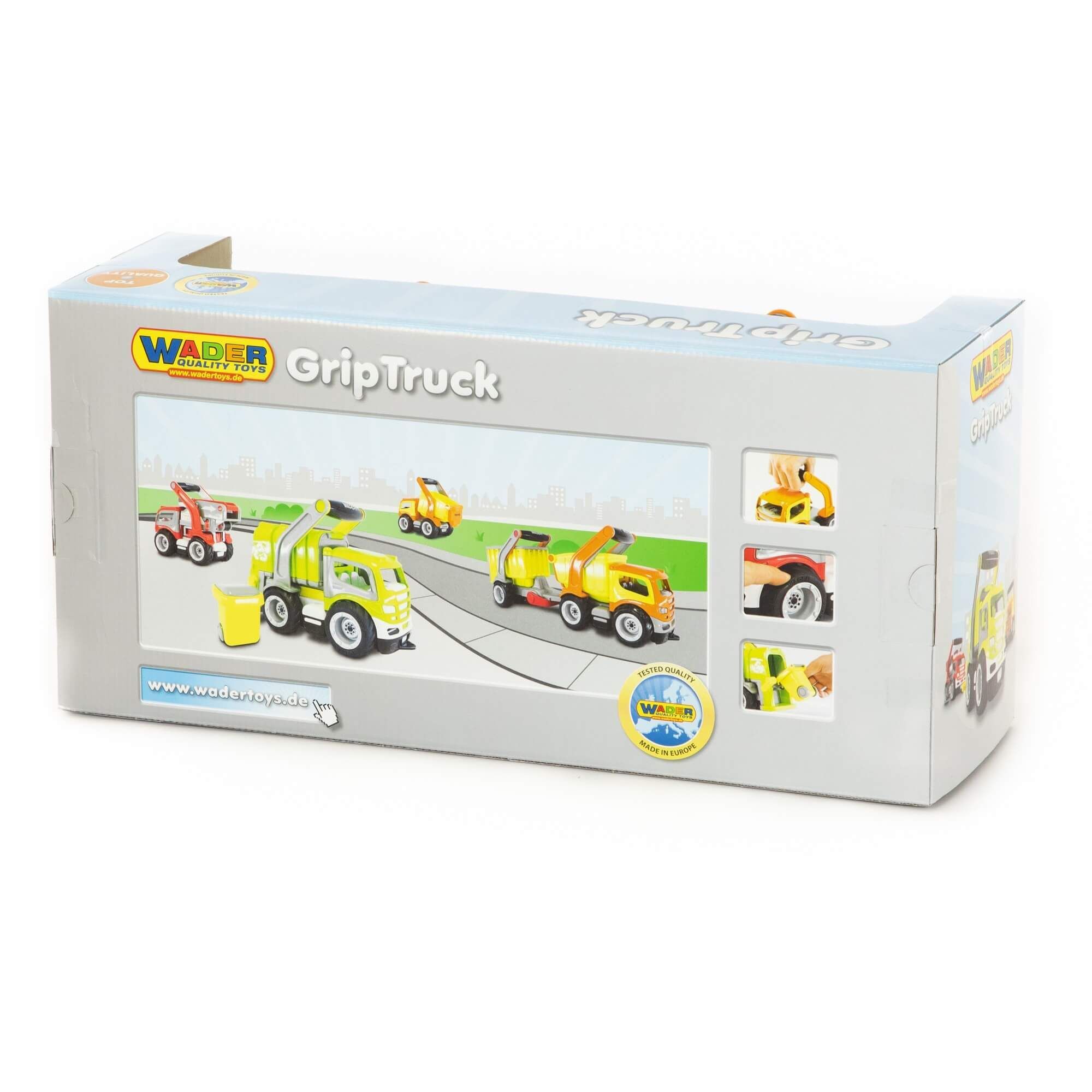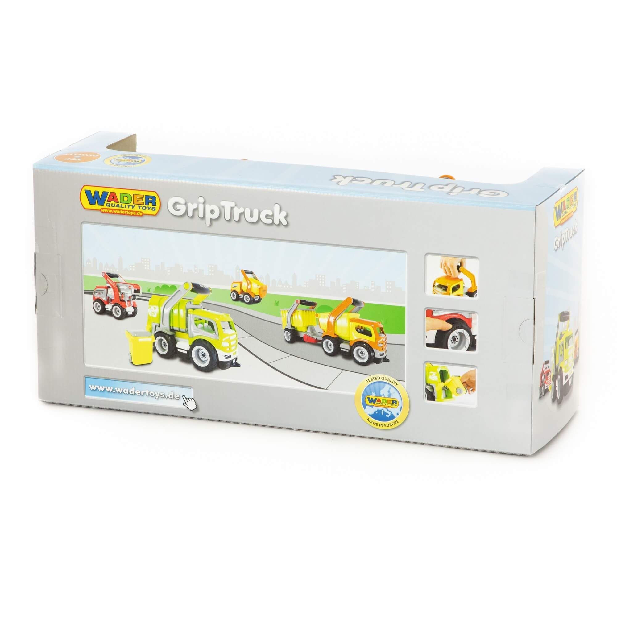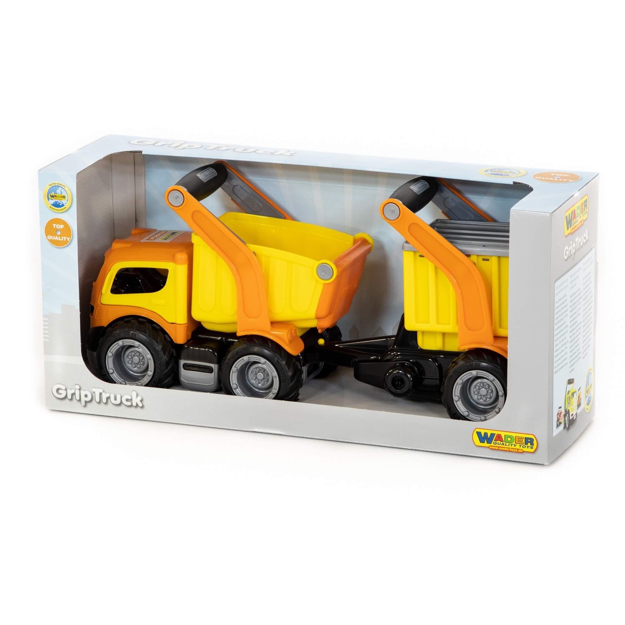 Самосвал серии «ГрипТрак» выделяется своим дизайном и функциональностью. У автомобиля открываются дверки кабины. Кузов самосвала снимается с помощью прорезиненной ручки, таким же образом ставится обратно. Для удобства разгрузки открывается задний борт. По такой же системе сделан полуприцеп, который идёт в комплекте. Кроме того, у самосвала и прицепа резиновые колёса с крупным протектором, что улучшает сцепление с любым покрытием и выглядит более реалистично. Самосвал «ГрипТрак» с полуприцепом небольшой, но очень занимательный автомобиль, который обязательно понравится малышу и сделает игру ещё интереснее.