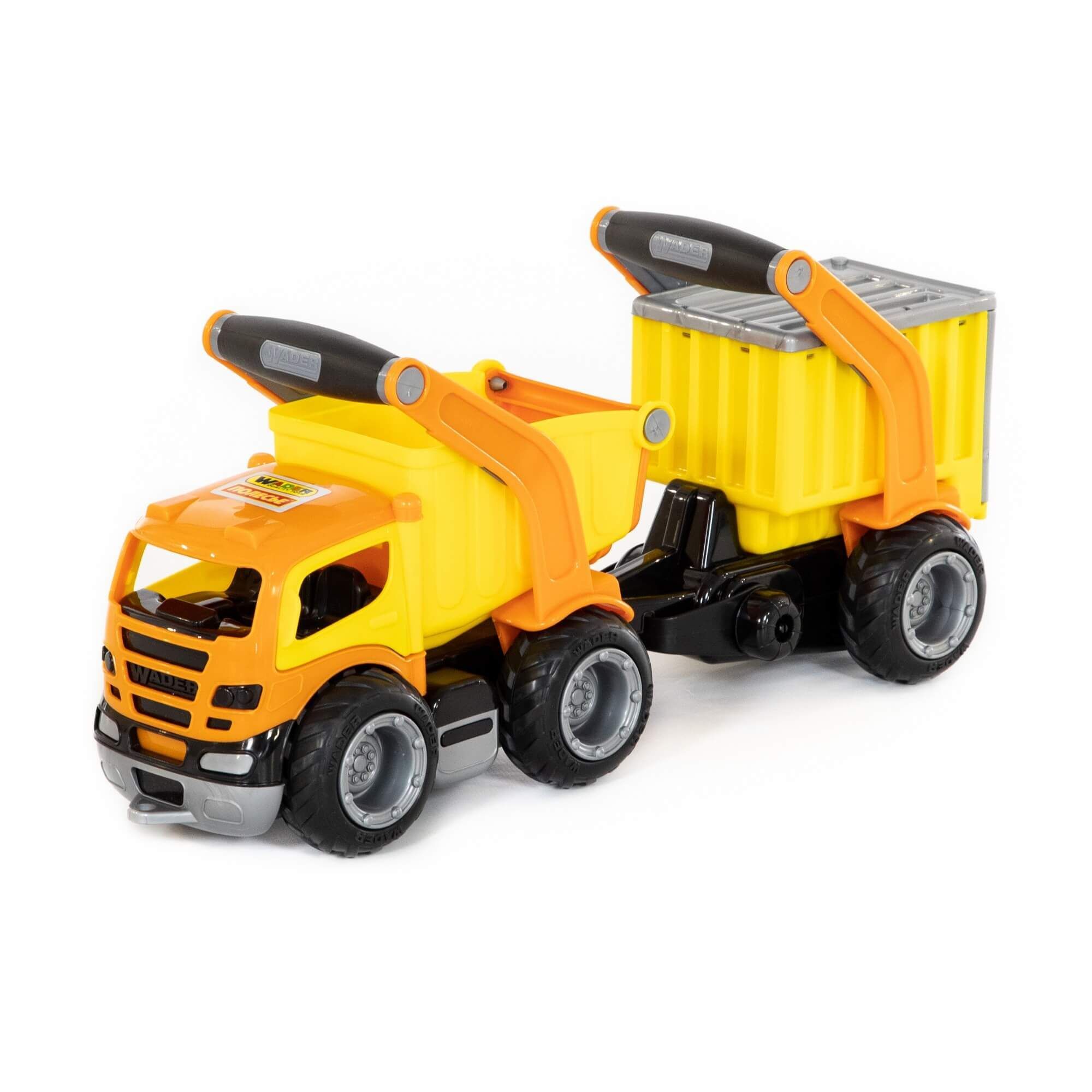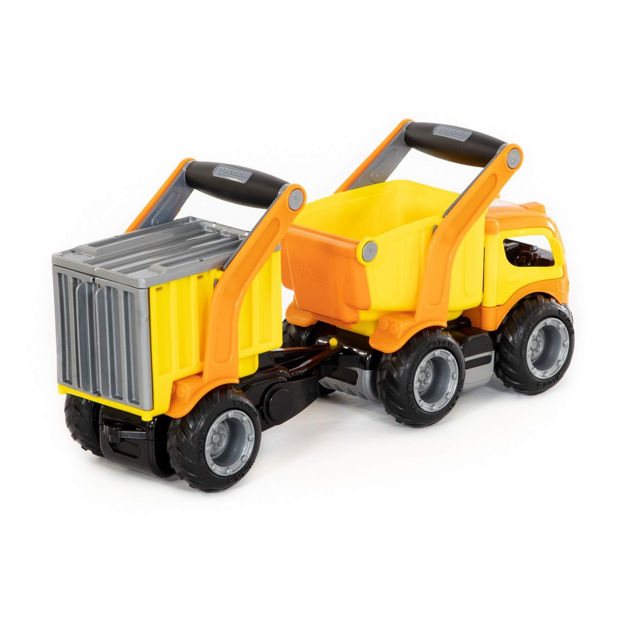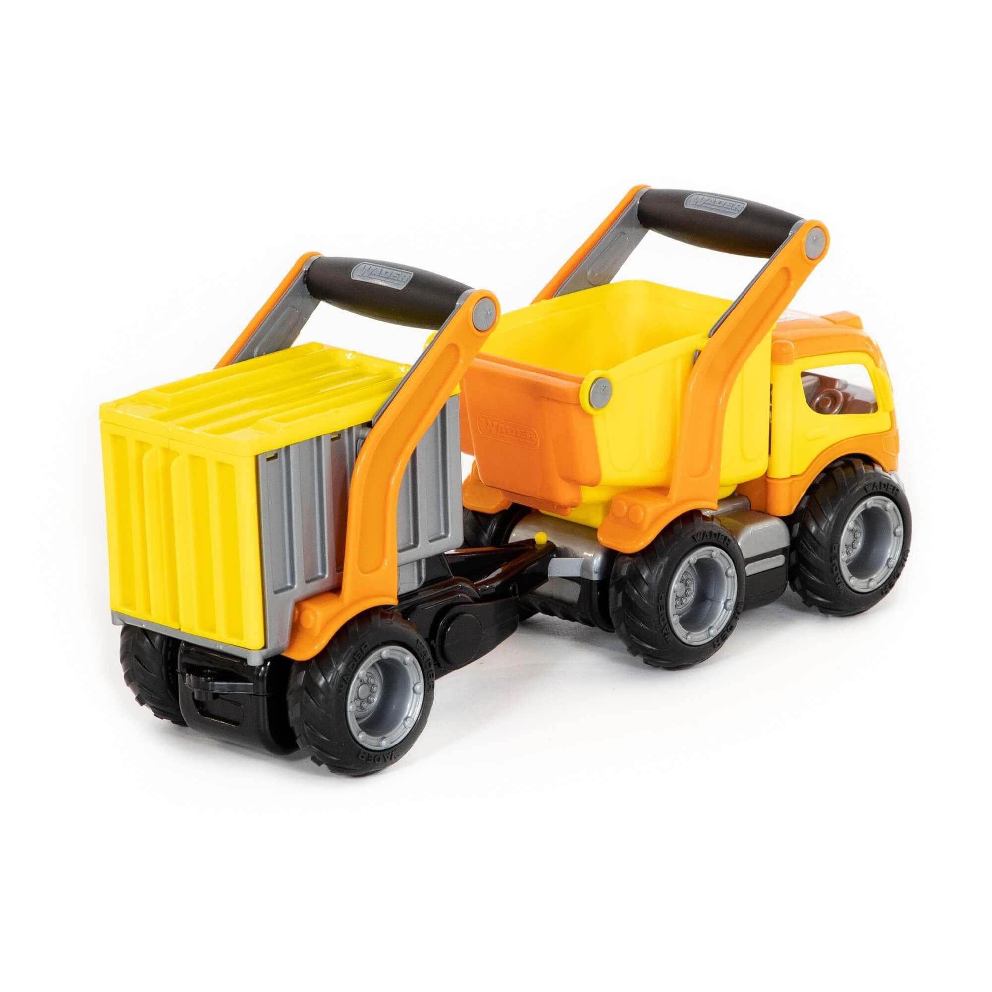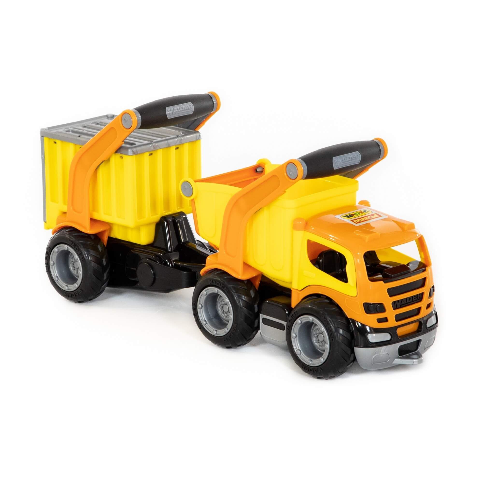 Самосвал серии «ГрипТрак» выделяется своим дизайном и функциональностью. У автомобиля открываются дверки кабины. Кузов самосвала снимается с помощью прорезиненной ручки, таким же образом ставится обратно. Для удобства разгрузки открывается задний борт. По такой же системе сделан полуприцеп, который идёт в комплекте. Кроме того, у самосвала и прицепа резиновые колёса с крупным протектором, что улучшает сцепление с любым покрытием и выглядит более реалистично. Самосвал «ГрипТрак» с полуприцепом небольшой, но очень занимательный автомобиль, который обязательно понравится малышу и сделает игру ещё интереснее.