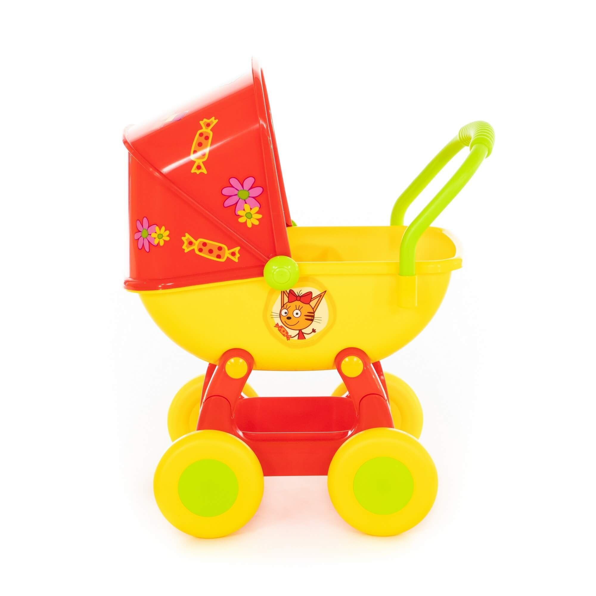Коляска для пупсов и кукол серии «Три кота» имеет стильный дизайн и является мини-копией оригинальной коляски. Конструкция надёжная, ведь она выполнена из качественного пластика. Под люлькой находится корзина для вещей, а сверху предусмотрен защитный козырёк. Модель украшена наклейками с изображением героев из мультфильма про весёлых котят и выполнена в жизнерадостных цветах. Коляска имеет функцию каталки, что позволяет малышке усовершенствовать навыки ходьбы.