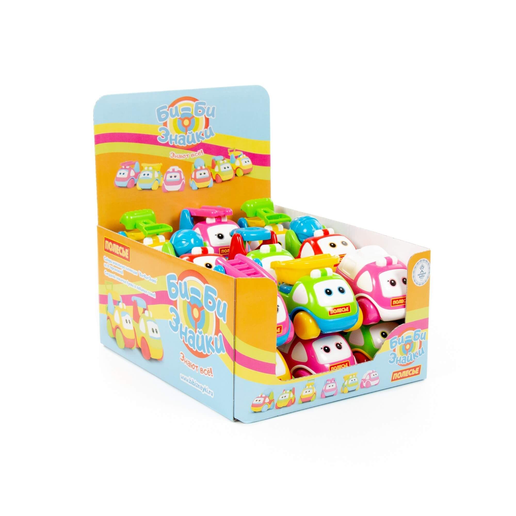 В дисплей от компании «Полесье» «Би-Би-Знайка» входят 18 автомобилей в пакетах.