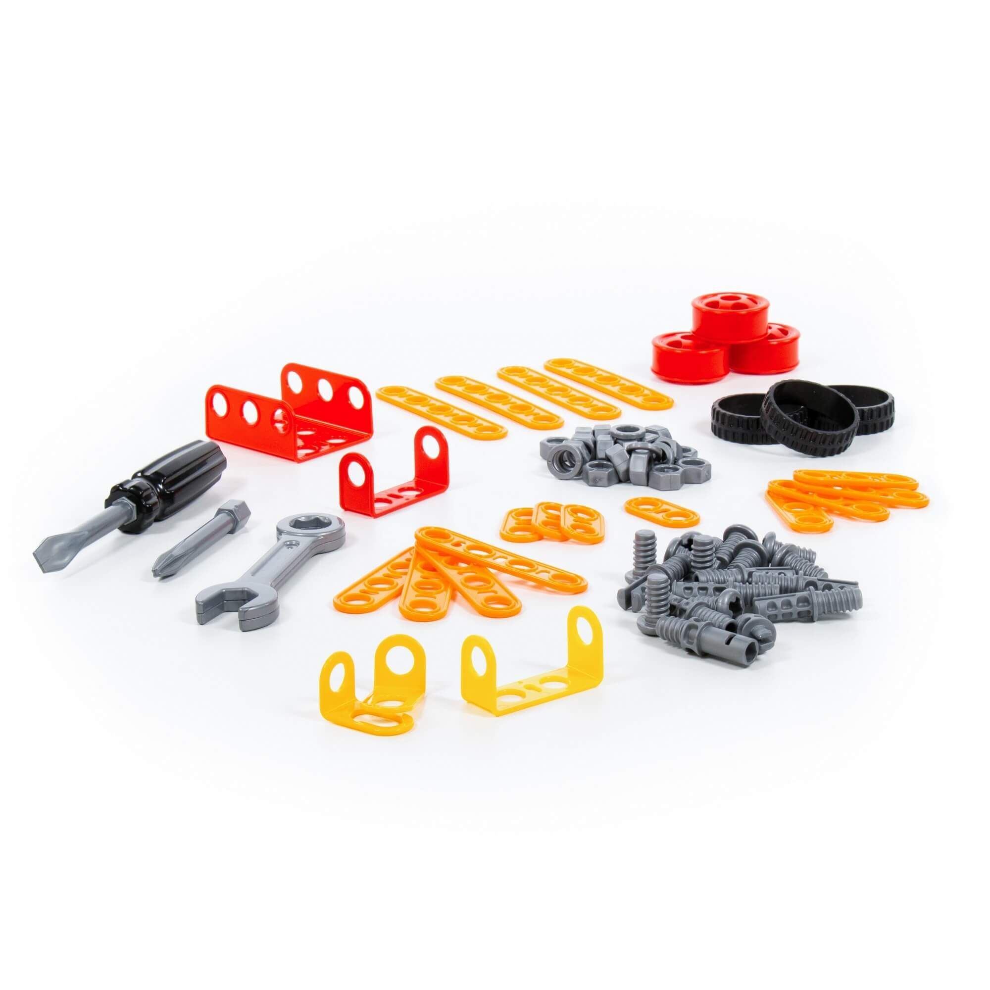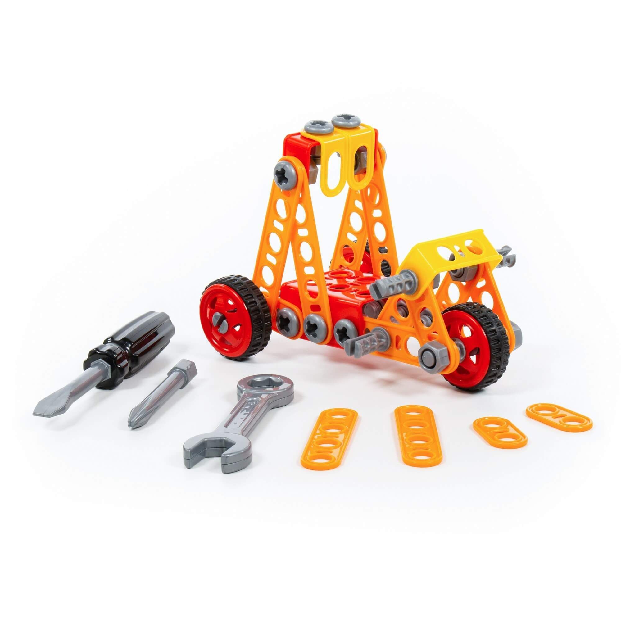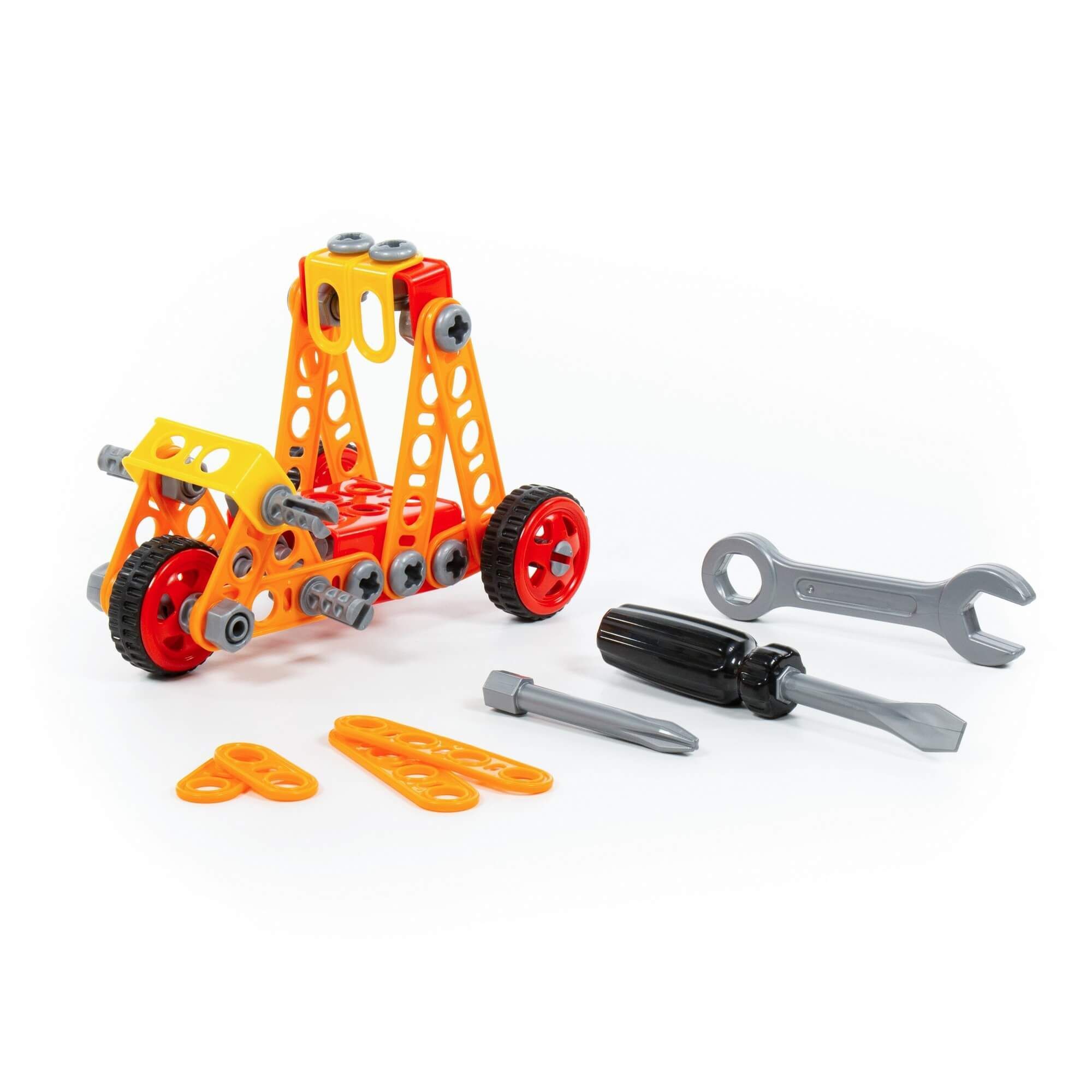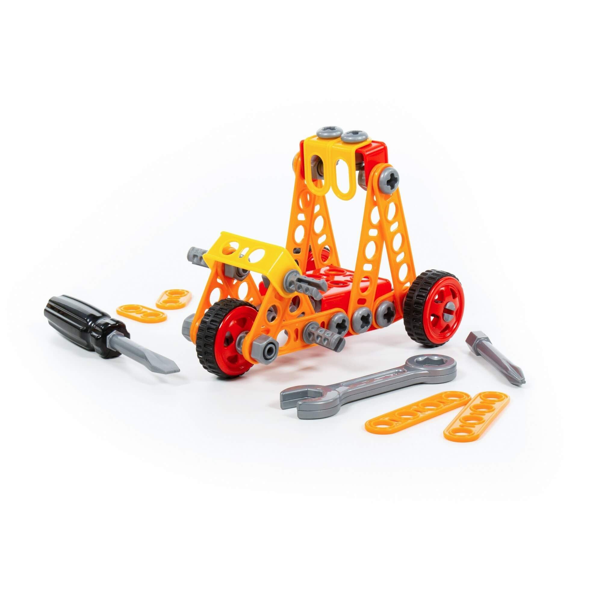 Конструктор «Изобретатель» — " Трицикл № 2» (74 элемента) от фабрики «Полесье» отличается особым функционалом. Элементы выполнены в виде планок, пазы которых соединяются при помощи болтов и гаек. В комплект конструктора входят подробные инструкции, следуя которым можно собрать модели, представленные на упаковке игрушки. При этом ребёнок будет развивать усидчивость и внимание. Игра с данной серией конструкторов не ограничивается сборкой моделей по инструкции, дети всегда могут попробовать создать что-то новое, используя свою фантазию, пространственное и ассоциативное мышление. Игры с конструктором могут определить будущую профессию малыша, раскрыв в нём творческий потенциал. Все конструкторы серии «Изобретатель» совершенно разные, поэтому из них можно собрать целую коллекцию, которая превратится в творческую мастерскую Вашего ребёнка!