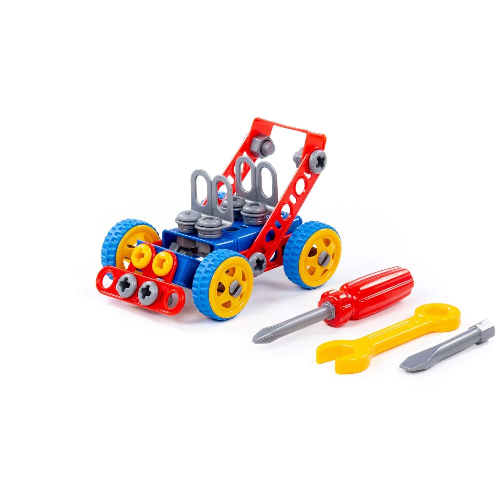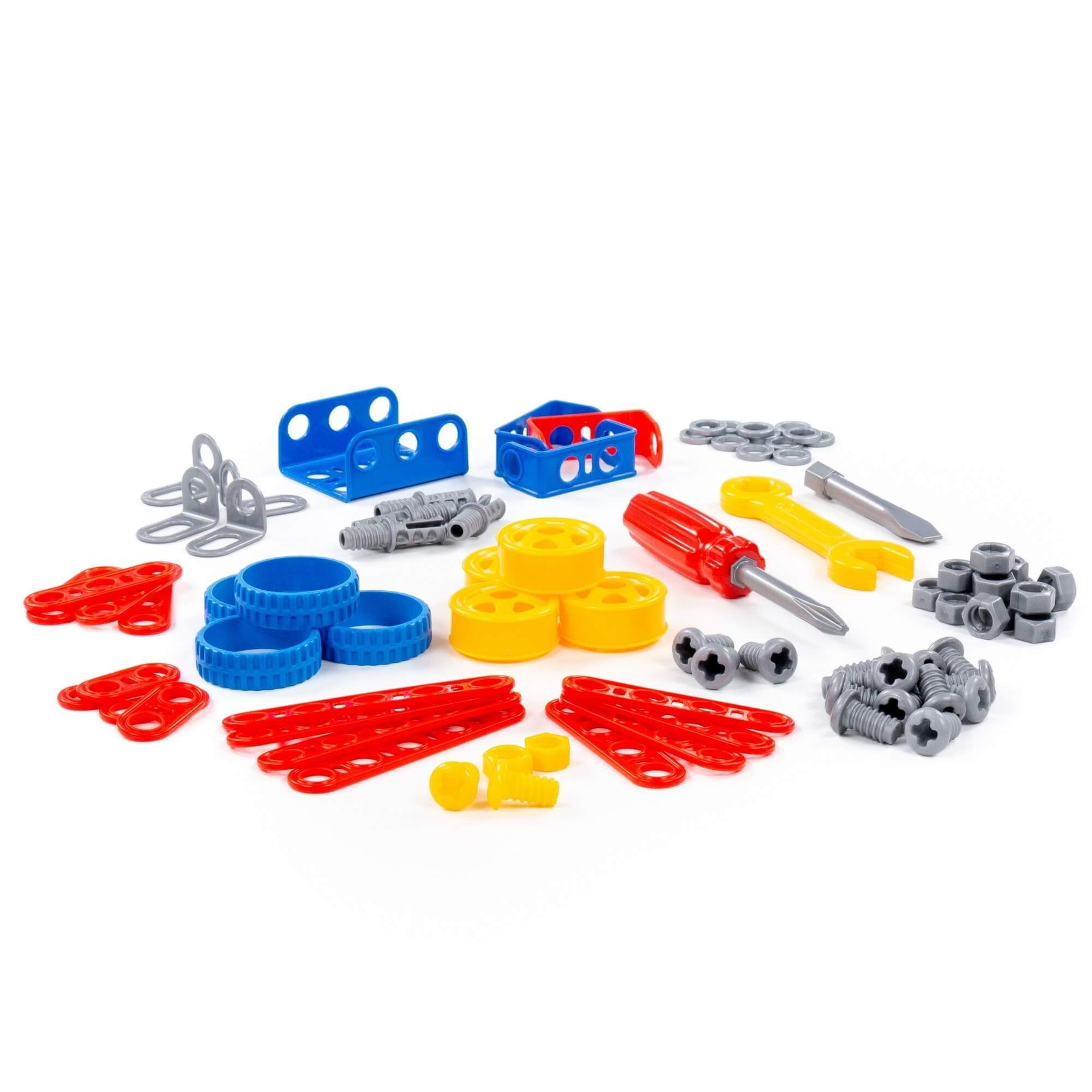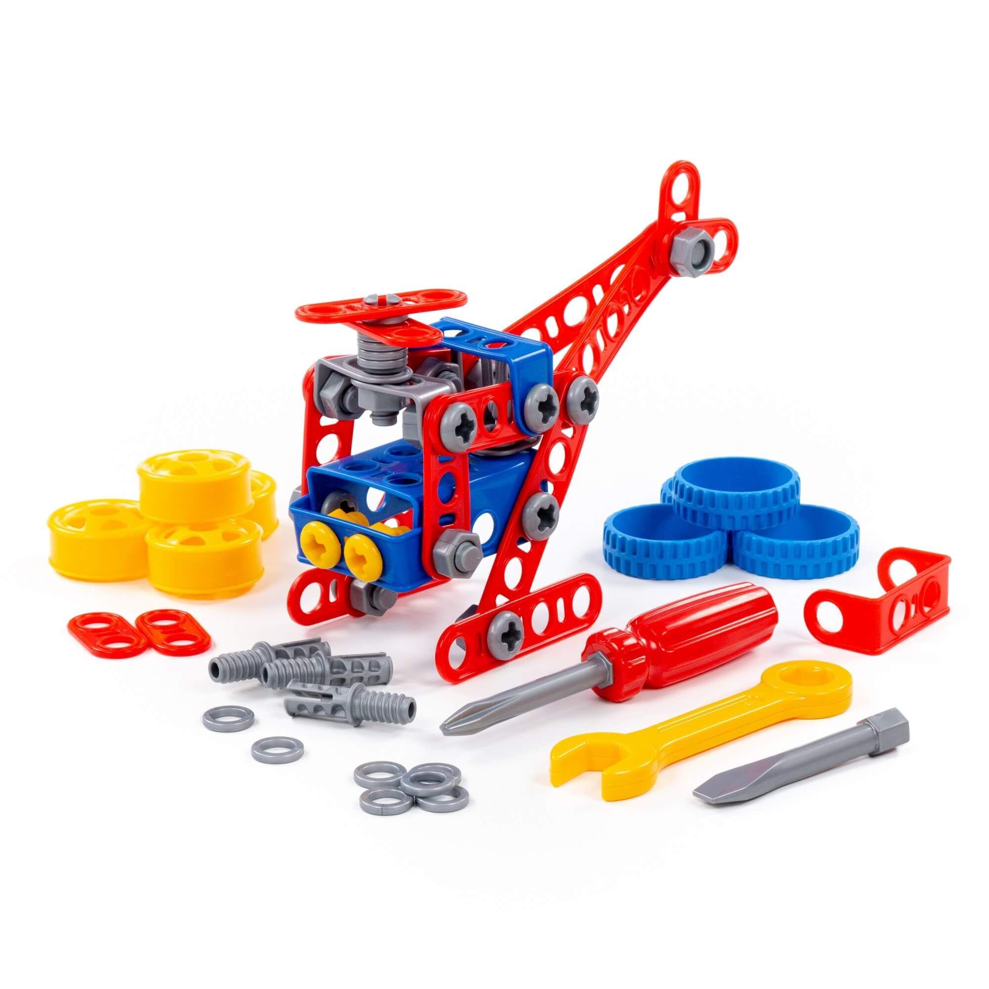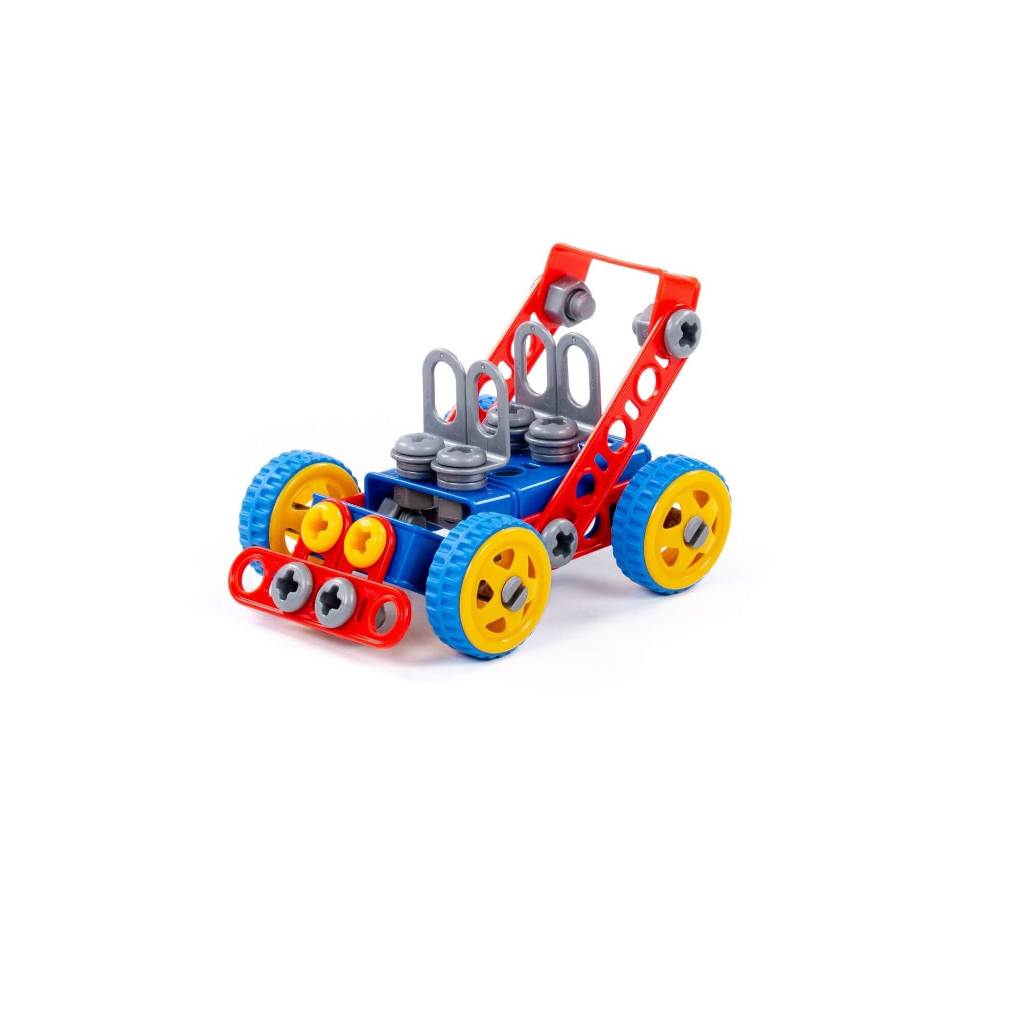 Конструктор «Изобретатель» (91 элемент) от фабрики «Полесье» отличается особым функционалом. Элементы выполнены в виде планок, пазы которых соединяются при помощи болтов и гаек. В комплект конструктора входят подробные инструкции, следуя которым можно собрать модели, представленные на упаковке игрушки. При этом ребёнок будет развивать усидчивость и внимание. Игра с данной серией конструкторов не ограничивается сборкой моделей по инструкции, дети всегда могут попробовать создать что-то новое, используя свою фантазию, пространственное и ассоциативное мышление. Игры с конструктором могут определить будущую профессию малыша, раскрыв в нём творческий потенциал. Все конструкторы серии «Изобретатель» совершенно разные, поэтому из них можно собрать целую коллекцию, которая превратится в творческую мастерскую Вашего ребёнка!