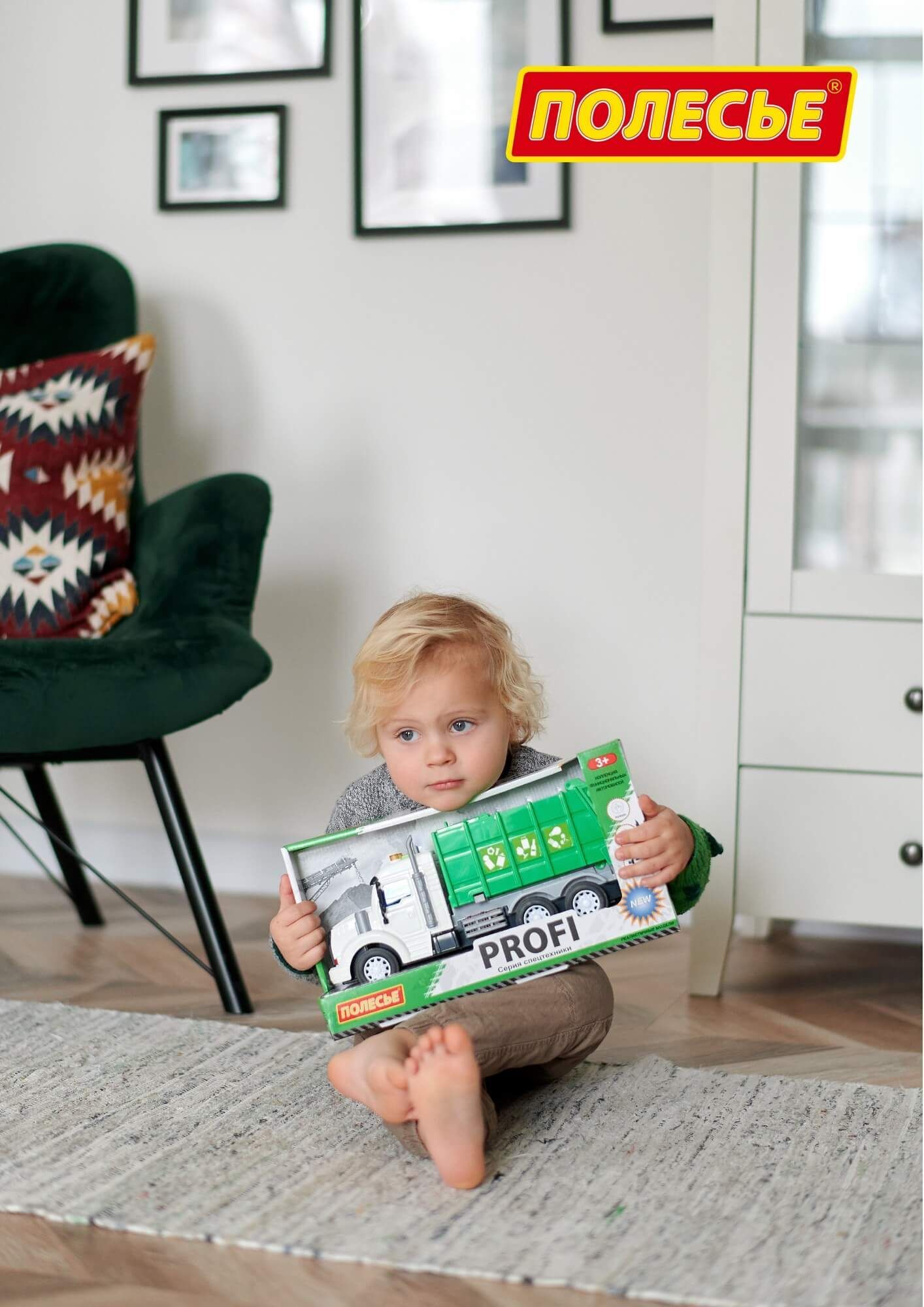 Автомобиль коммунальный инерционный «Профи» от фабрики «Полесье» - это качественная реалистичная игрушка, конструкция которой полностью повторяет дизайн настоящей техники. Спецмашина имеет три пары колёс на металлических осях, кроме того, она оснащена кузовом с задней загрузкой, который позволит придумывать различные сценарии игры. На кабине авто имеется 4 кнопки управления звуковыми и световыми эффектами.