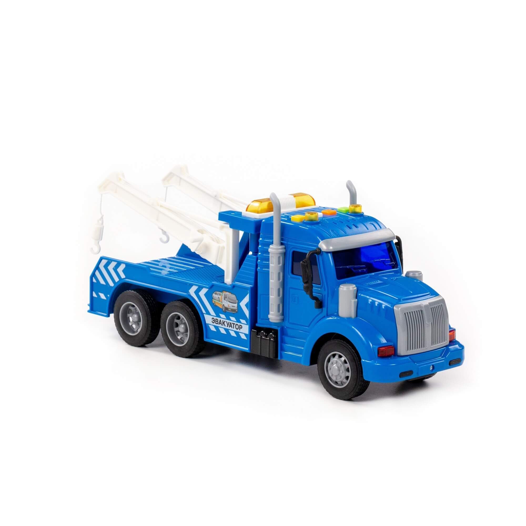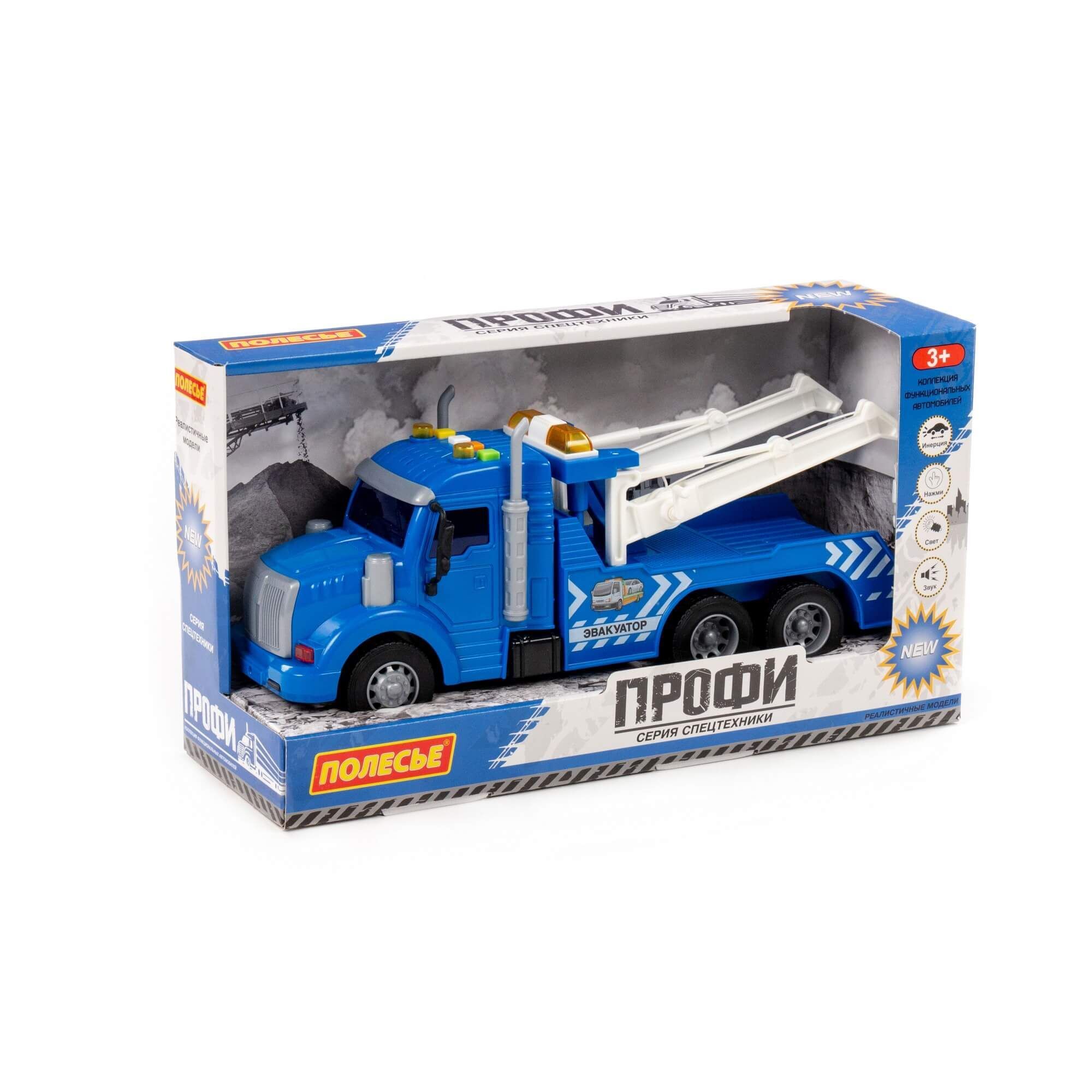 Автомобиль-эвакуатор инерционный «Профи» от фабрики «Полесье» — это качественная реалистичная игрушка, конструкция которой повторяет дизайн настоящей техники. Спецмашина имеет три пары колёс на металлических осях, кроме того, она оснащена особыми крюками, предназначенными для затягивания автомобиля на платформу эвакуатора. На кабине игрушки имеется 4 кнопки управления звуковыми и световыми эффектами. Наличие инерционного механизма, делает игру с машинкой еще более интересной.