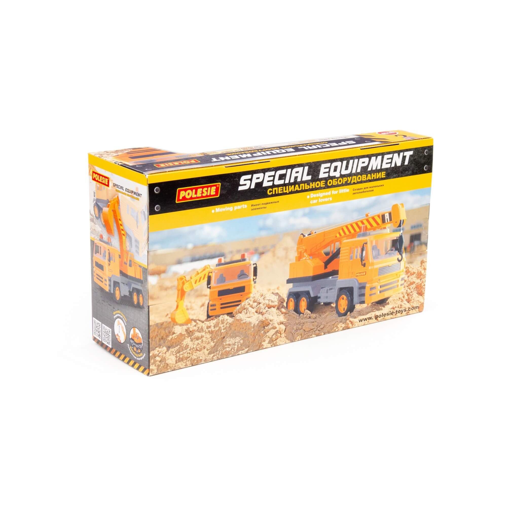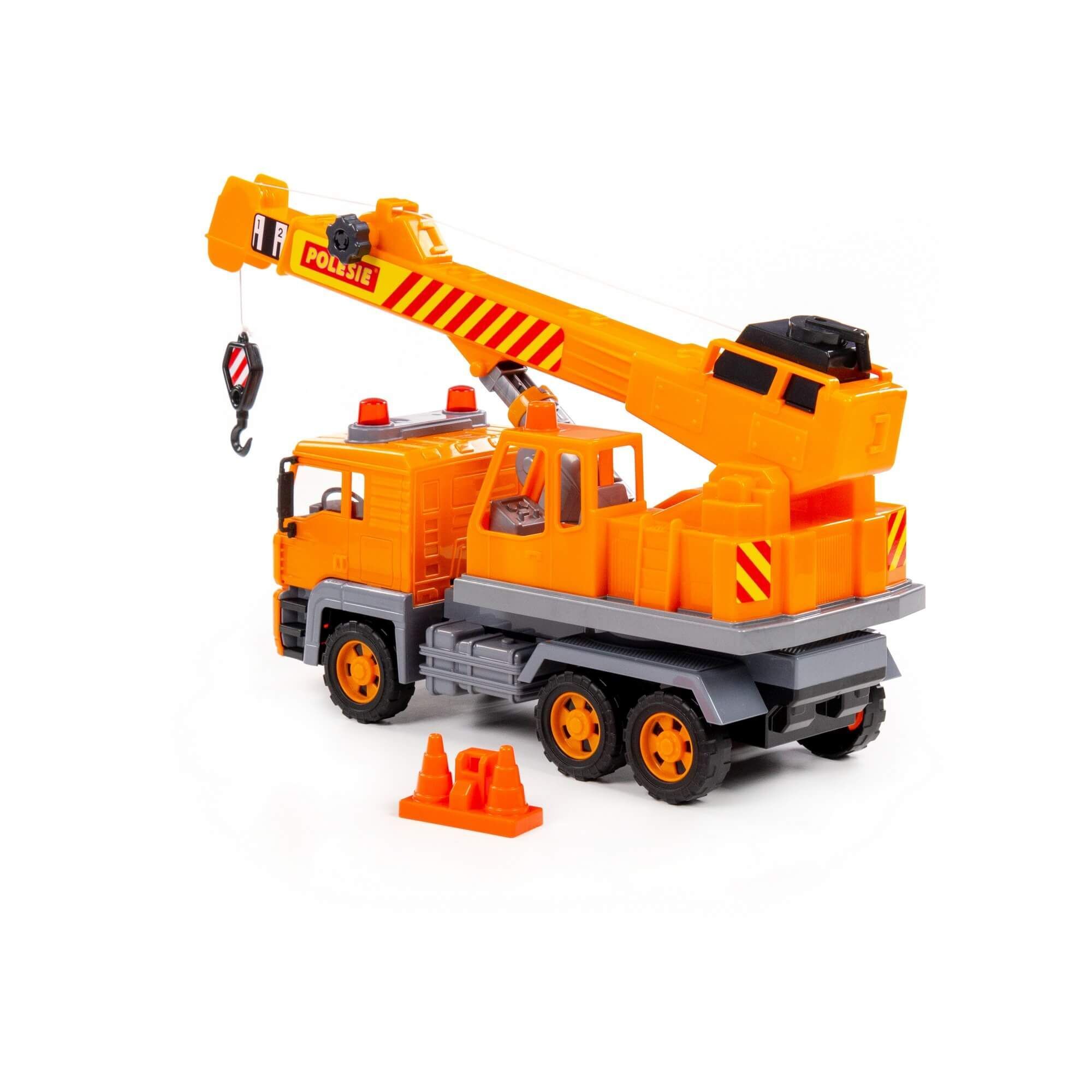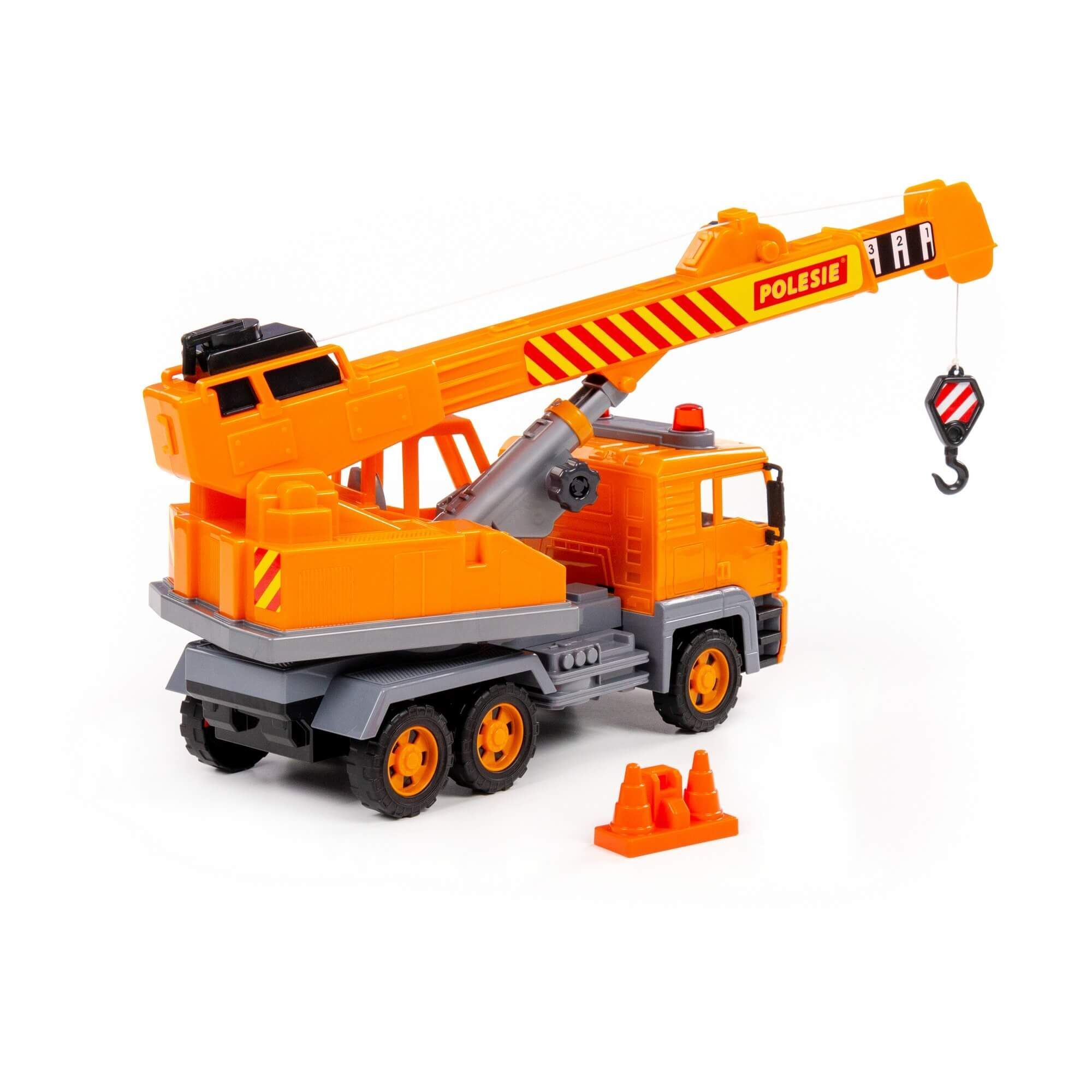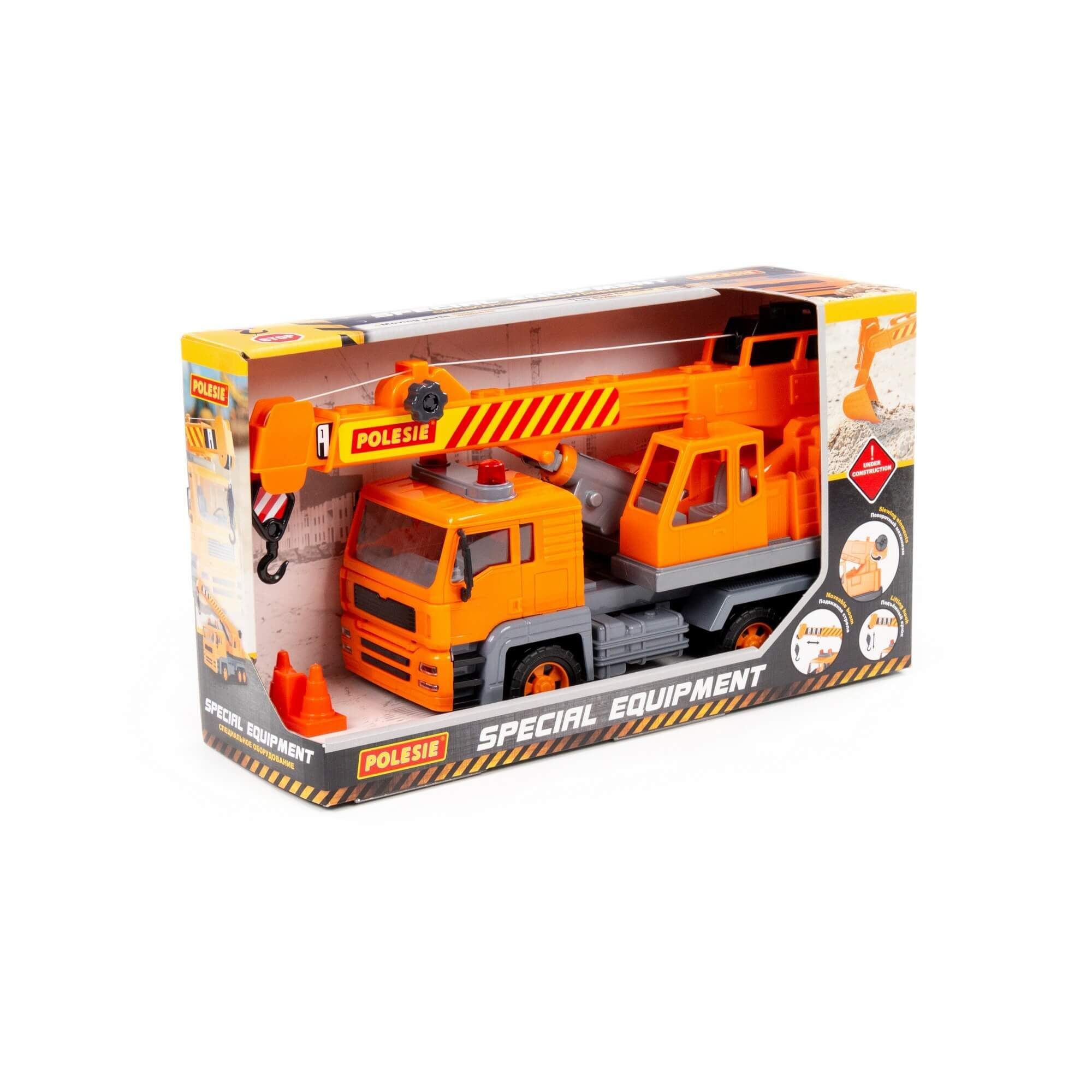 Серия спецтехники «Алмаз» от фабрики «Полесье» включает в себя основные виды авто, которые используются в реальной жизни при промышленных работах. Автомобили имеют реалистичный дизайн и детализированную конструкцию: имеется имитация фар и проблесковых маячков. Кроме того, все машины оснащены инерционным механизмом. Автомобиль-кран №2 «Алмаз» - это интересный вид техники, представленный в данной серии. Игрушка имеет подвижную поворотную платформу, а также выдвижную стрелу с крюковой подвеской, которую можно поднимать и опускать с помощью ручного механизма. Конструкция крана предполагает наличие трёх пар колёс, а в комплекте с игрушкой идут строительные конусы, которые разнообразят и дополнят игру!