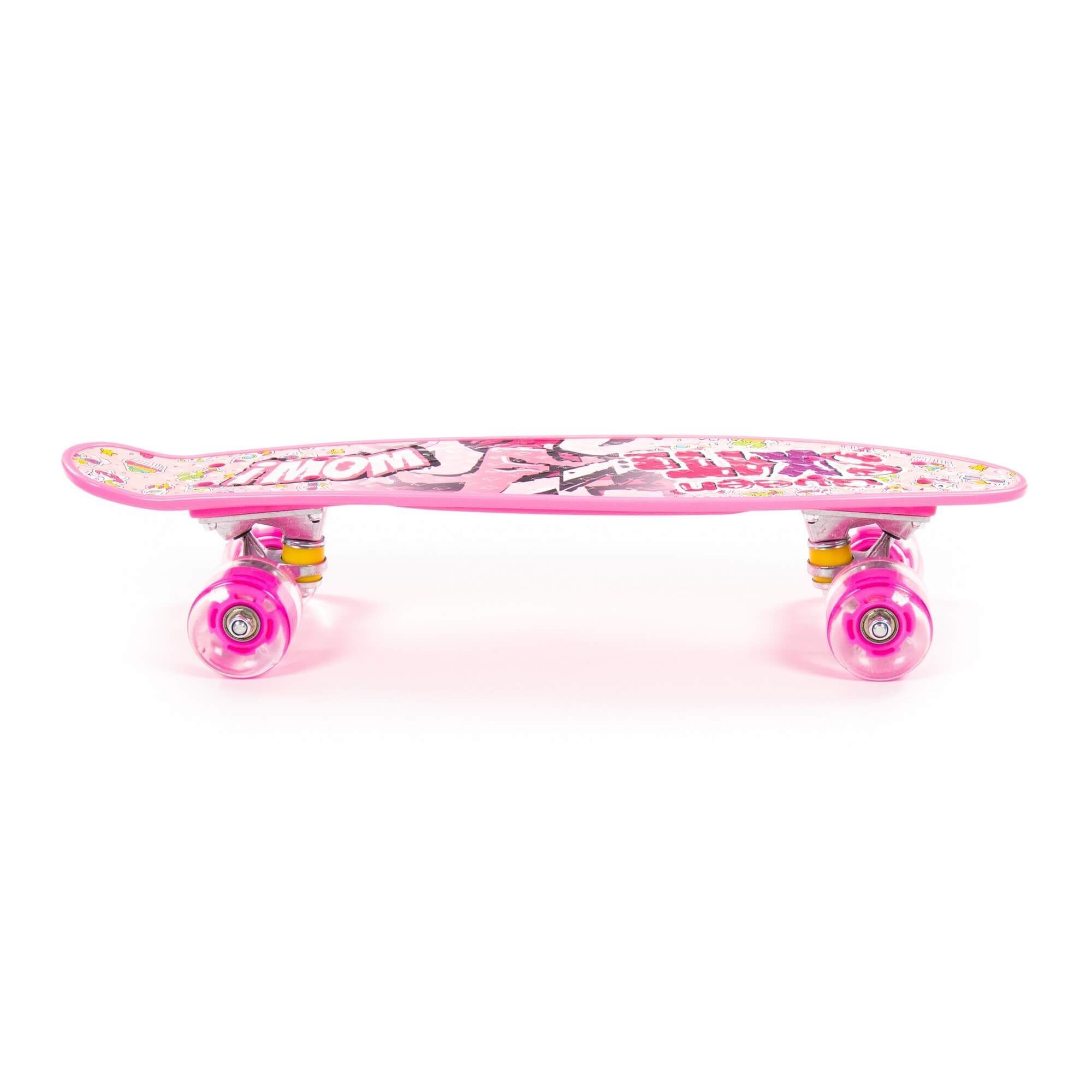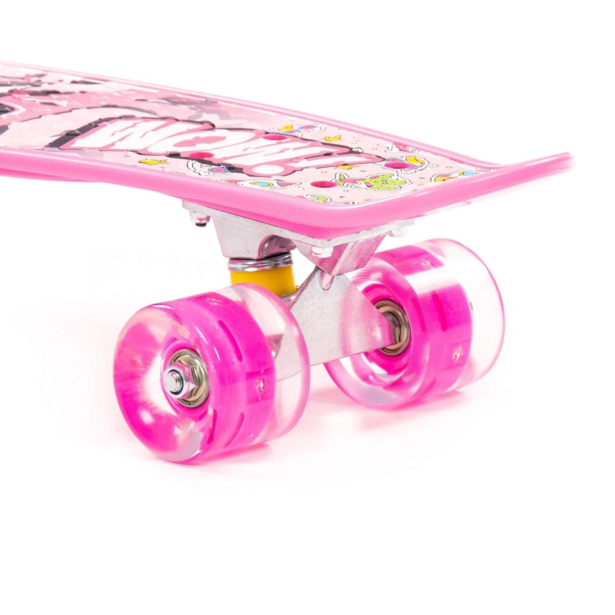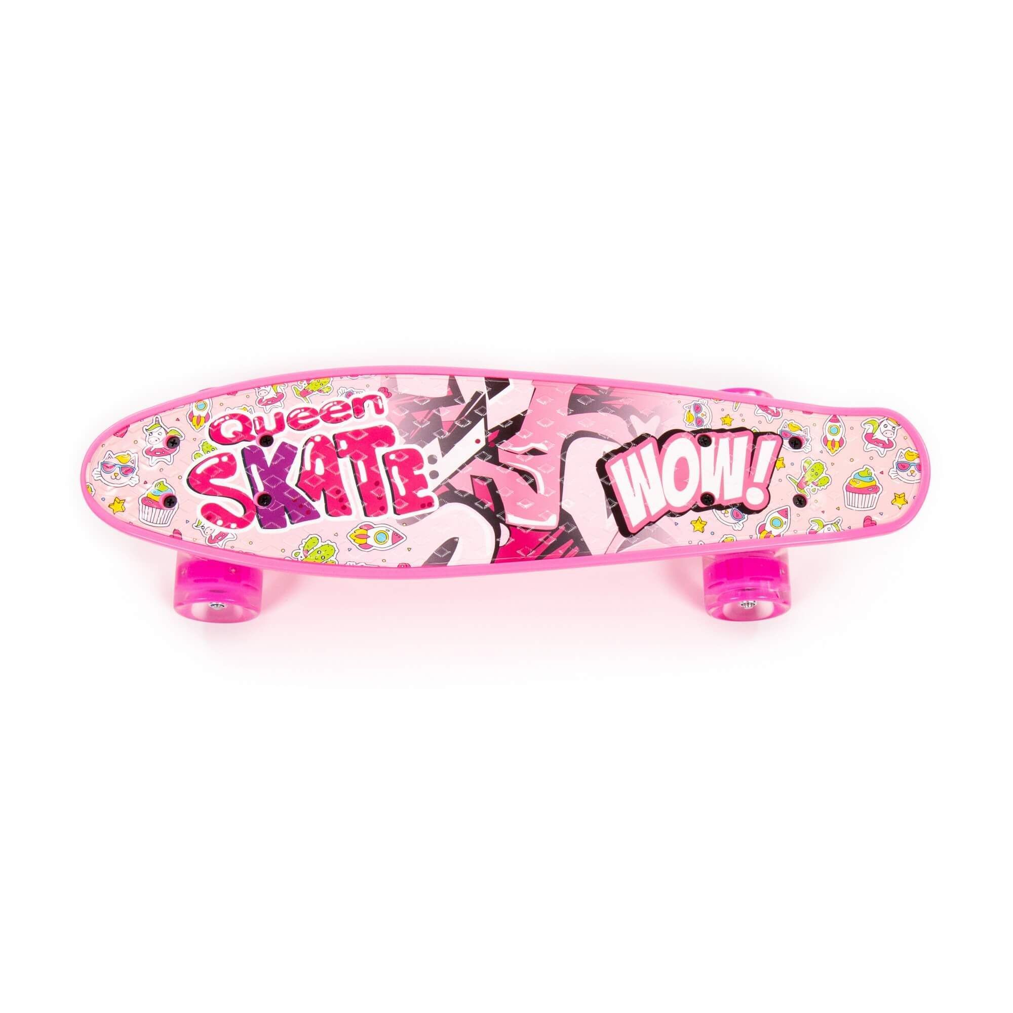 Доска роликовая (56 см) (малиновая) с наклейкой и малиновыми колёсами