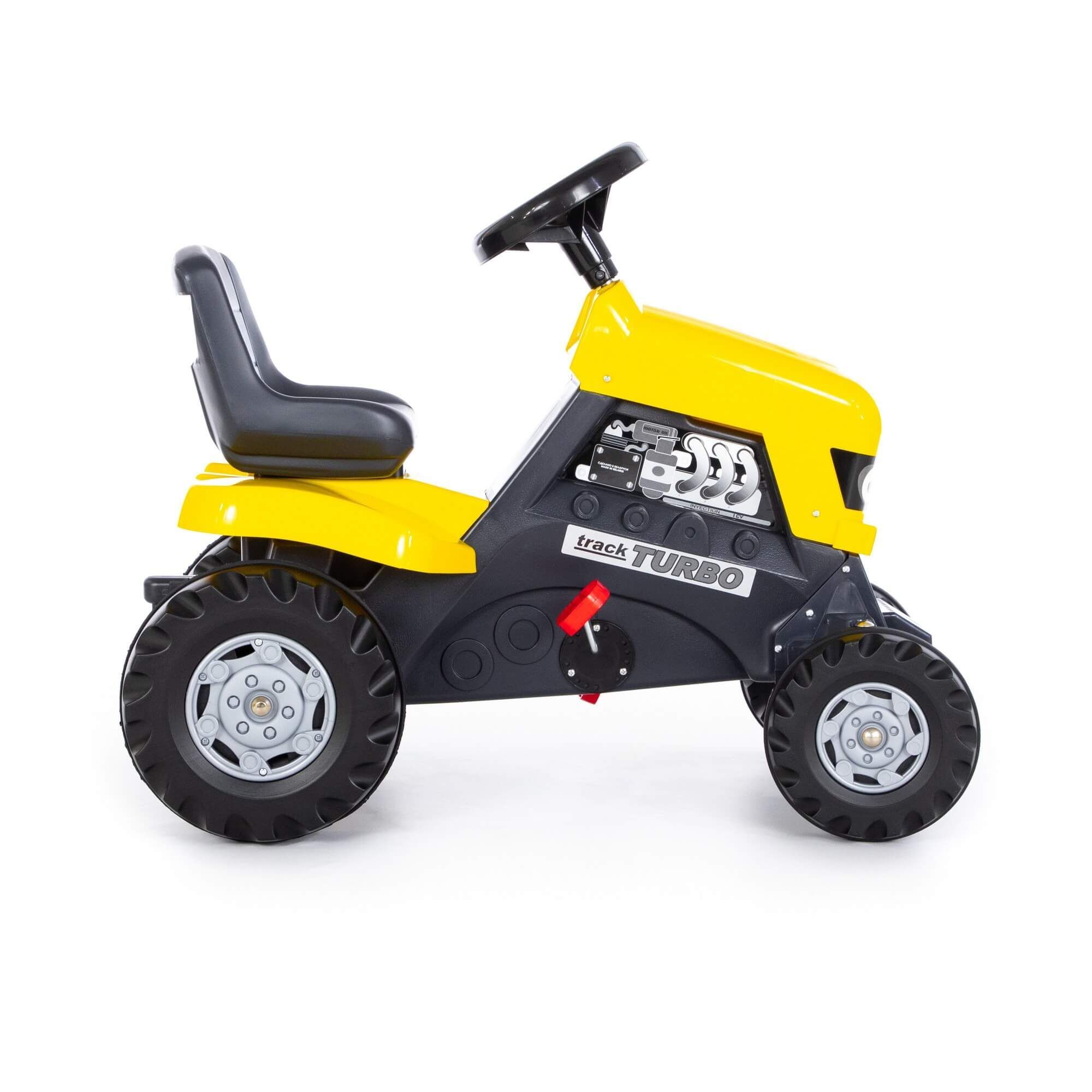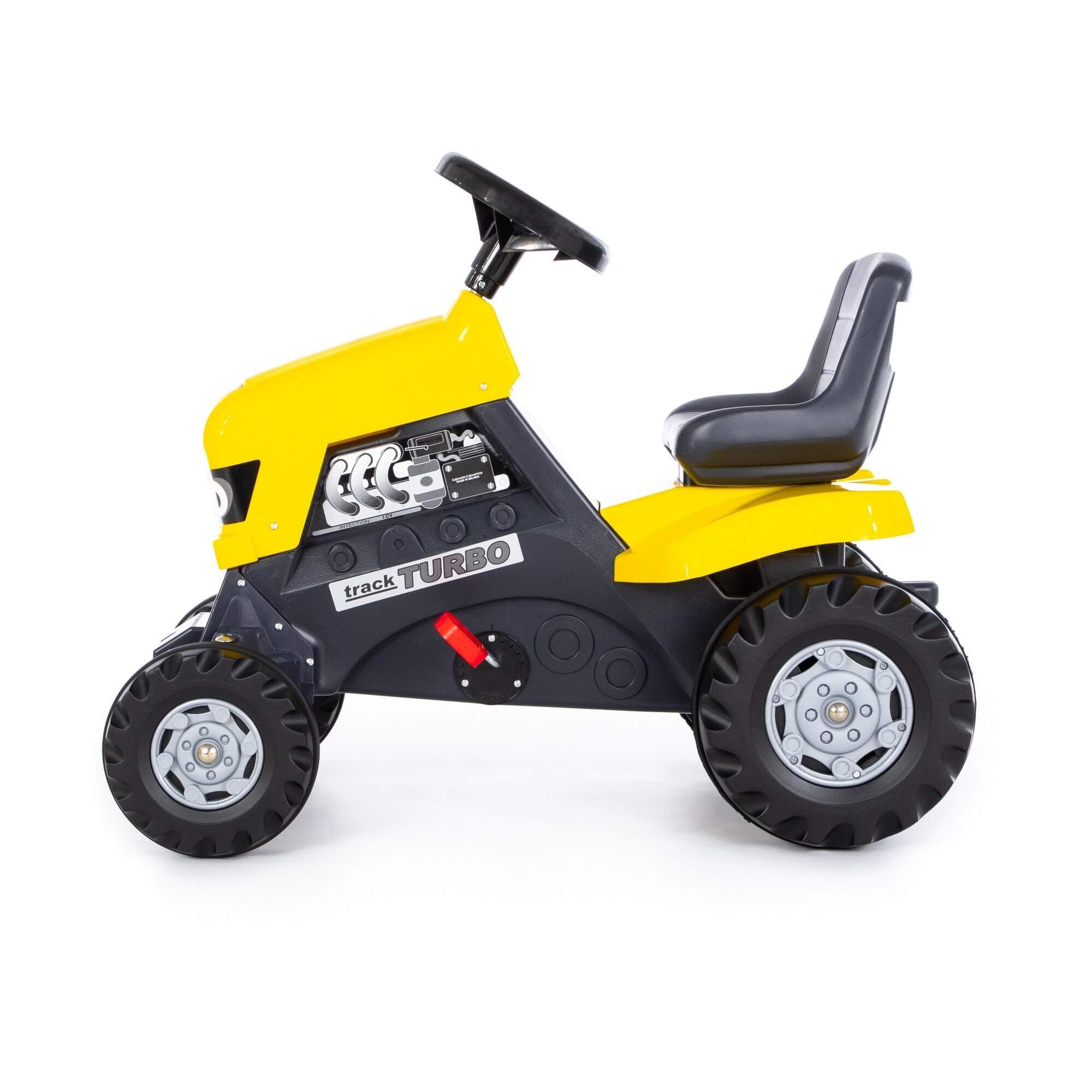 Педальная каталка-трактор "TURBO" легко управляется при помощи руля, выполнена из высококачественного пластика, что обеспечит изделию долгий период службы. От такой игрушки ребёнок будет в восторге. Благодаря трактору-каталке "TURBO" Ваш ребёнок сможет почувствовать себя настоящим фермером. На трактор установлены широкие задние колеса, которые являются ведущими. Каталка приводится в движение педалями. На поверхности задних колес есть резиновые накладки, которые обеспечивают хорошее сцепление с гладкими поверхностями. Высота посадки - 410 мм. Езда на каталке с педалями, как и езда на велосипеде, развивает общую координацию, способствует физическому развитию детей. Игрушка выполнена в ярком жёлтом цвете.