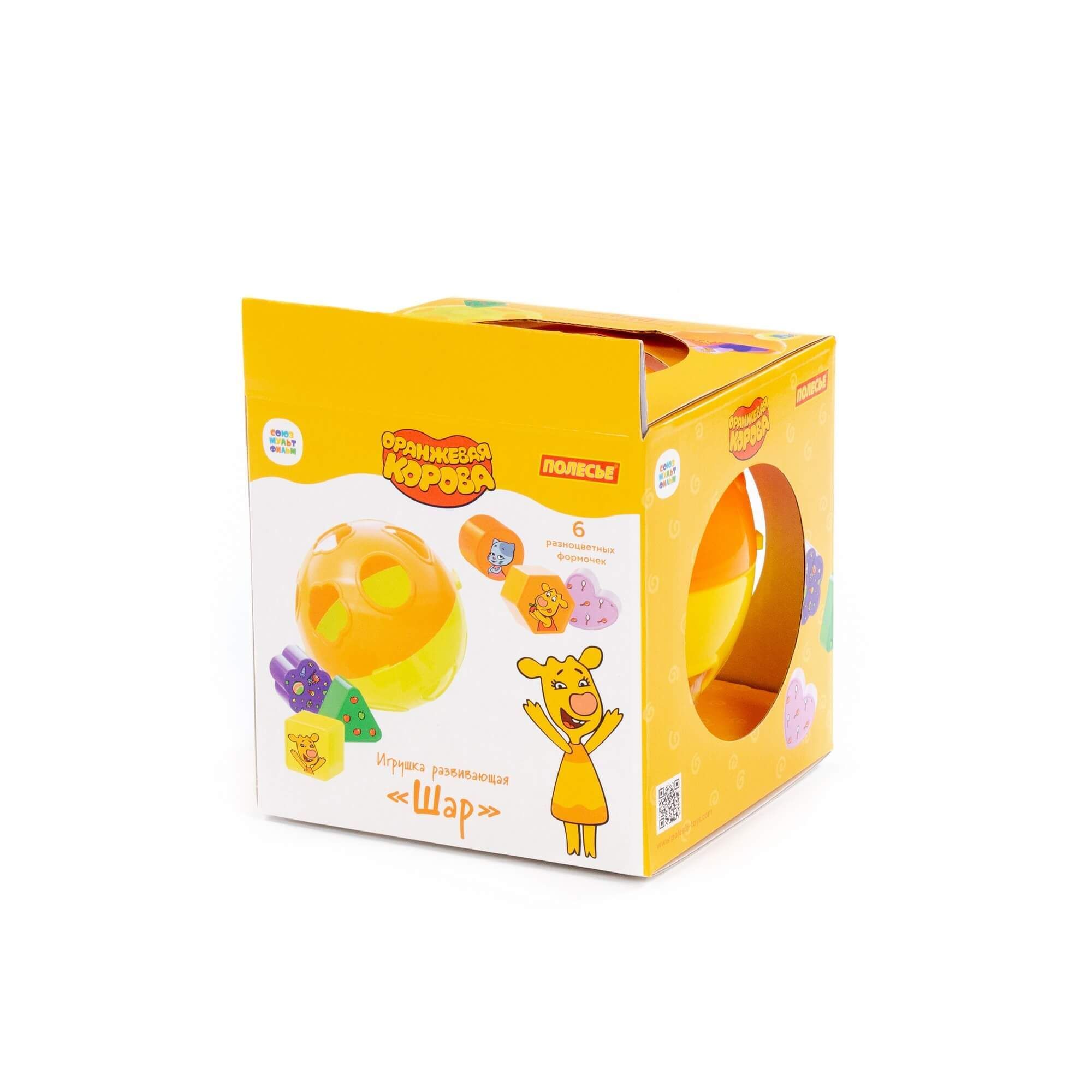 Любимые персонажи из мультсериала «Оранжевая корова» задают хорошее настроение детским играм! «Шар» «Оранжевая корова» - развивающая игрушка для детей от 1 года. На поверхности игрушки расположены отверстия разной формы, в которые нужно поместить подходящие фигурки. В комплекте 6 фигур (круг, квадрат, треугольник, многоугольник, цветочек и сердечко). Для того, чтобы достать фигурки обратно – нужно раскрыть шар. Продается игрушка в красочной коробке.