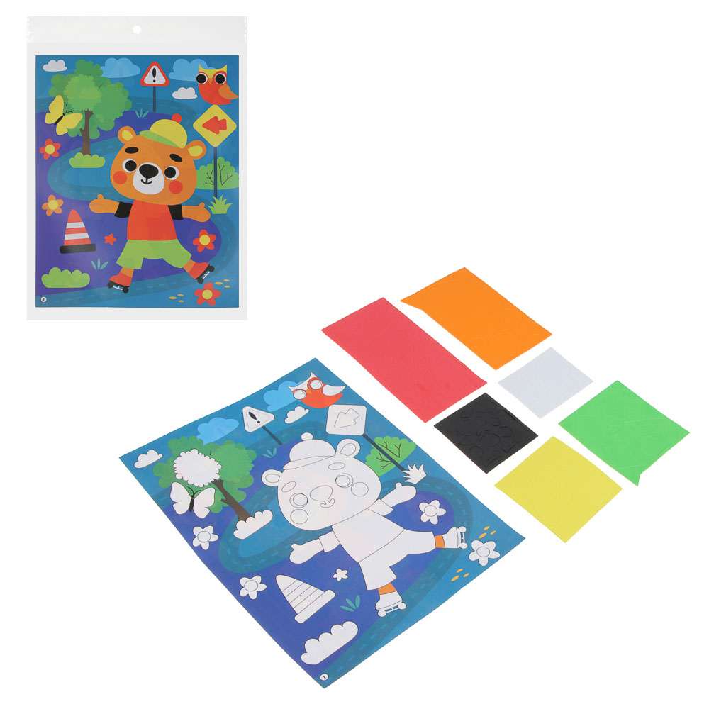 Самоклеящаяся аппликация “Микс” от ХОББИХИТ - этот набор для детей, с которым создают яркие аппликации. Подходит, чтобы развивать творческое мышление и моторику рук. В наборе бумага с черно-белым рисунком для аппликации и цветные заготовки для каждой части рисунка, которые клеят на него. Заготовки из ЭВА - это мягкий упругий искусственный материал: получаются объемные аппликации. Размер 21 х 27 см - чуть меньше листа А4. На выбор 20 картин для аппликаций.