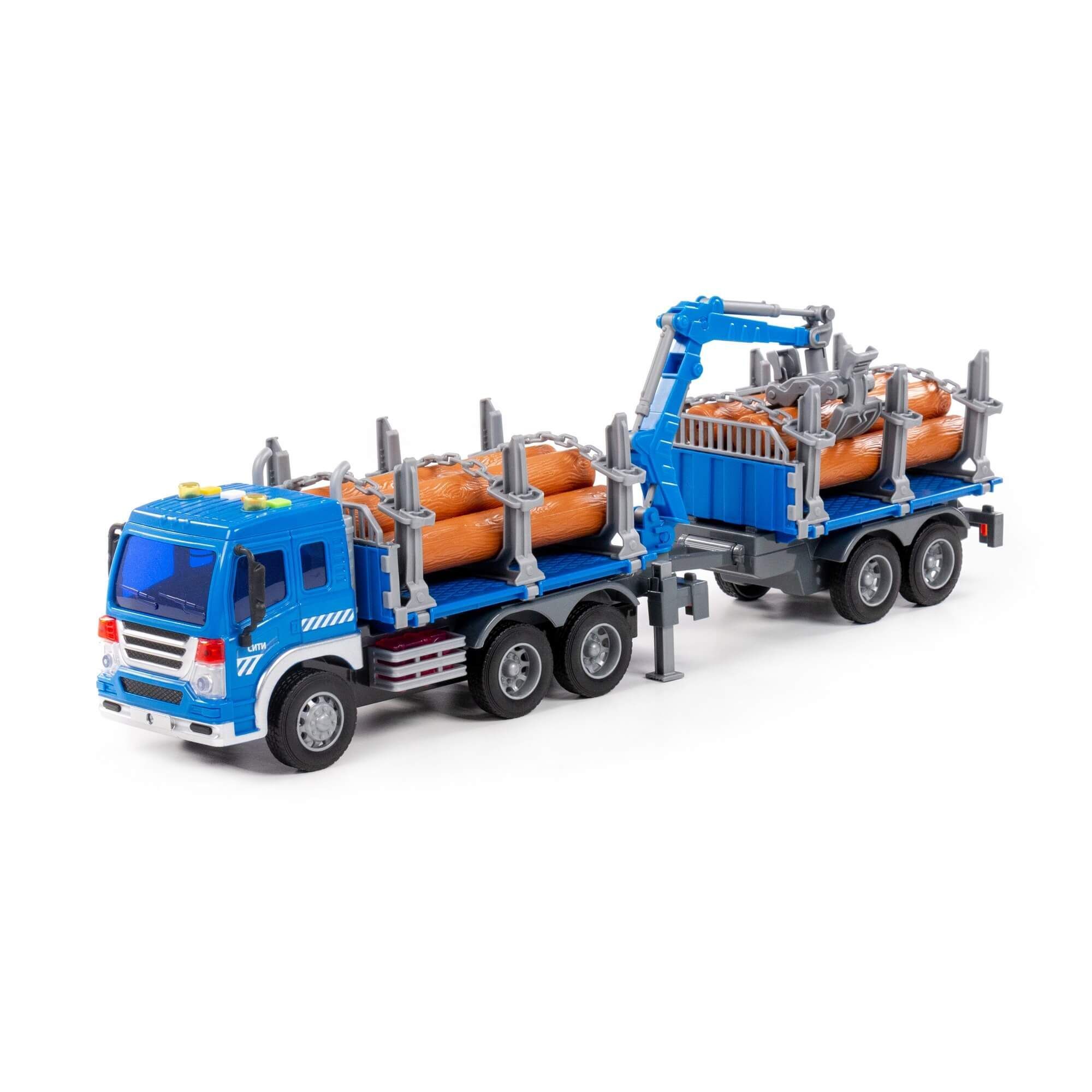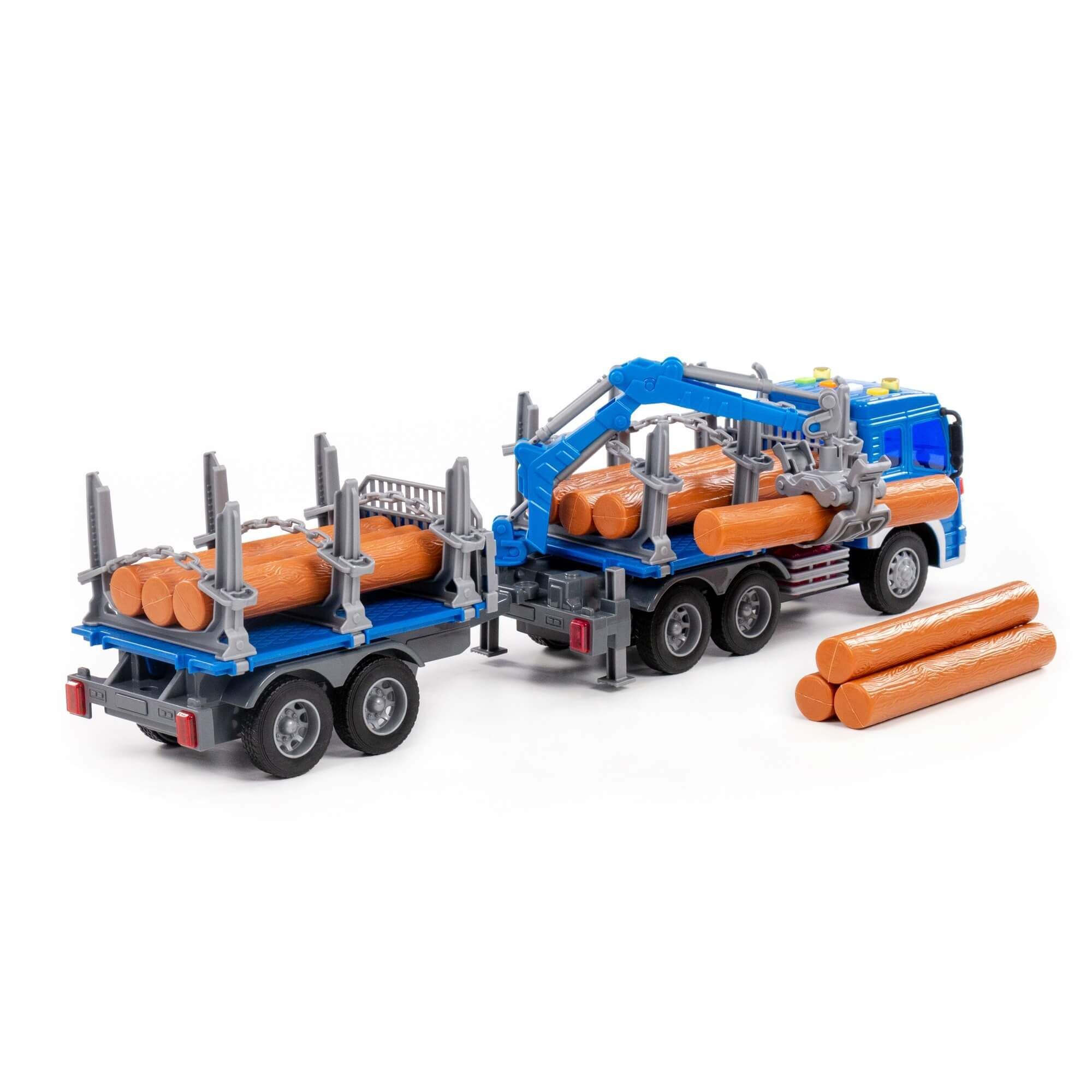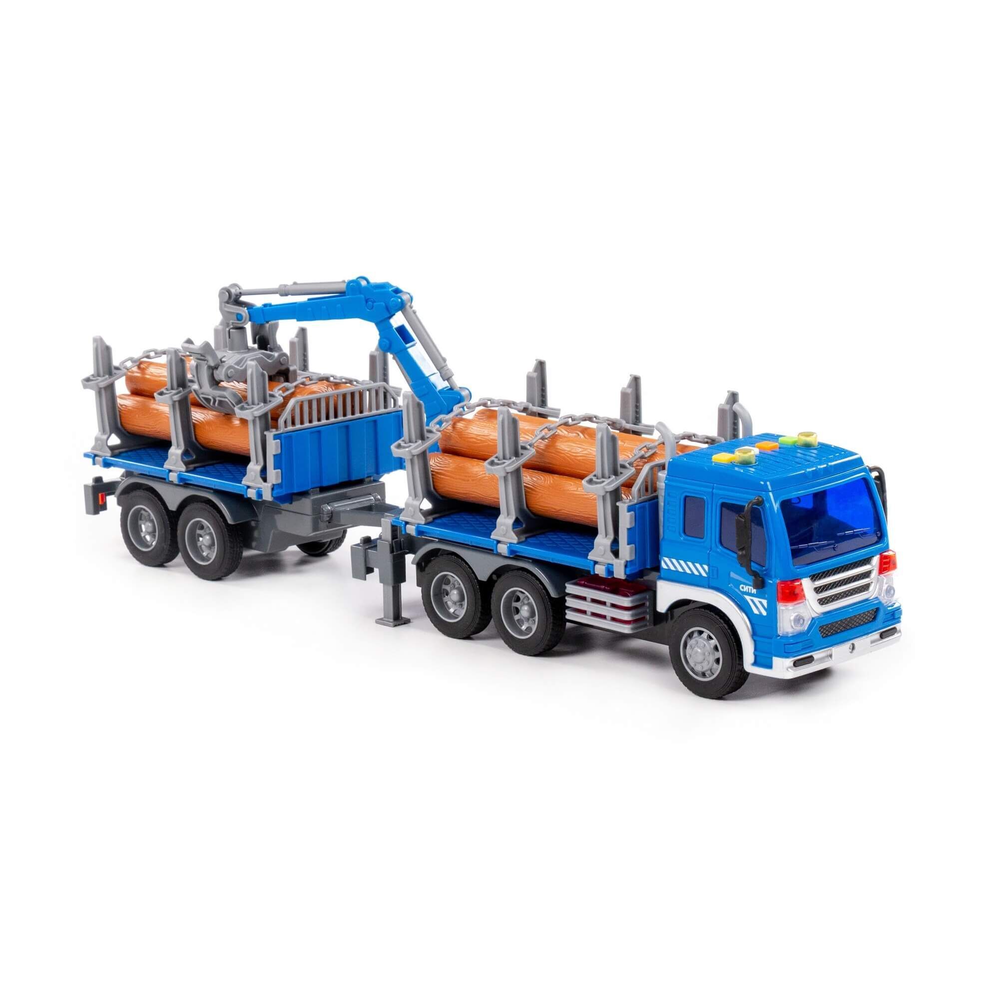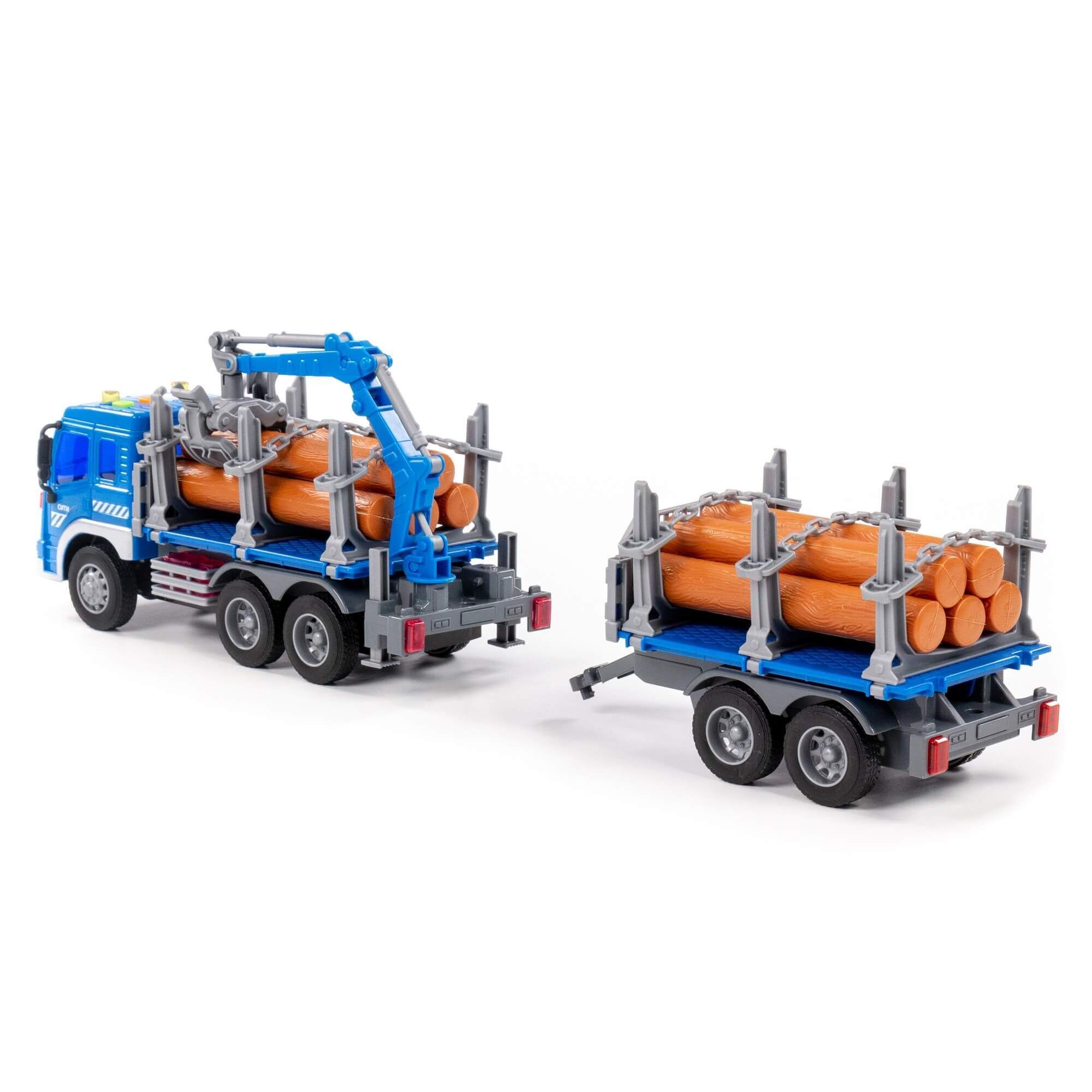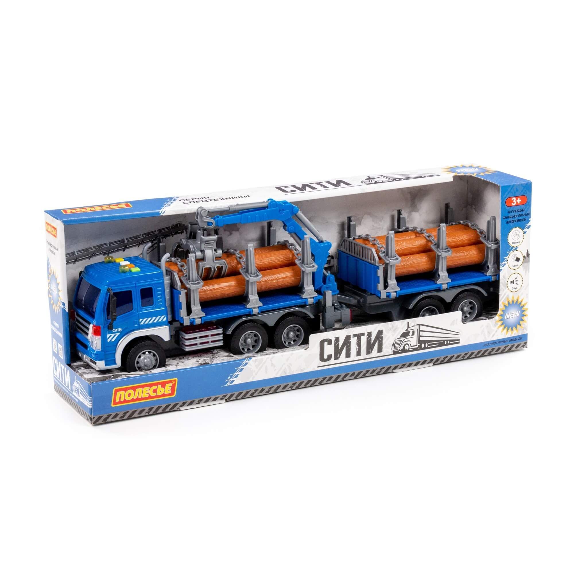 "Сити", автомобиль-лесовоз с прицепом инерционный (со светом и звуком) (синий) (в коробке)