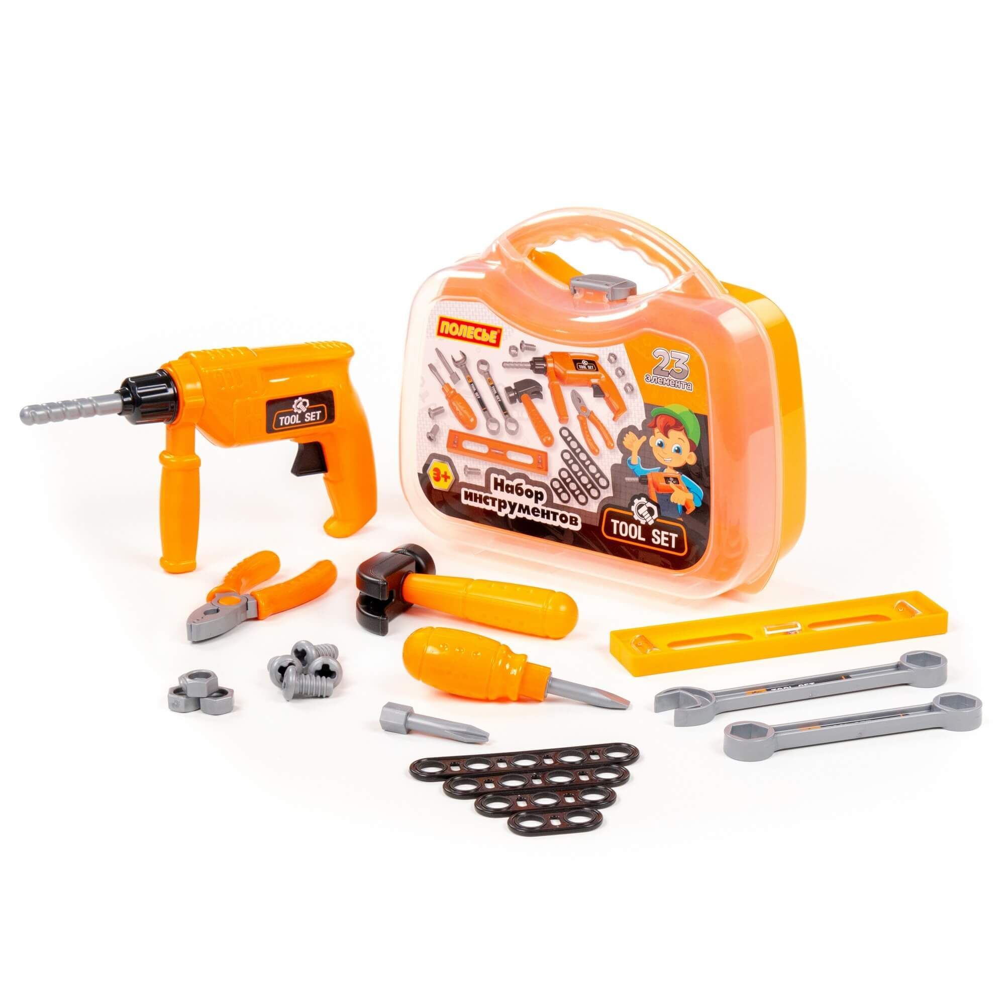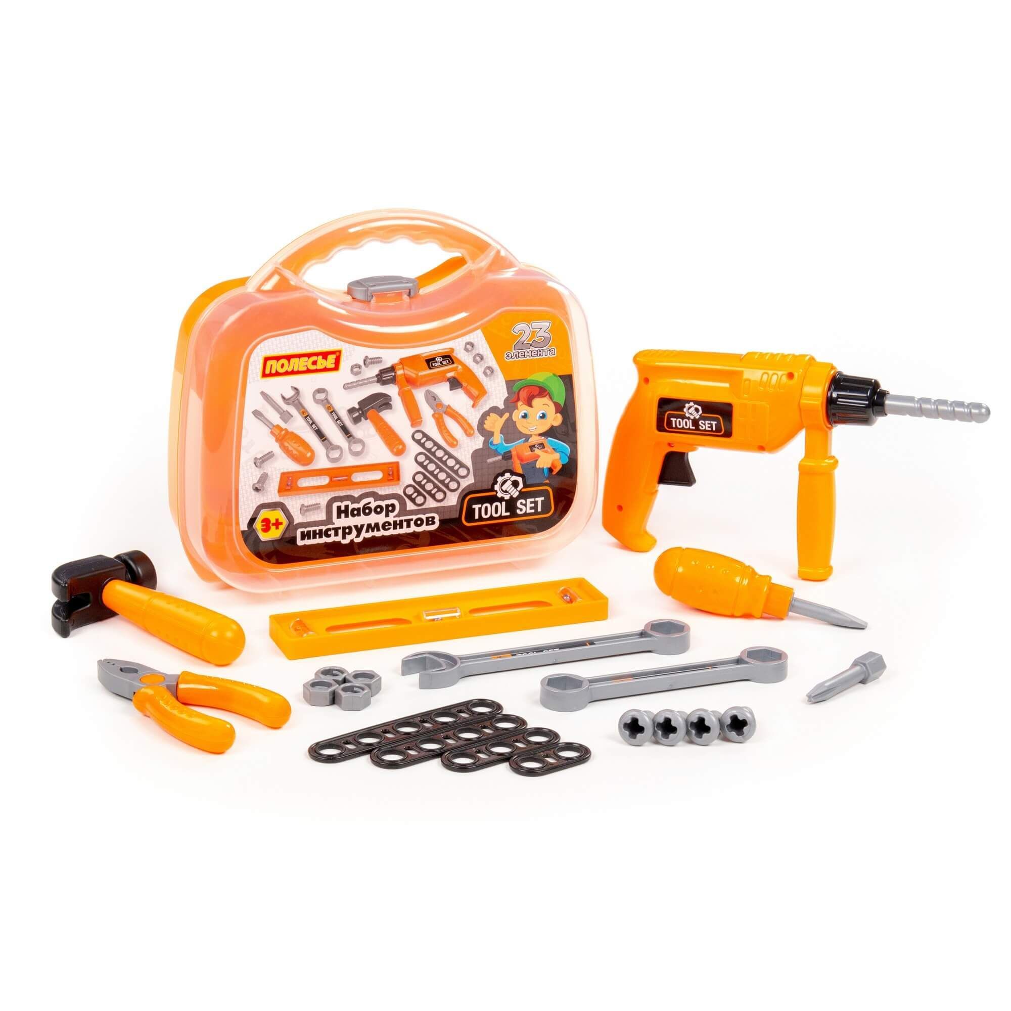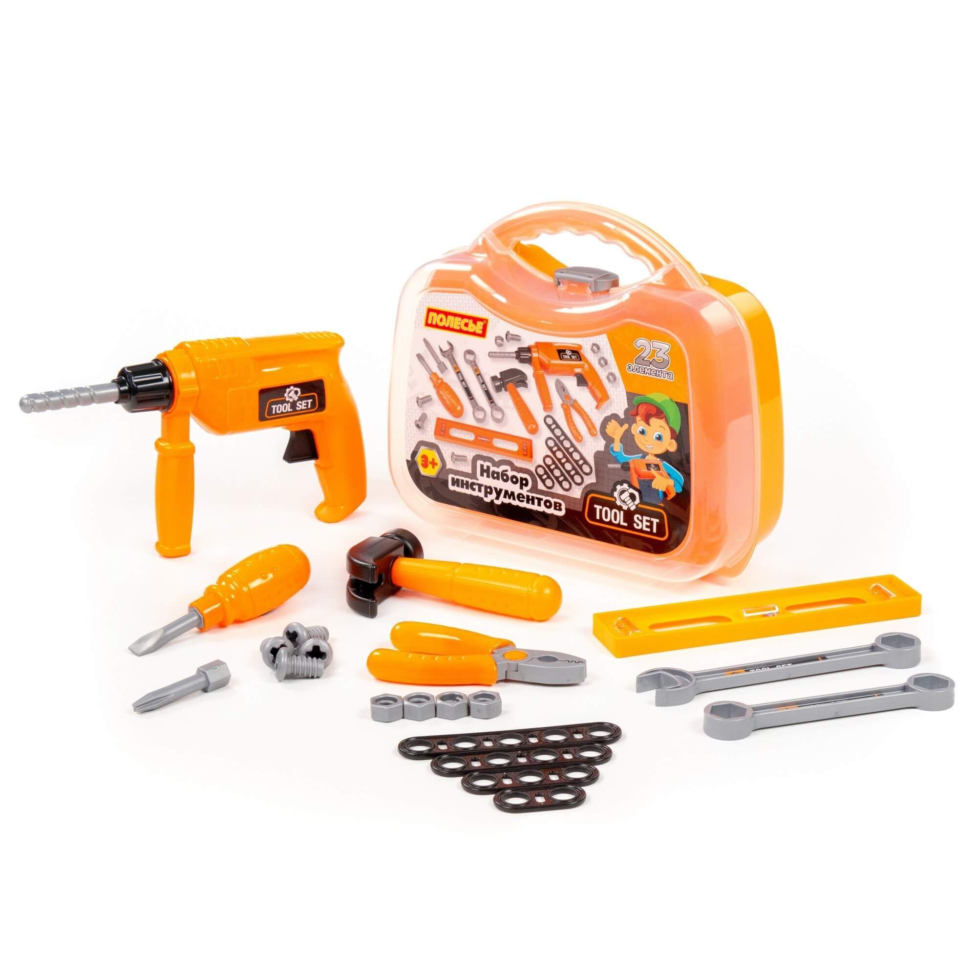 Набор инструментов № 35 помещен в удобный чемоданчик с ручкой. Среди инструментов юного строителя: