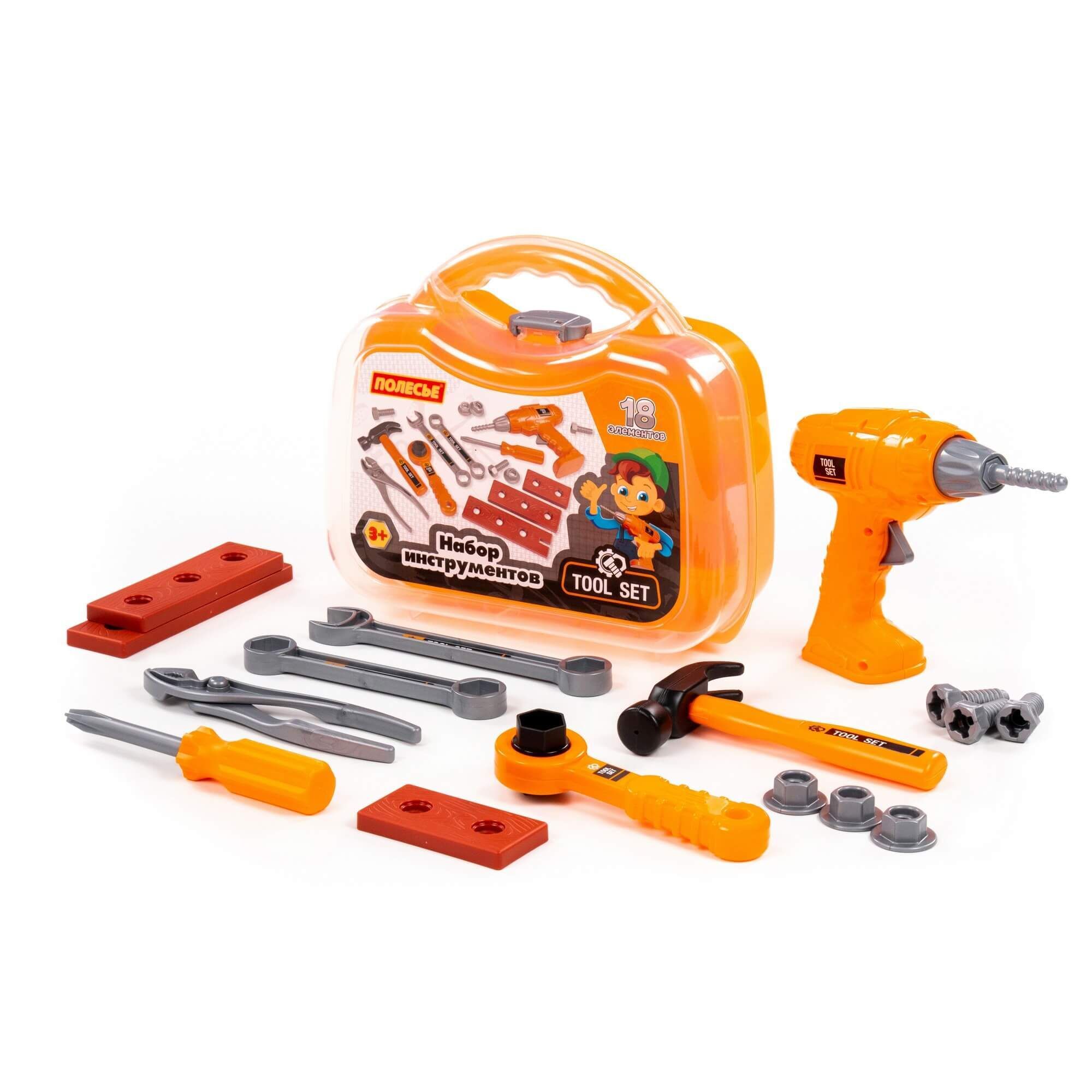 Набор инструментов № 36 помещен в удобный чемоданчик с ручкой. Среди инструментов юного строителя: