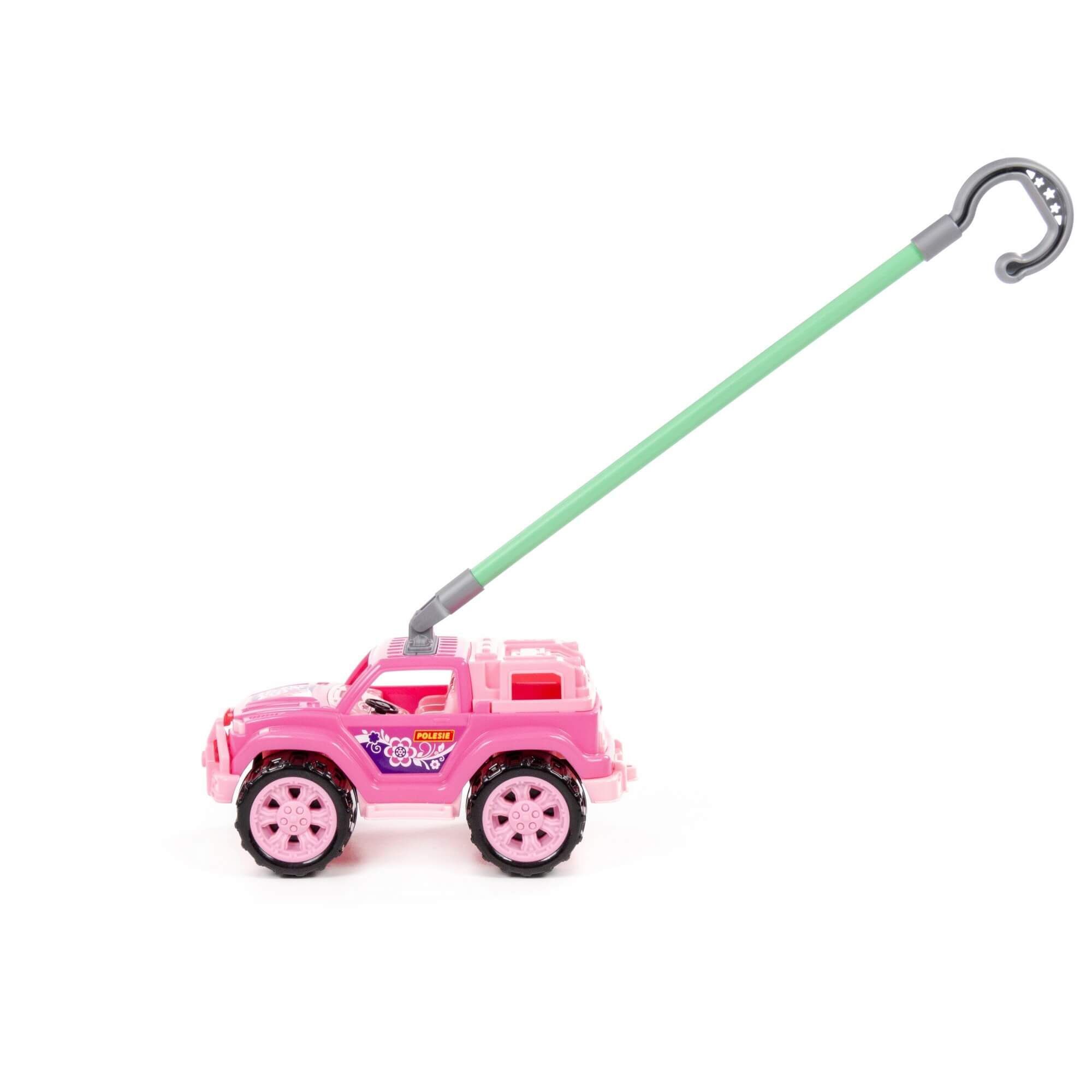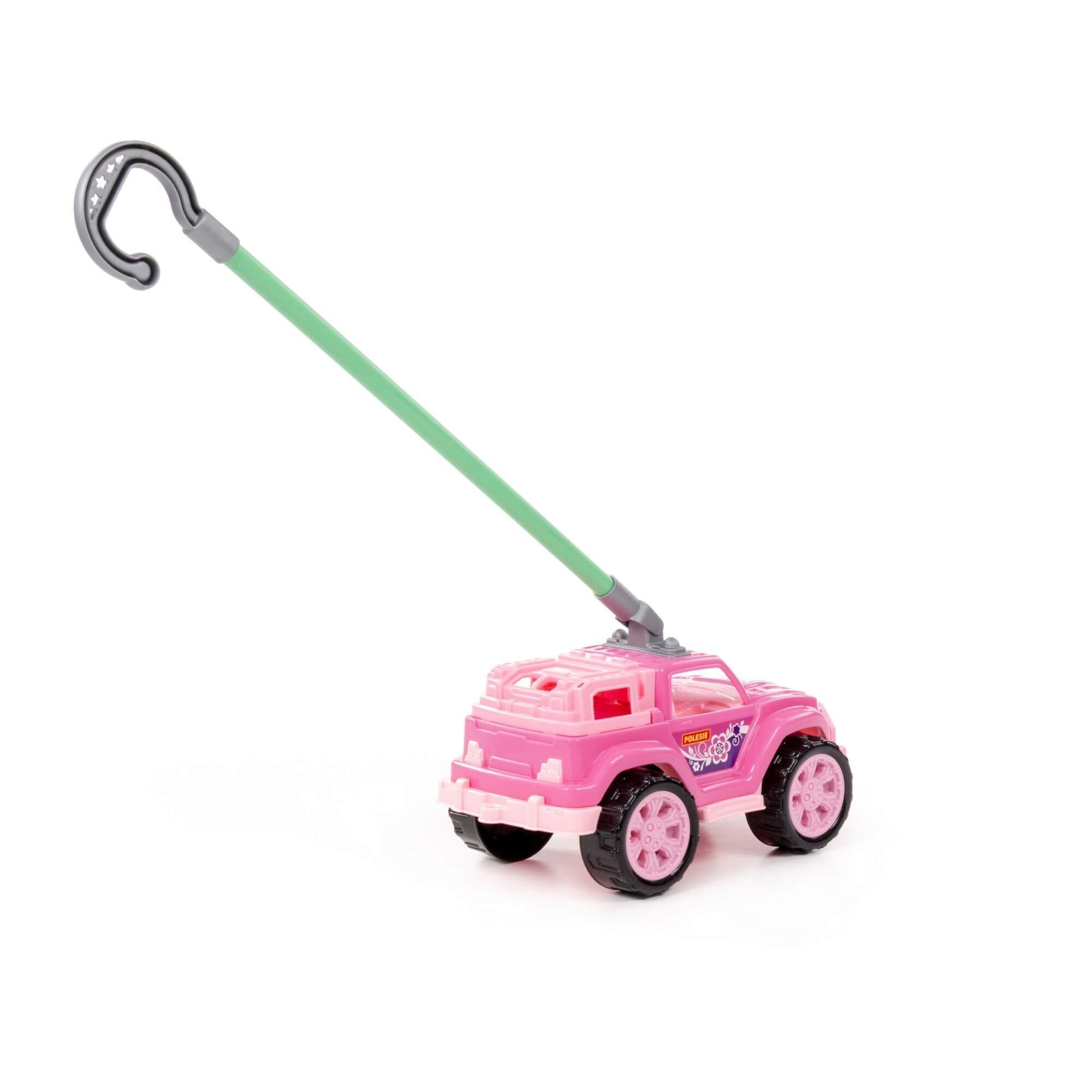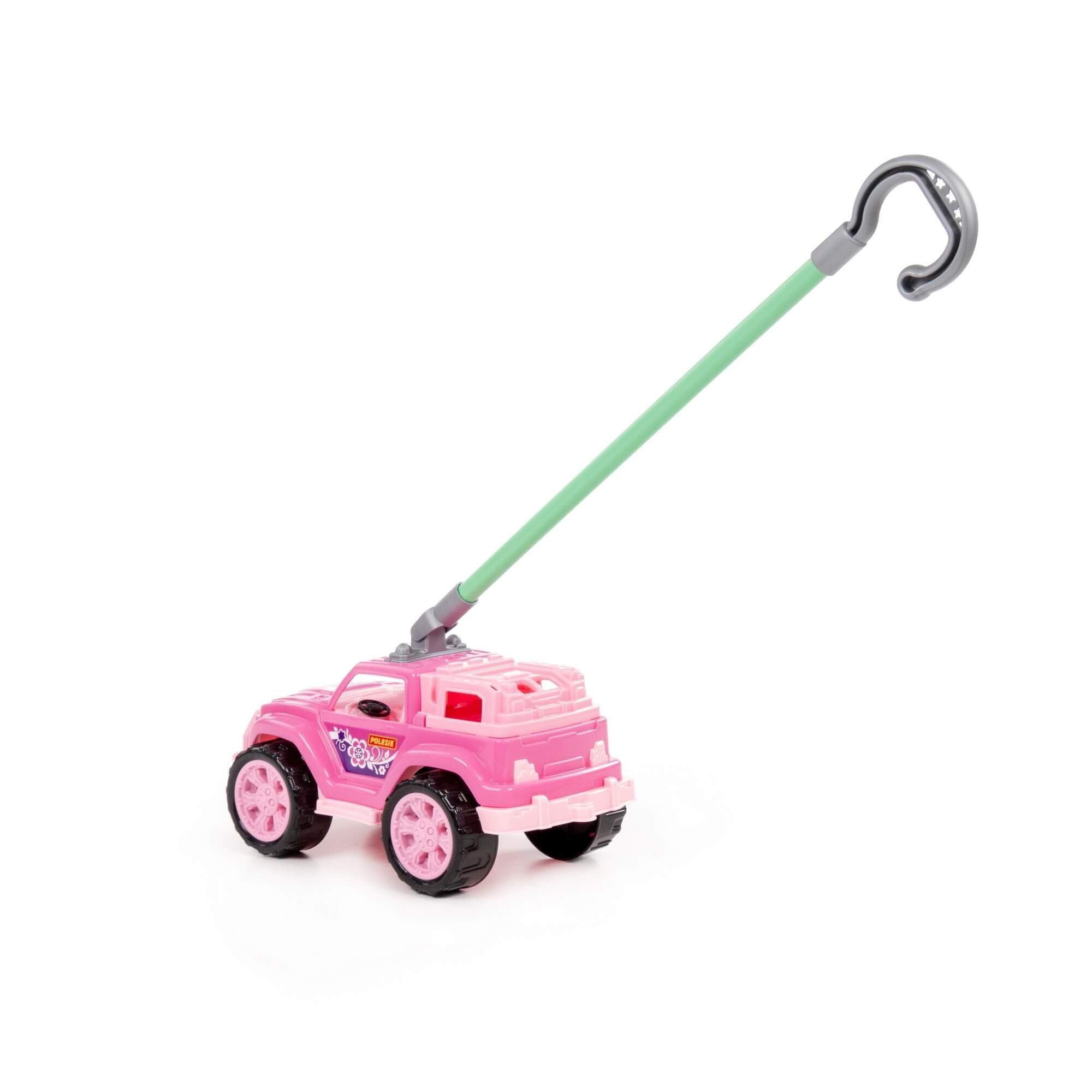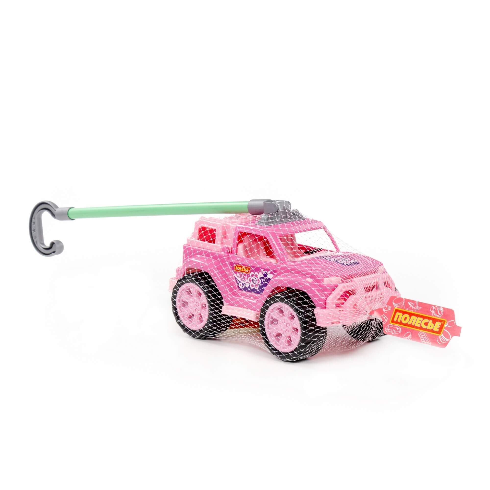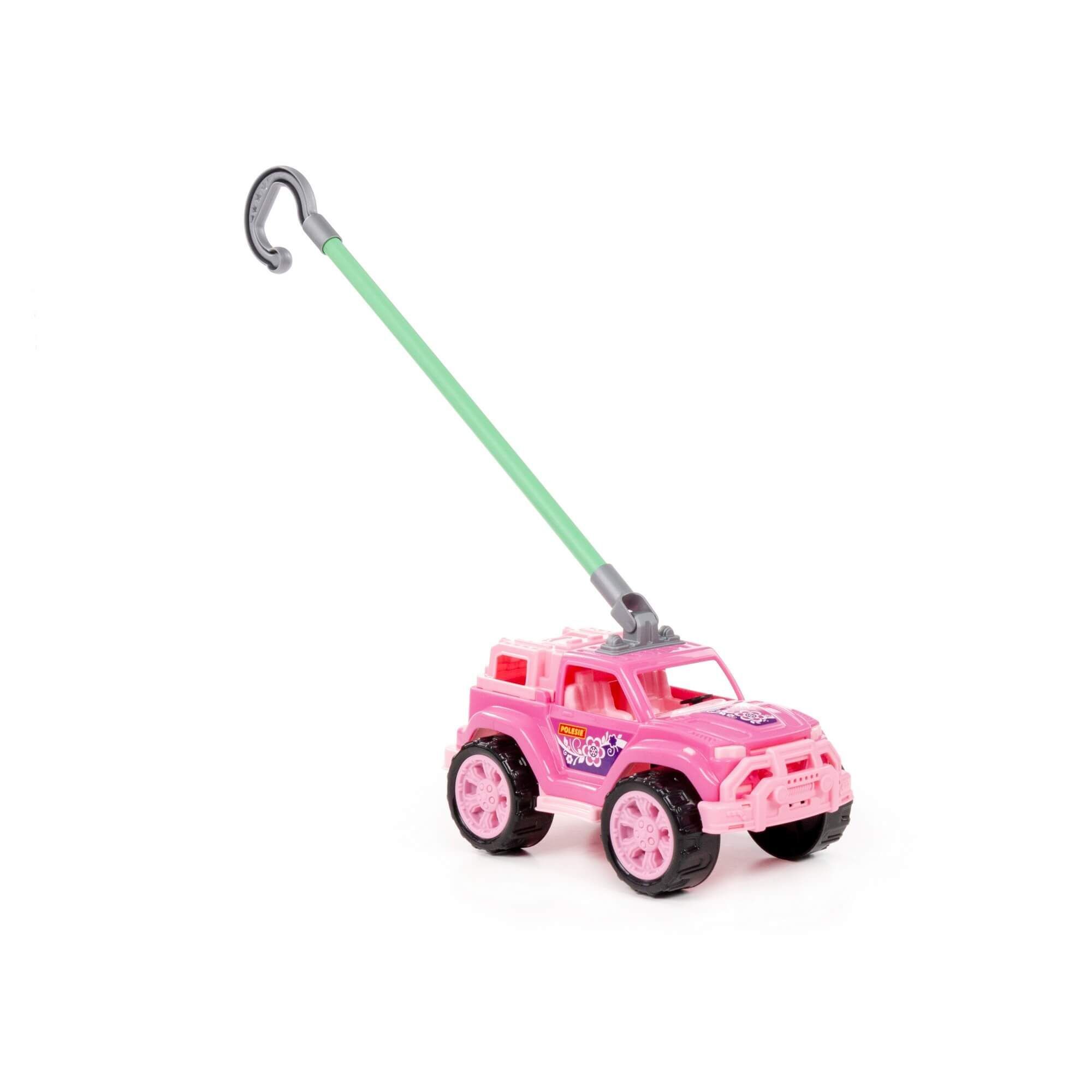Автомобиль-каталка «Легионер» с ручкой (розовый) – стильный джип для малышей. Удобная ручка позволяет везти машинку перед собой во время игры. Надёжные колёса повышают проходимость на различных поверхностях. Продаётся игрушка в сеточке.
