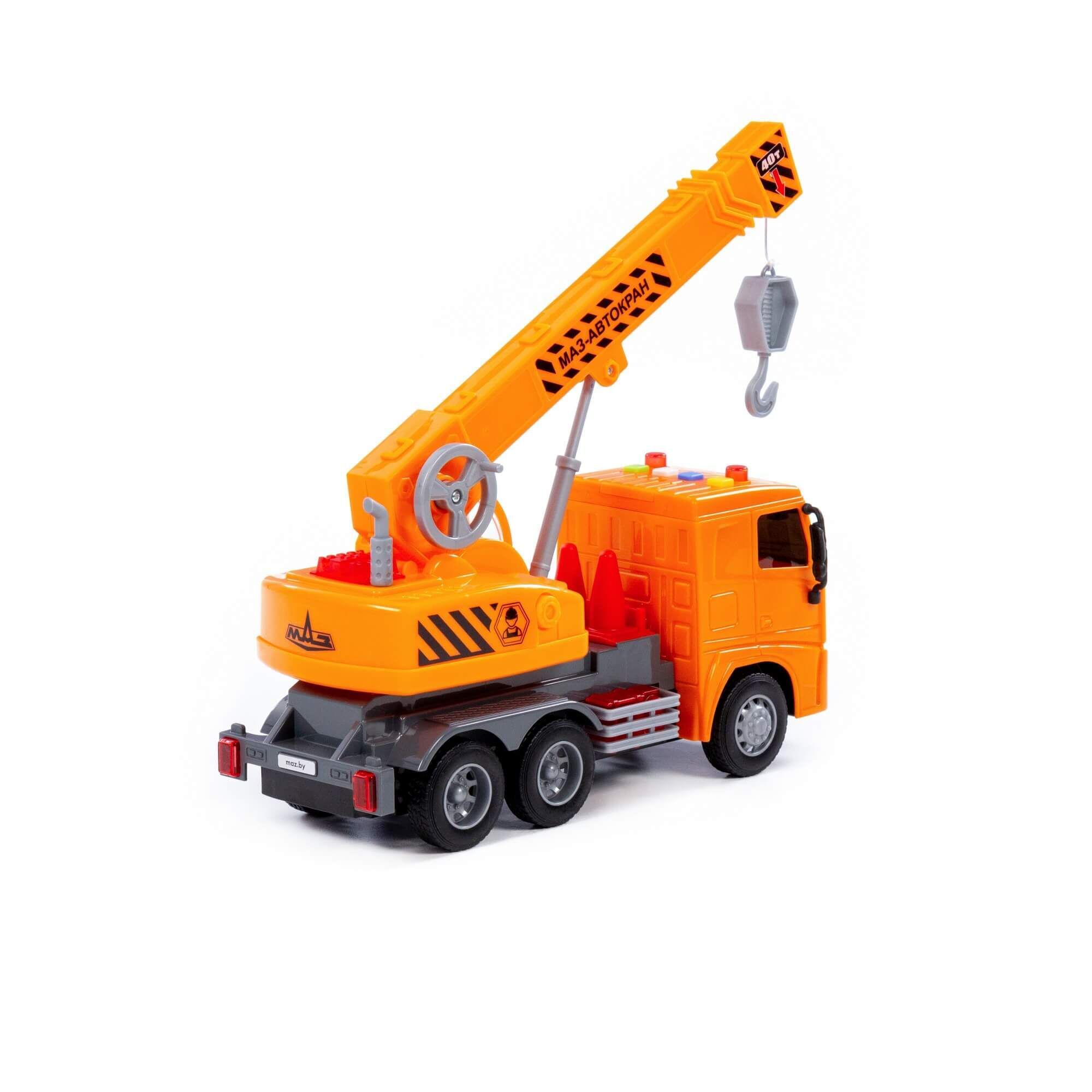 Автомобиль-кран создан для активных и любознательных малышей. Он имеет высокую детализацию и реалистичность. Игрушка оборудована инерционным механизмом, добавляющим в игру динамики. Подвижные элементы стрелы и поворотная платформа помогают вашему малышу развивать мелкую моторику. Колеса автомобиля-крана резиновые, что повышает проходимость на сложных участках дороги. Звуковые и cветовые эффекты позволяют погрузиться в мир фантазий, почувствовать себя настоящим водителем автокрана.
