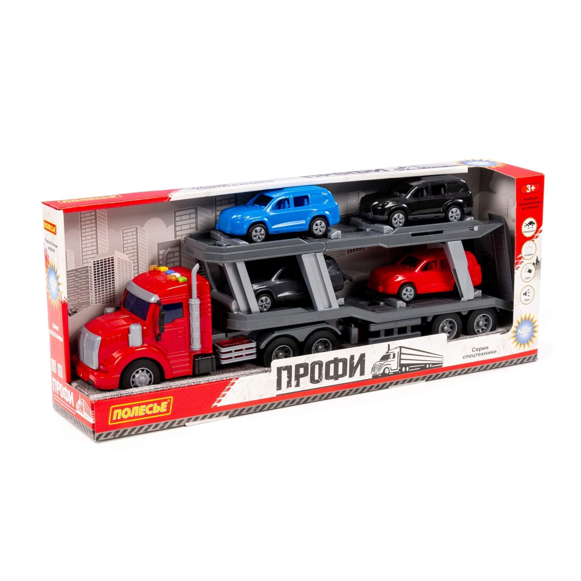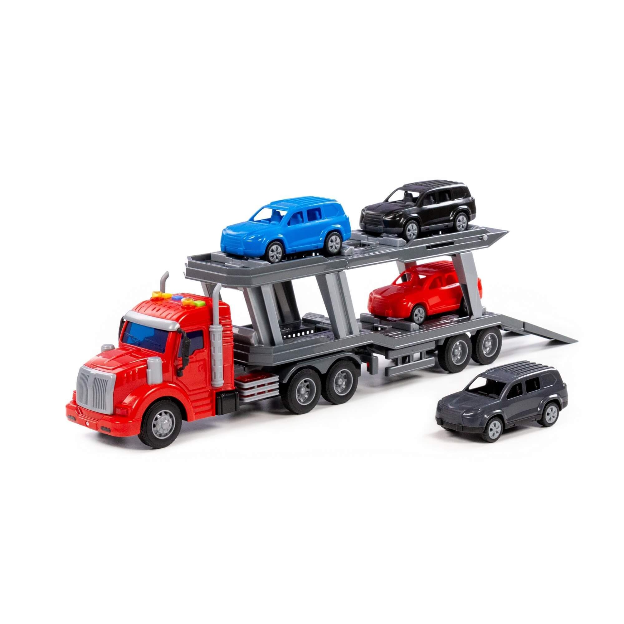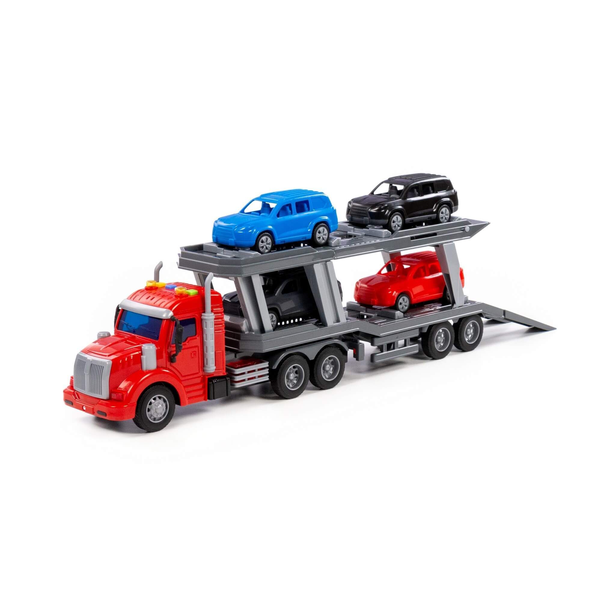 Автомобиль-тягач с полуприцепом от компании «Полесье» - необычная игрушка, которую хотел бы заполучить в свой автопарк любой мальчик. Машинка оснащена инерционным механизмом и сопровождает игру малыша световыми и звуковыми эффектами, благодаря чему ребенок проявляет еще большую заинтересованность в процессе игры, и легко придумывает все новые игровые сценарии. Платформа для автомобильной перевозки имеет удобную конструкцию, которая при необходимости меняет свое положение, для заезда игрушечных машинок. На платформе имеются упоры, предотвращающие откат автомобилей во время движения тягача. На платформе для перевозки размещается четыре ярких автомобиля. В процессе игры ребенок приобретает интерес к различным видам техники, развивает мелкую моторику, ловкость, внимание и фантазию.