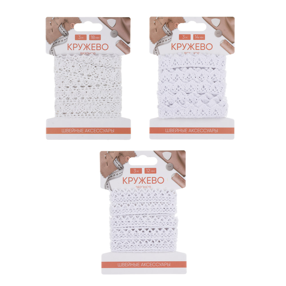 Вязаное кружево легко спутать с hand-made – рисунок у него сложный и выразительный. Узоры, созданные из переплетения множества нитей, принимают нужную форму и красиво смотрятся на любом изделии. Вязаное кружево — отличный вариант для декора одежды и домашнего текстиля. А также если хотите дополнить аксессуар деталью, будто связанной крючком, такой вариант отлично подойдёт. Размер: длина 3 м, ширина в ассортименте 12 мм, 14 мм, 18 мм