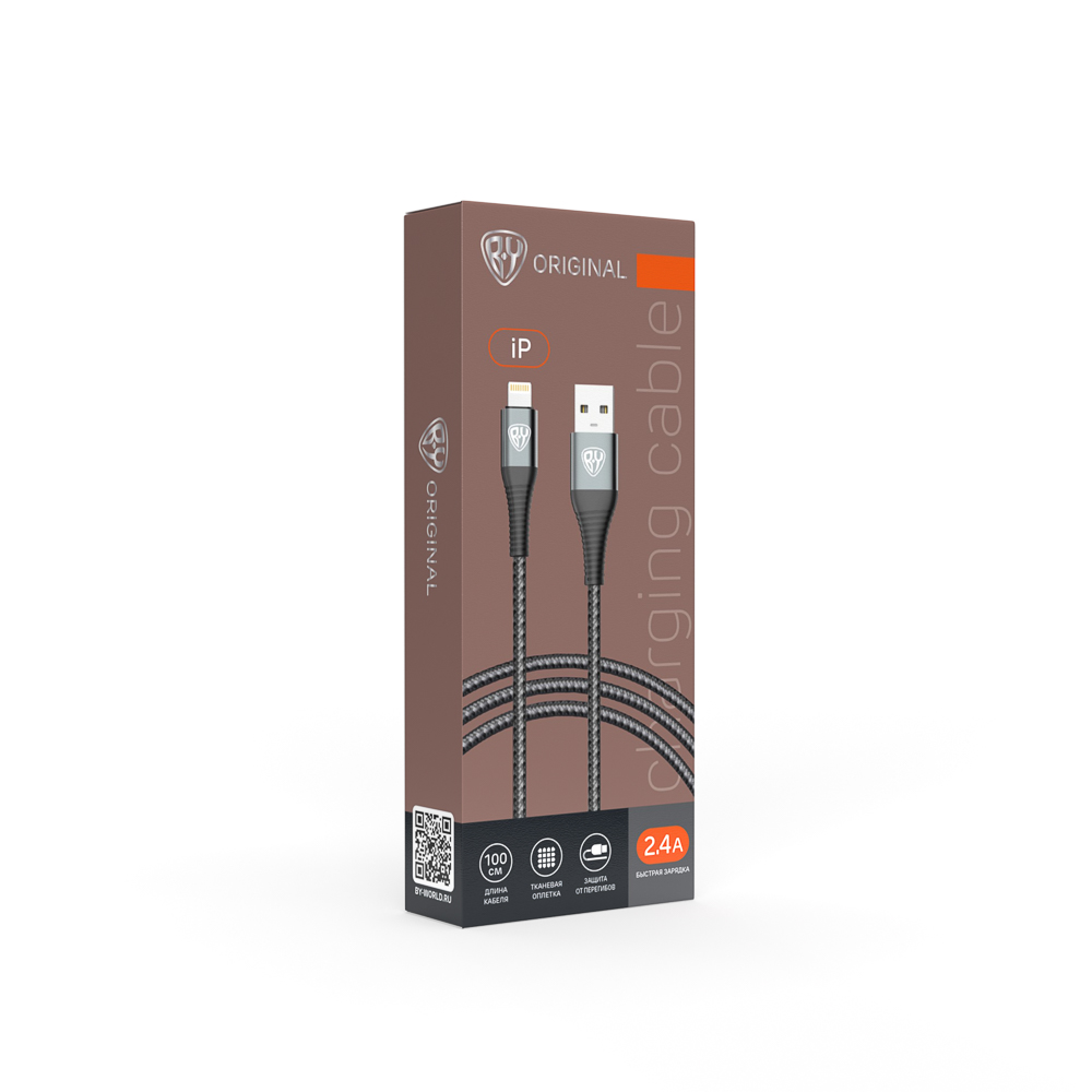 Кабель для зарядки серого цвета BY «Shark» iP с быстрой зарядкой 2,4 А предназначен для зарядки современных мобильных устройств и портативных гаджетов с соответствующим типом гнезда. Аксессуар имеет качественный прочный металлический штекер и плотную тканевую оплетку, которая защищает провод от перегибов и истирания. Благодаря компактному размеру кабель можно носить с собой и брать в поездки. Длина изделия – 1 метр.