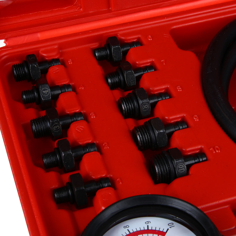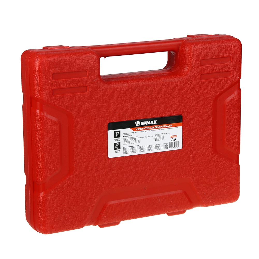 Измеритель давления масла ЕРМАК – это комплект из 12 предметов применяется для контроля давления масла в двигателях систем внутреннего сгорания автомобилей. Содержит манометр, а также набор резьбовых адаптеров разных размеров, поэтому подходит для автомобилей разных марок с соответствующими размерами резьбовых соединений. Измеритель надежный и высокоточный. Для хранения и транспортировки предусмотрен прочный пластиковый кейс.Адаптер: R1/8 DIN 2999, 1/8x27NPT, 1/4x18NPT, 3/8x20UNF, 1/2x20UNF, M10x1.0, M12x1.5, M14x1.5, M16x1.5, M18x1.5