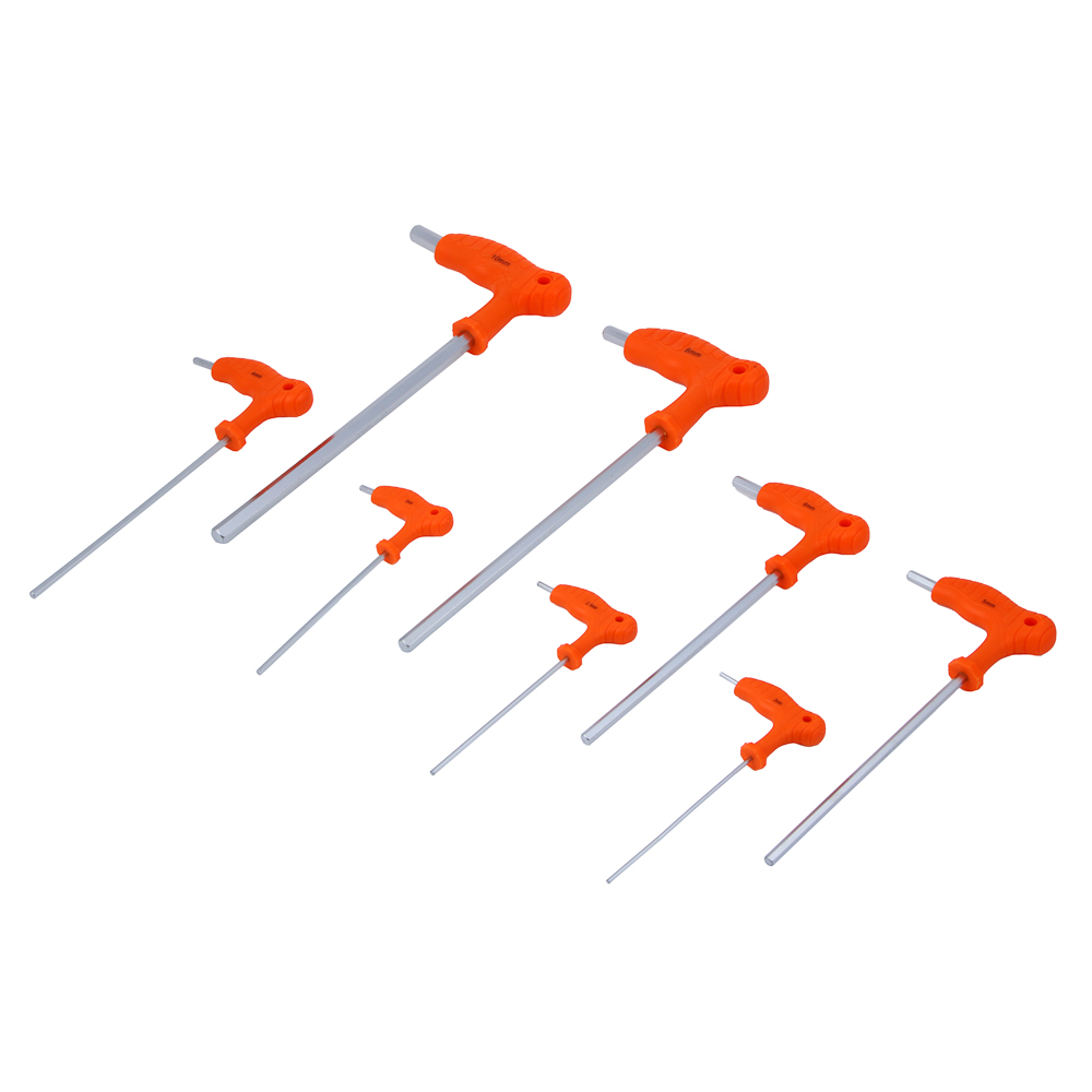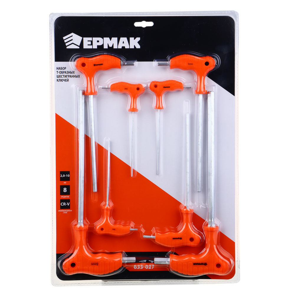 Набор Т-образных шестигранных ключей ЕРМАК 2-10 мм – это комплект из 8 предметов, предназначенных для работ с винтовыми соединениями и болтами, имеющими внутреннюю шлицу. Двухсторонние ключи имеют удобную пластиковую рукоять и подходят для работ в тесных условиях. Инструментальная хромванадиевая сталь устойчива к деформации, не крошится и не изнашивается с течением времени. Набор включает наиболее популярные размеры для большинства бытовых задач.