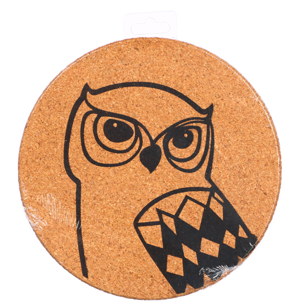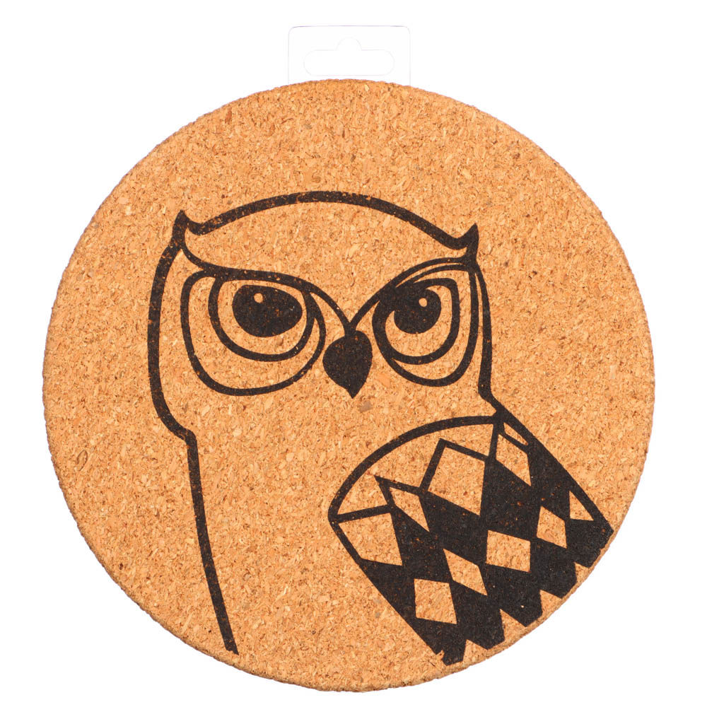 Круглая подставка под горячее "Сова" диаметром 15 см незаменима на кухне. Раскалённая сковорода, посуда для запекания любой формы, горячая кастрюля или чайник — красивая сервировка стола с участием горячей кухонной посуды обязательно потребует специальной подставки под горячее. Изделие защитит поверхность стола от нежелательного воздействия высокой температуры. Аксессуар добавит порядка, уюта и удобства как на кухне, так и в гостиной. Изделие изготовлено из натурального пробкового дерева, отличающегося устойчивостью к высоким температурам, легкостью и износостойкостью.