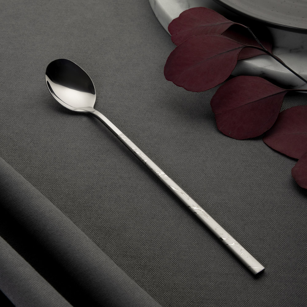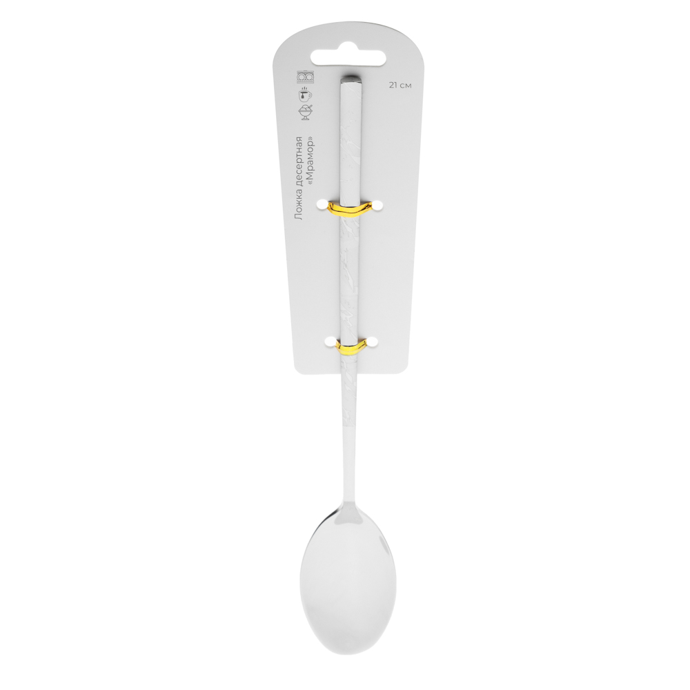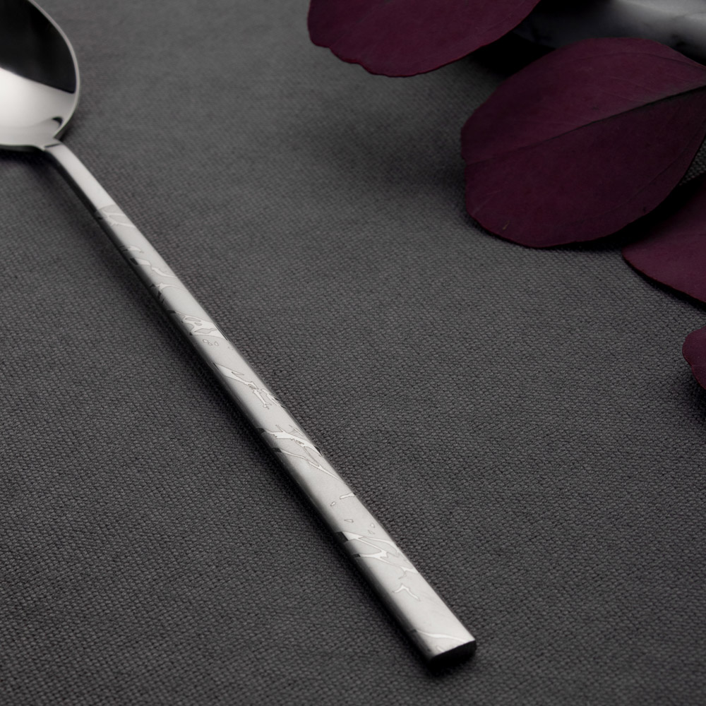 Оригинальная десертная ложка с удлиненной ручкой "Мрамор", 21см, станет достойным украшением домашнего обеда и подчеркнет безупречный стиль любого заведения. Отличительная черта столового прибора — изысканная простота. Десертная ложка из нержавеющей стали не боится температурных перепадов, сильного нагрева, взаимодействия с кислыми блюдами. Изделие не темнеет, не деформируется и радует хозяйку безупречным видом долгие десятилетия.