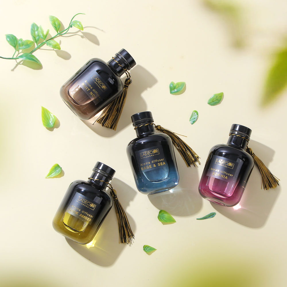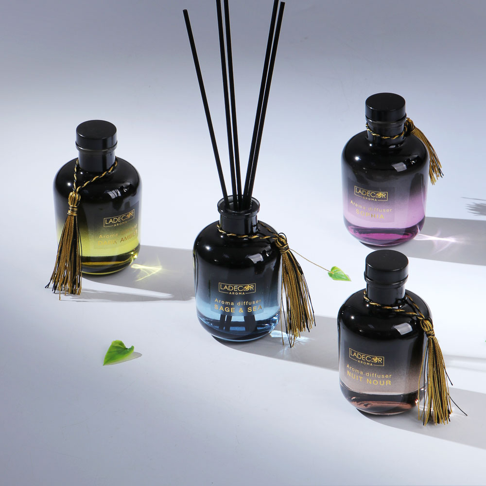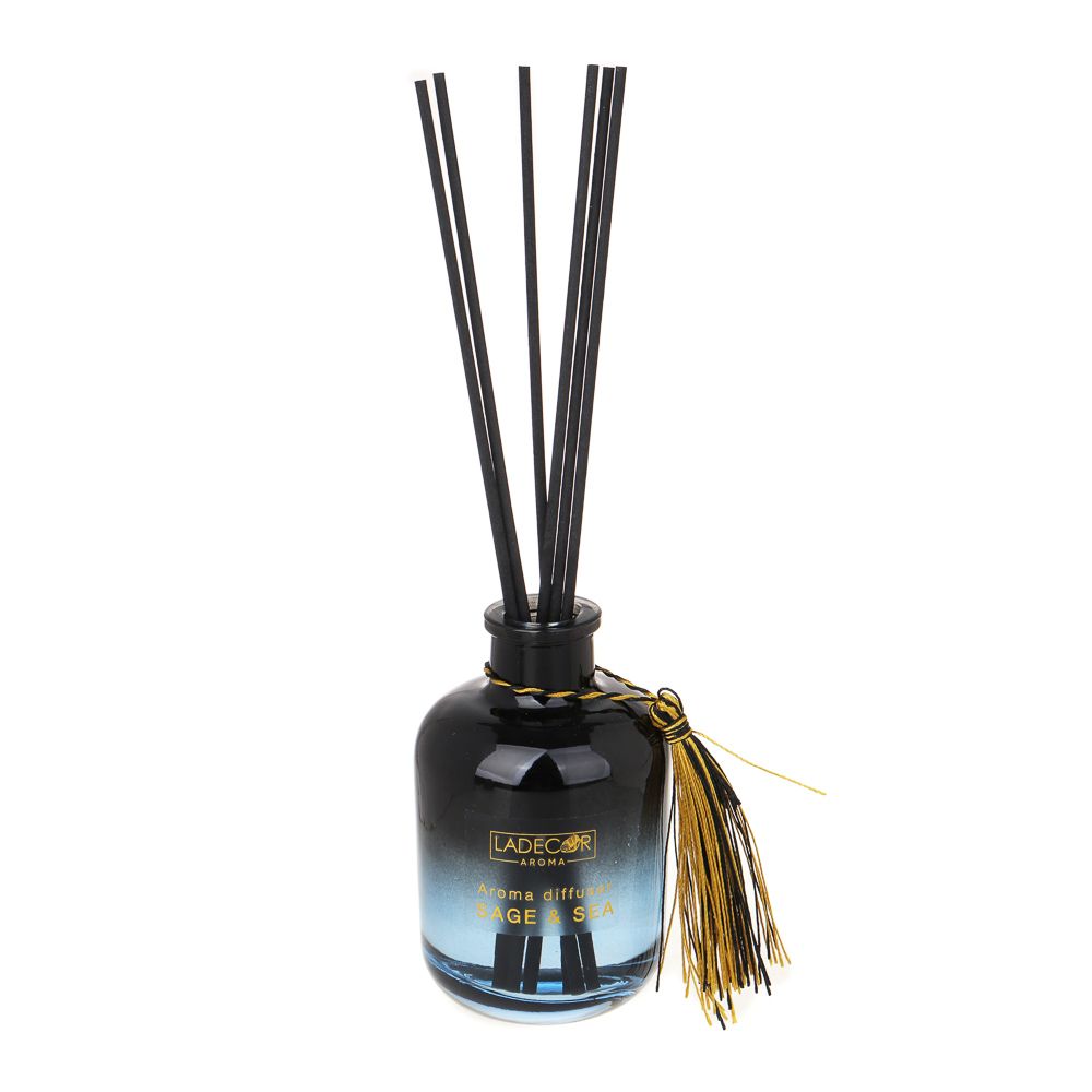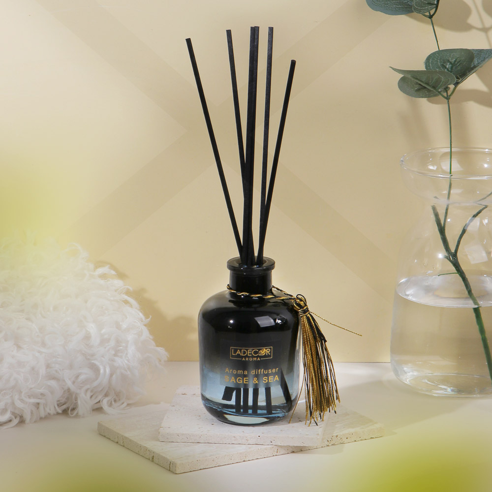 Аромадиффузор с палочками LADECOR объемом 150 мл – это эстетичный интерьерный декор, а также набор для домашней ароматерапии. Ароматическая композиция наполнит пространство неповторимым благоуханием, подарит ощущение легкости и расслабления, а также эффективно замаскирует нежелательные запахи в помещении. Станет приятным сопровождением романтического вечера. Лаконичный флакон с декоративным содержимым будет гармонично смотреться в интерьере спальни или гостиной. Доступны ароматы: Dark amber, Nuit Nour, Sage&Sea, Sophia.