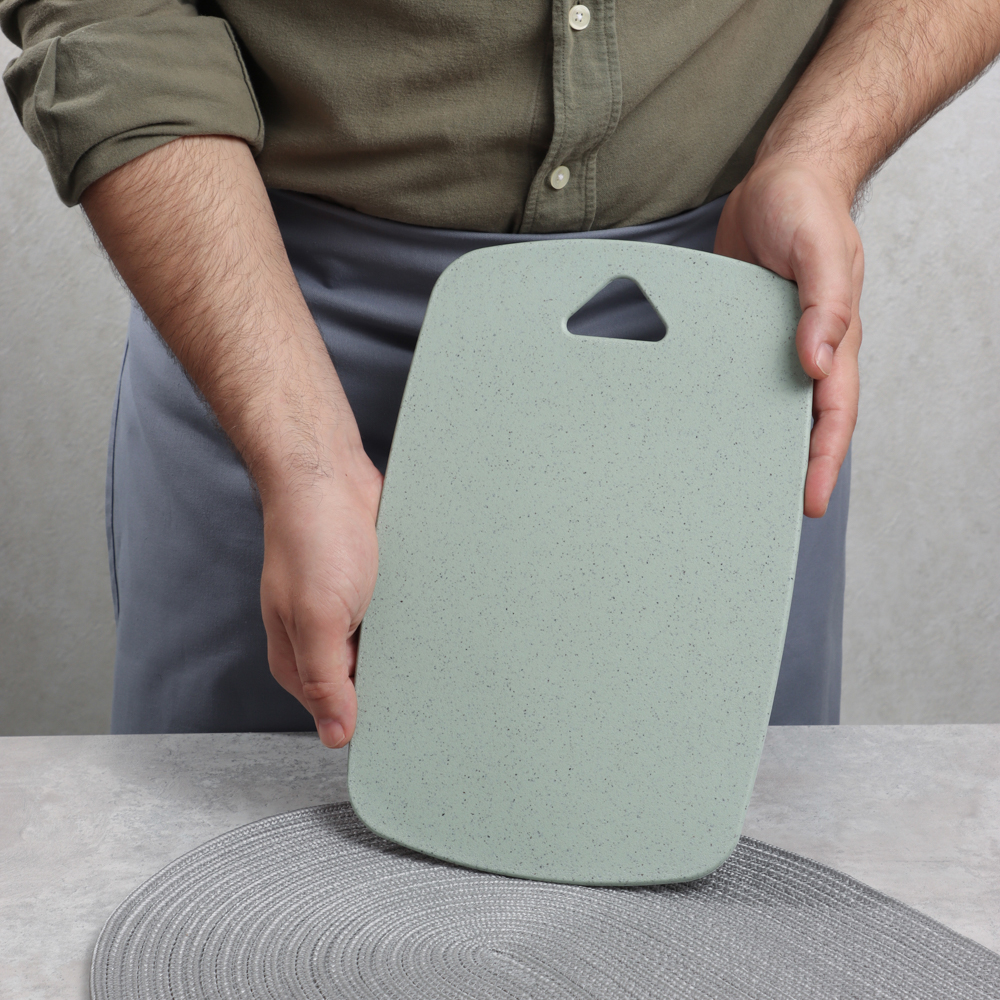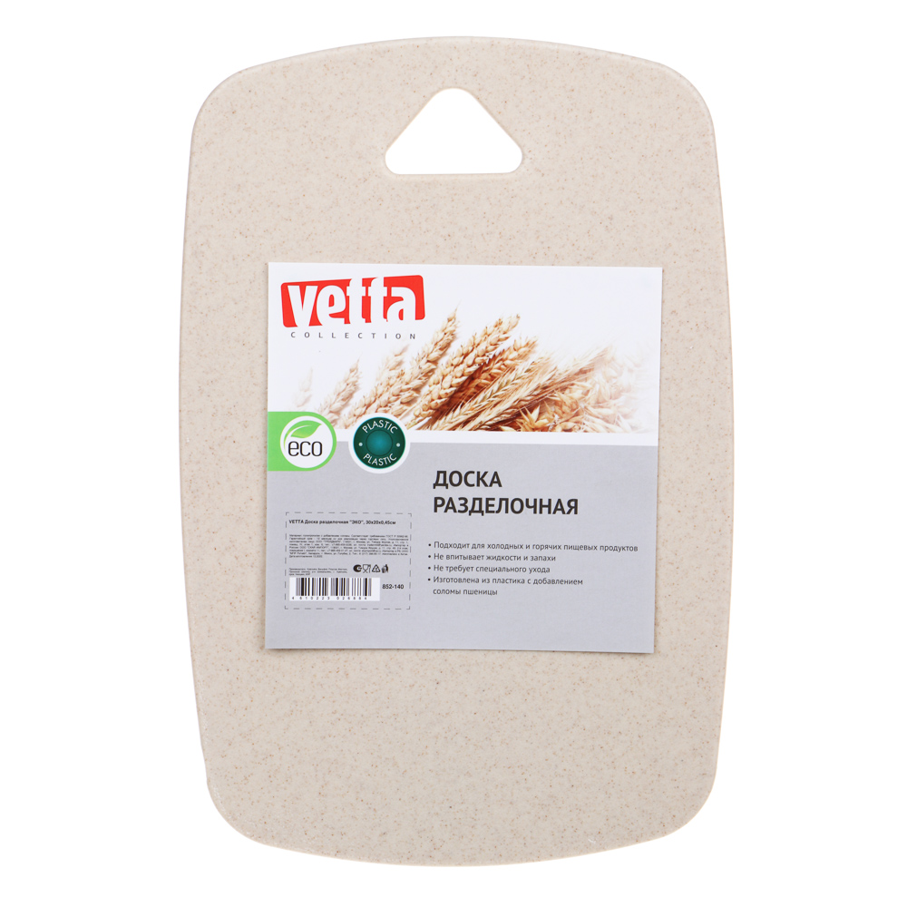 Пластиковая разделочная доска Vetta Эко готова выполнять любые кулинарные задания. Шинковка, нарезка, очистка — на разделочной доске из пластика можно делать все и даже больше! Собрались ли вы порезать рыбу или разделать птицу, этот аксессуар всегда придет на выручку. Пластиковая поверхность не хранит ароматы продуктов, не впитывает сок фруктов и не окрашивается в их цвета. Размер 30x20х0,45 см. Изделие можно подвесить на крючок.Используйте несколько разделочных досок для разного вида пищи. Это препятствует распространению бактерий сырых продуктов.