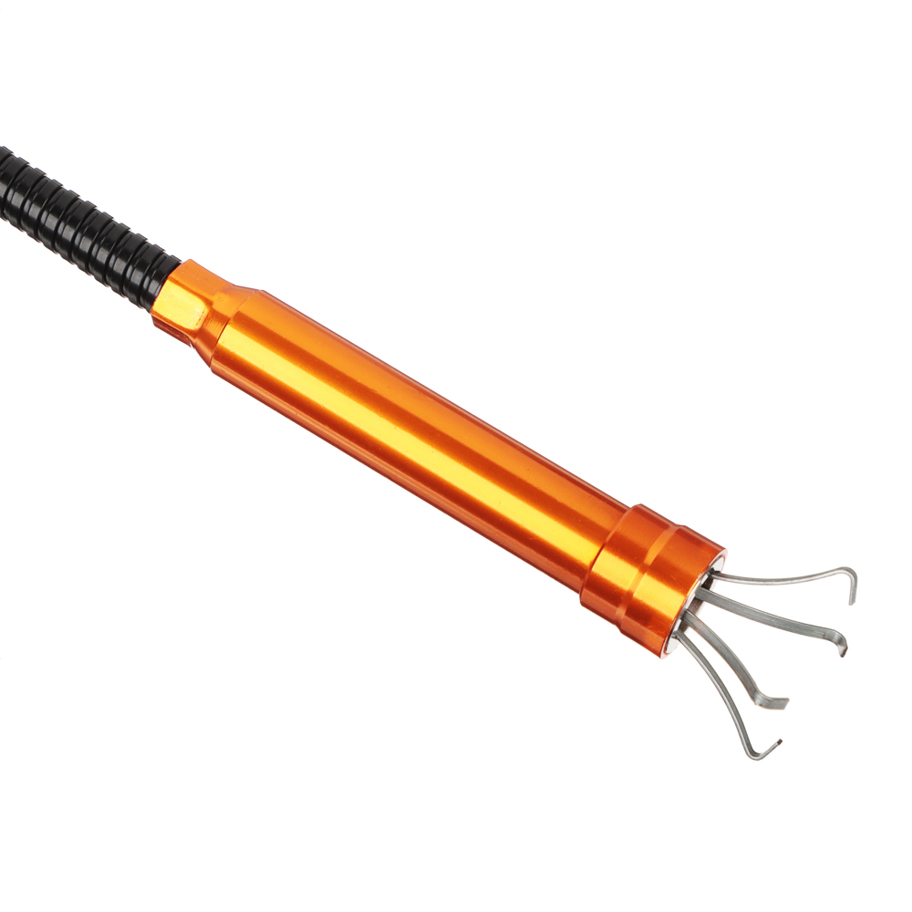 Гибкий захват 600 мм, с подсветкой и магнитом представляет собой вспомогательный инструмент для захвата и удержания инструмента, крепежа, деталей в труднодоступных местах. Захват оснащен 4 лапками и магнитом. Лапки выдвигаются при помощи кнопки у основания. Яркая подсветка облегчает процесс эксплуатации.