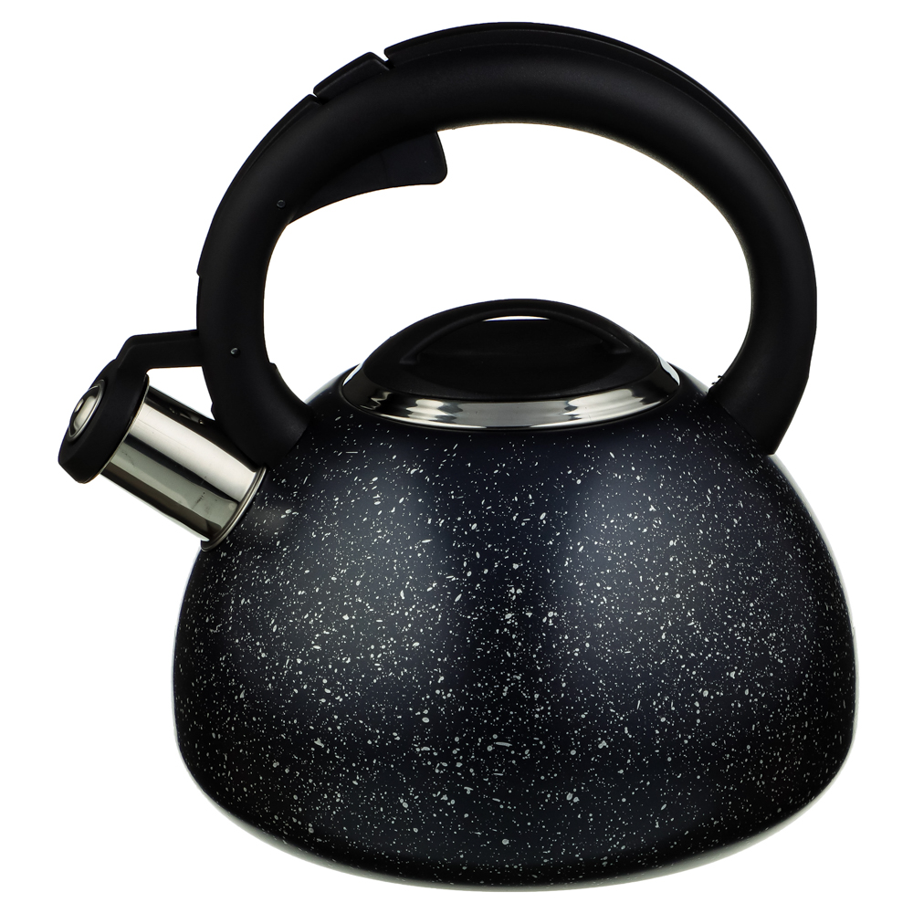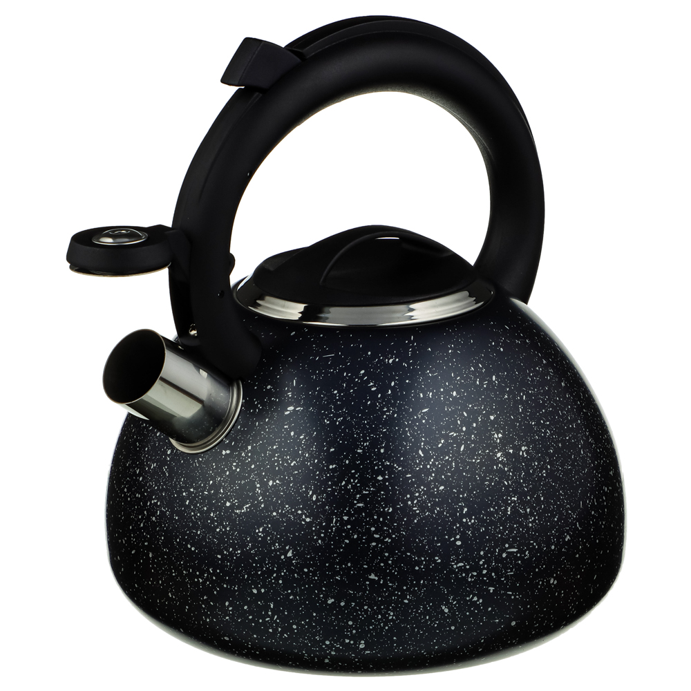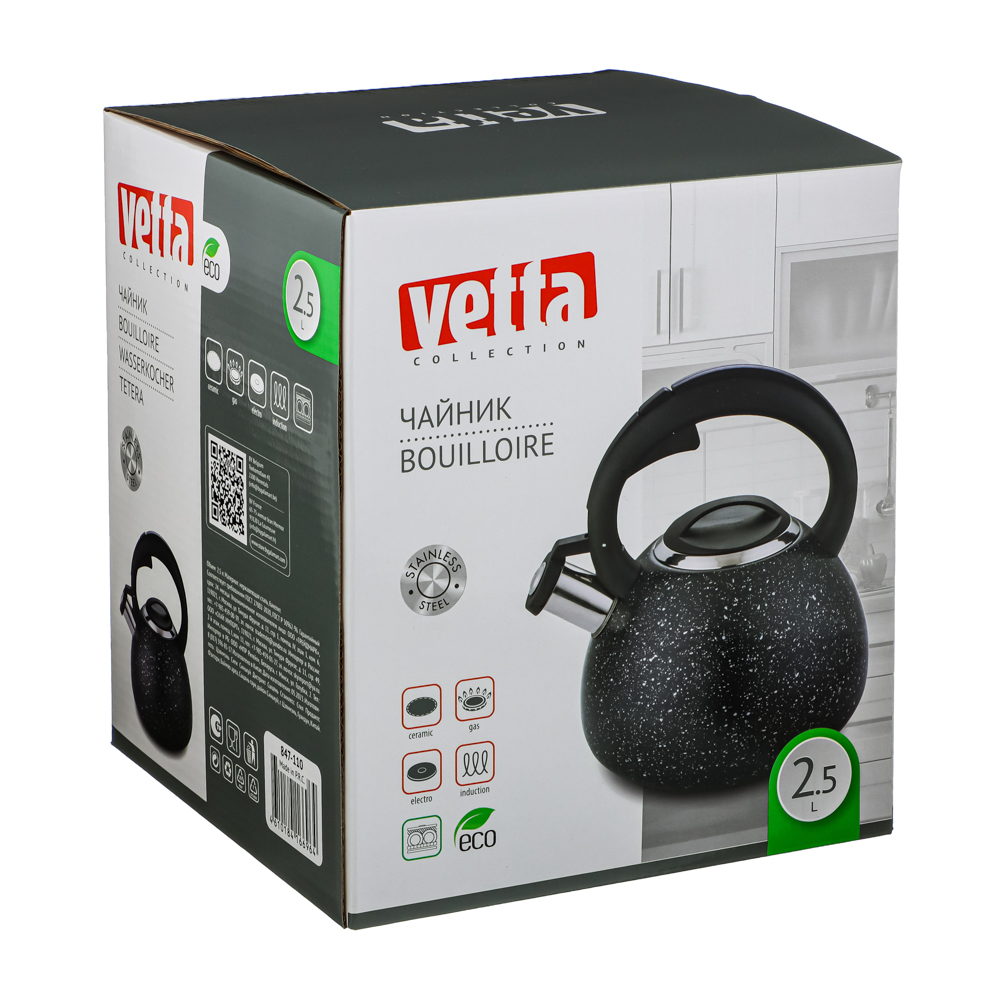Чайник "Гаро" от VETTA объемом 2,5 л - отличный помощник на вашей кухне! Это качественный и стильный чайник, который отлично подойдет для приготовления горячих напитков в домашних условиях. Чайник выполнен из нержавеющей стали, которая обеспечивает его долговечность и надежность использования. Дизайн чайника очень эффектный, благодаря чему он станет ярким элементом интерьера кухни. Важно отметить, что чайник VETTA оснащен индукционным дном, что позволяет быстро и равномерно нагревать воду, а также экономить время и энергию. Это делает его идеальным выбором для тех, кто ценит комфорт и практичность в использовании кухонной утвари.Преимущества:• материал - нержавеющая сталь;• есть кнопка для открывания свистка на ручке для безопасного использования;• эргономичная ручка с силиконовым напылением, не скользит;• подходит для всех типов плит, включая индукционные.