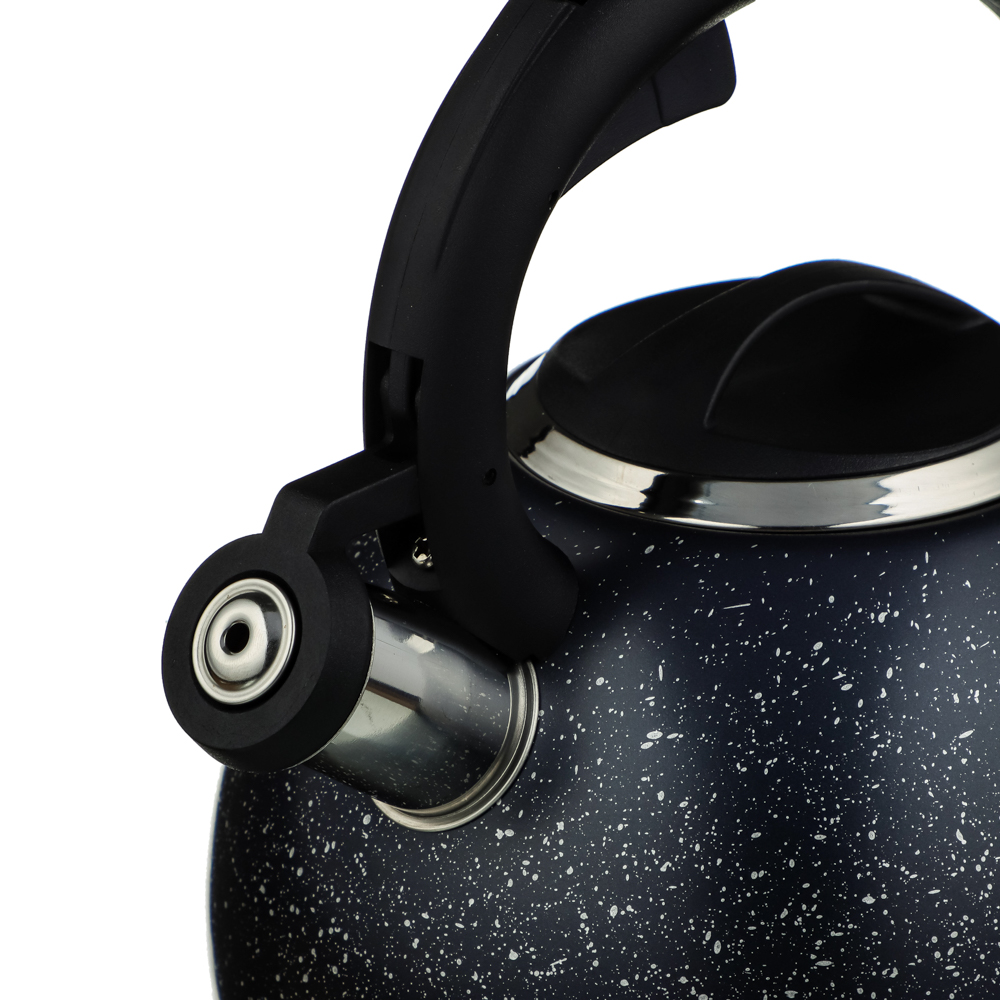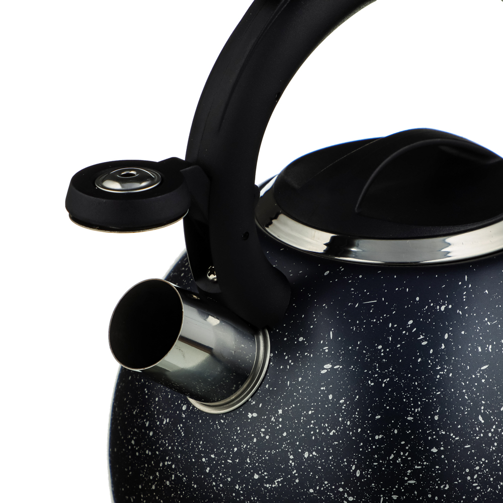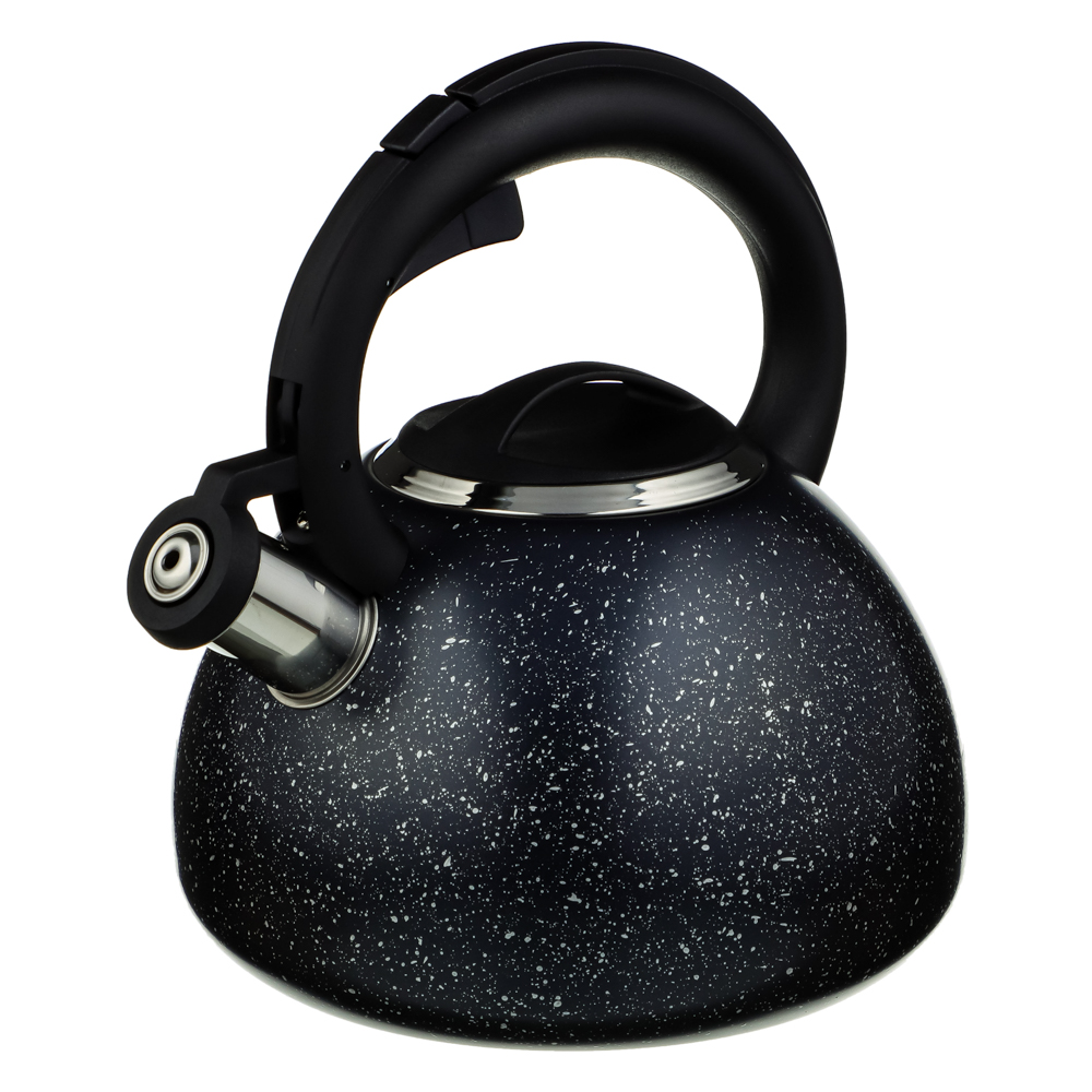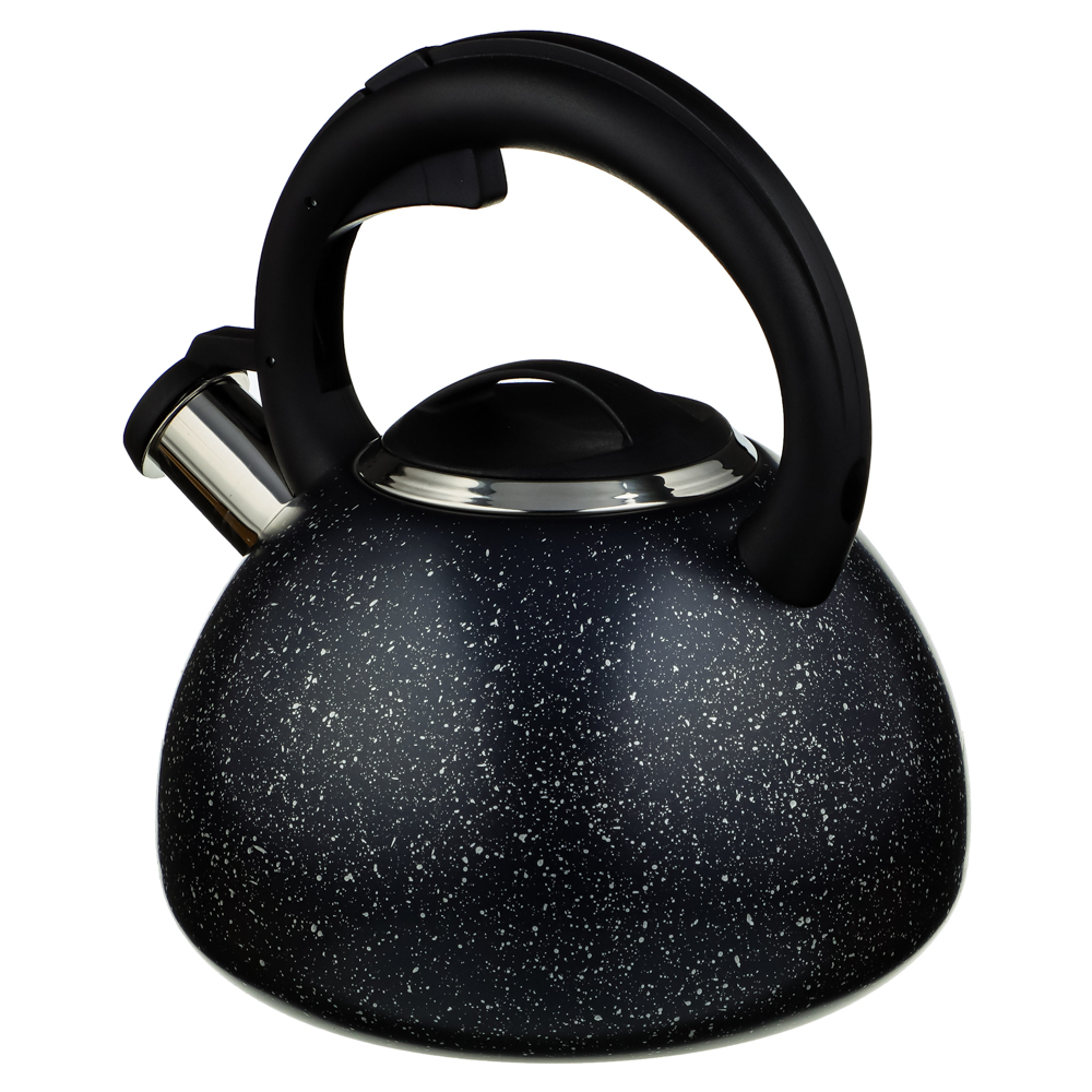 Чайник "Гаро" от VETTA объемом 2,5 л - отличный помощник на вашей кухне! Это качественный и стильный чайник, который отлично подойдет для приготовления горячих напитков в домашних условиях. Чайник выполнен из нержавеющей стали, которая обеспечивает его долговечность и надежность использования. Дизайн чайника очень эффектный, благодаря чему он станет ярким элементом интерьера кухни. Важно отметить, что чайник VETTA оснащен индукционным дном, что позволяет быстро и равномерно нагревать воду, а также экономить время и энергию. Это делает его идеальным выбором для тех, кто ценит комфорт и практичность в использовании кухонной утвари.Преимущества:• материал - нержавеющая сталь;• есть кнопка для открывания свистка на ручке для безопасного использования;• эргономичная ручка с силиконовым напылением, не скользит;• подходит для всех типов плит, включая индукционные.