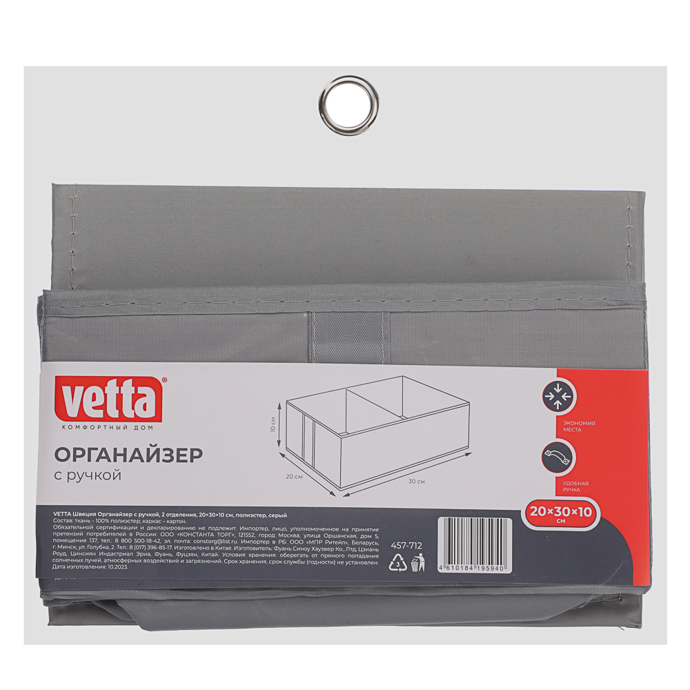 VETTA Органайзер, 2 отделения, 20х30х10 см, Швеция, полиэстер серый