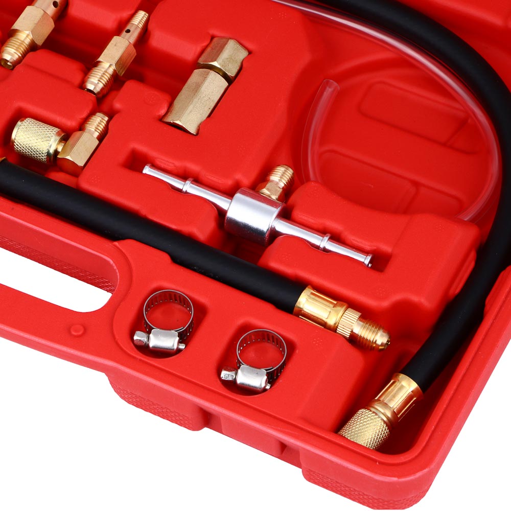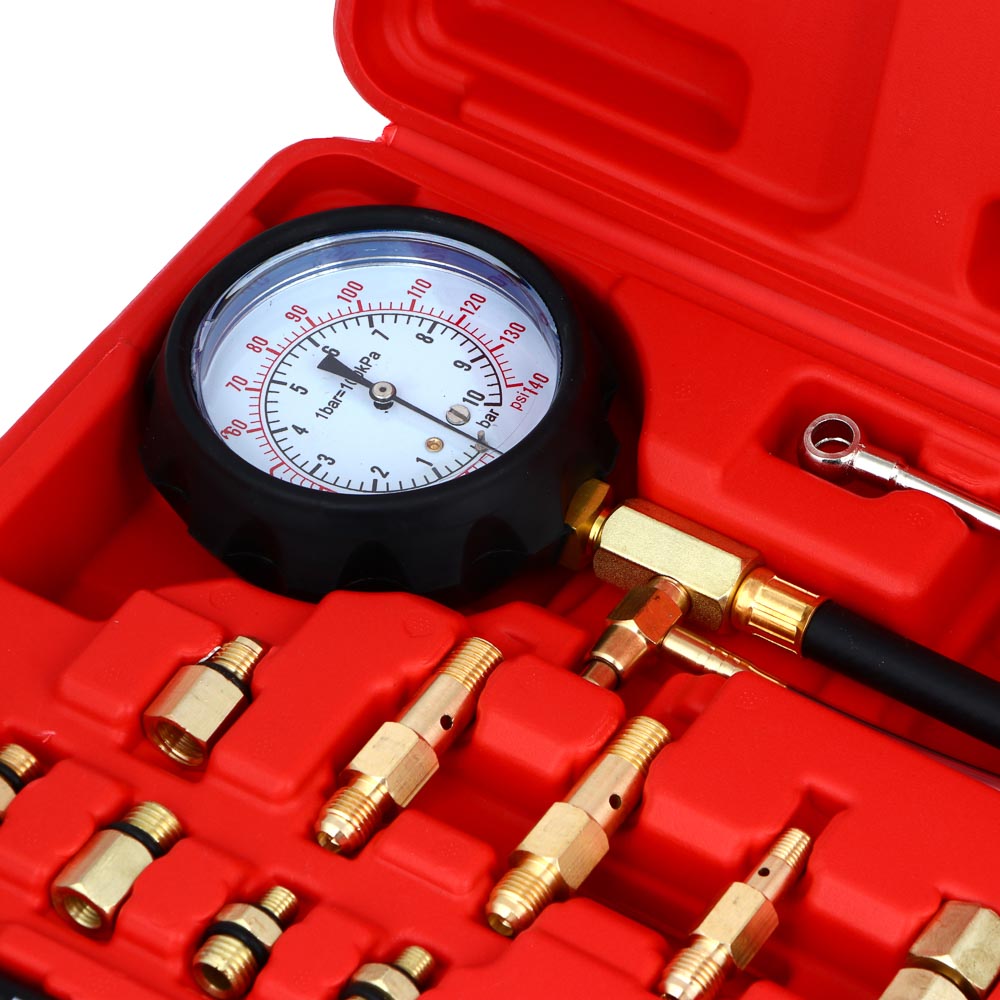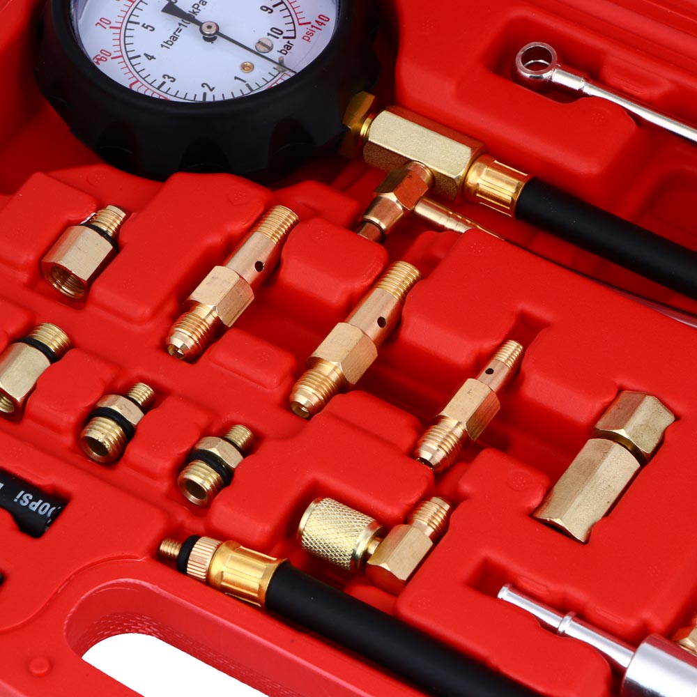 Набор для измерения давления топлива в системе двигателя Ермак позволяет производить своевременную и точную диагностику давления топлива в системе двигателя. Благодаря наличию различных переходников инструмент совместим с большинством марок, в том числе отечественных моделей автомобилей.