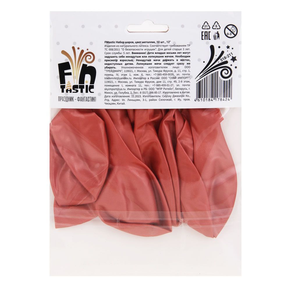 Набор шаров цвета металлик Fntastic включает 10 однотонных шаров размером 12 дюймов. Они имеют благородный цвет и станут украшением любого праздника. Их можно развесить по-отдельности или собрать в единую композицию в виде букета, а также использовать в различных праздничных конкурсах. 6 цветов в наборе, в том числе: оранжевый, золото, розовый, винный.
