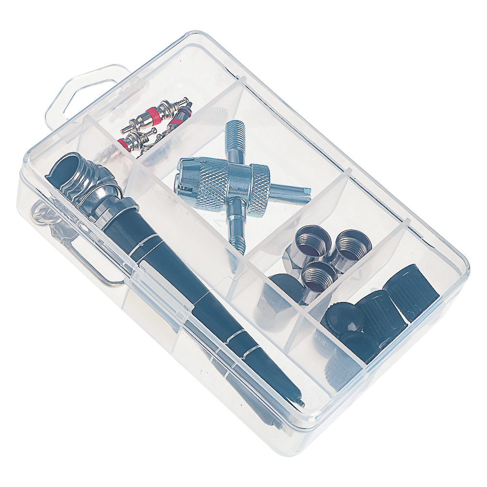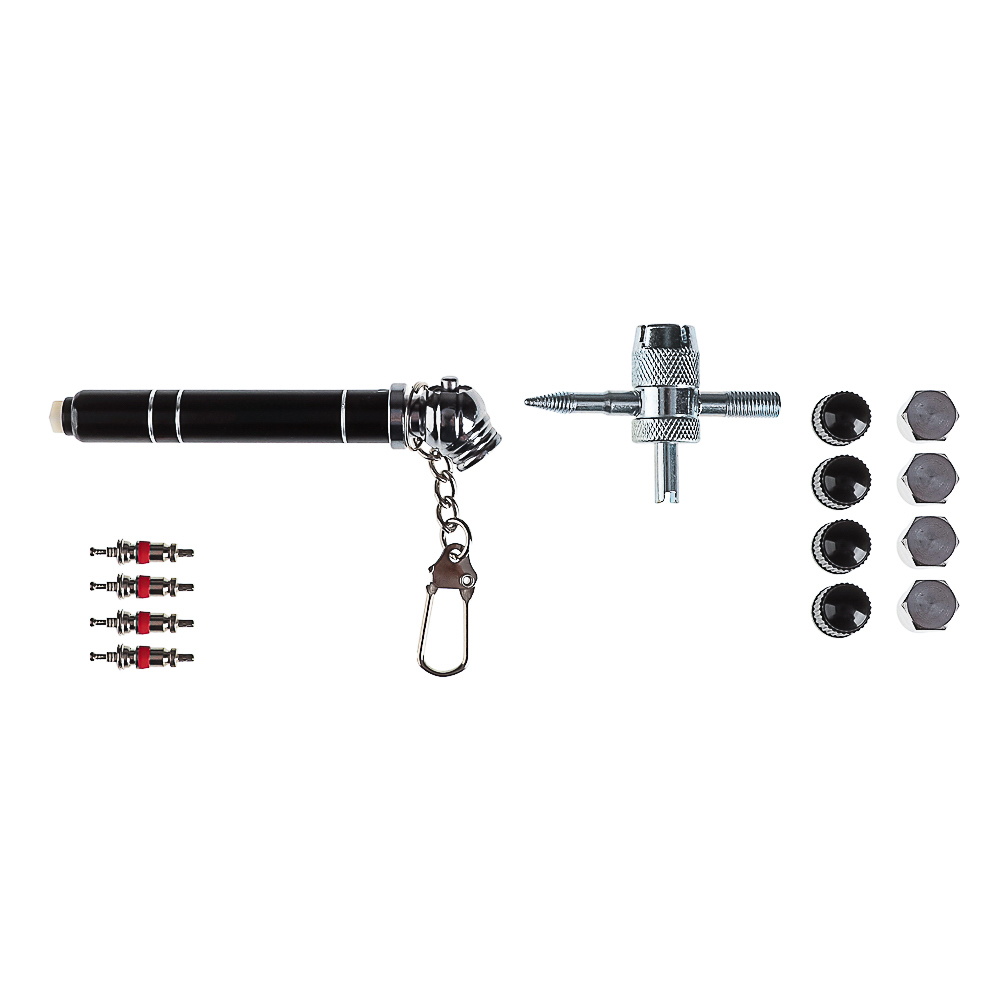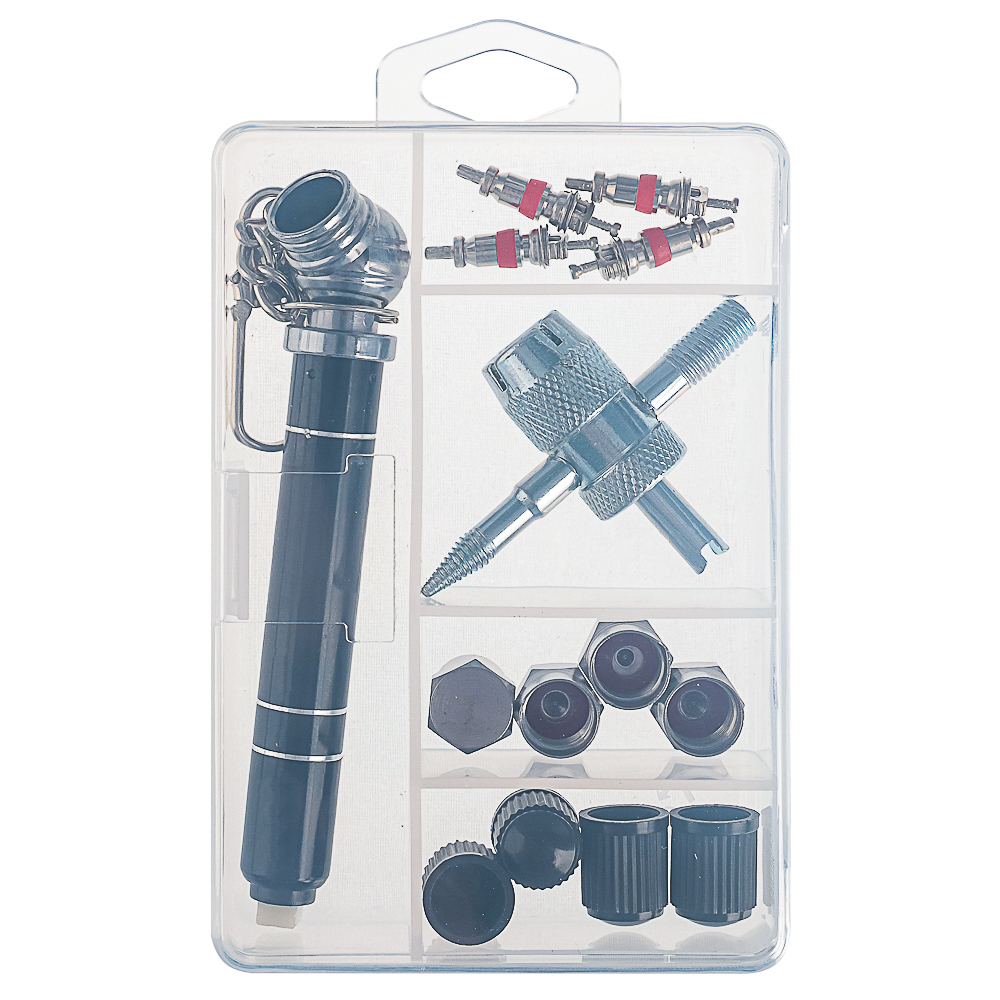 Набор для замены ниппелей, 14 предметов - это компактный и удобный комплект инструментов, предназначенный для быстрого и самостоятельного ремонта проколотых шин. В состав набора входят следующие предметы:Вулканизатор - устройство, которое обеспечивает плотное прижатие заплатки к поврежденному месту шины, а также нагревает ее для лучшей адгезии.Заплатки разных размеров – предназначены для устранения проколов и порезов на шинах.Нож для зачистки шины – используется для удаления верхнего слоя резины вокруг места повреждения.Инструмент для вставки жгута – позволяет быстро и точно вставить герметизирующий жгут в отверстие прокола.Шланг и манометр – используются для проверки давления в колесе после ремонта.Инструкция по использованию – содержит подробную информацию о процессе ремонта шин с помощью данного набора.