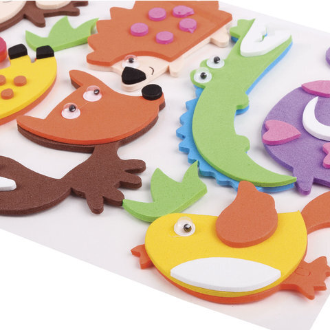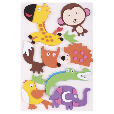 С помощью наклеек из фоамирана ОСТРОВ СОКРОВИЩ можно декорировать поделки, детали интерьера, одежду и гаджеты, реализовать самые смелые творческие идеи! Изготовлены из фоамирана (EVA). В комплекте 8 красочных декоративных элементов в форме животных. Предназначены для детей от 3 лет. Поставляются в пакете с европодвесом с вкладышем размером 10х16 см. Качественный клеевой слой обеспечит надежную фиксацию на любых поверхностях. Способ применения: эти замечательные наклейки очень просты в использовании – необходимо отделить их от основы и разместить там, где требует этого фантазия. Никакого клея не требуется!