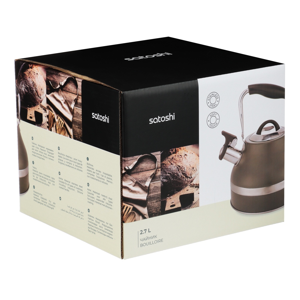 Стальной чайник SATOSHI Астурия 2,7 л имеет привлекательный современный дизайн в зеленом цвете и качественное исполнение. Чайник оснащен свистком, который оповестит вас о закипании воды. Это удобно, так как вам не придется следить за чайником и вы точно не пропустите момент, когда вода закипит. Чайник SATOSHI Астурия подходит для всех видов плит, включая индукционные, что позволяет использовать его на любой кухне. Объем чайника позволяет приготовить достаточное количество кипятка для приготовления чая или кофе на всю семью. Материал чайника – нержавеющая сталь, которая обладает рядом преимуществ: материал долговечен, не подвержен коррозии и механическим повреждениям, устойчив к воздействию высоких температур и прост в уходе. Чайник со свистком SATOSHI Астурия – это практичный и стильный чайник, который станет отличным дополнением вашей кухни и будет служить вам долгие годы!